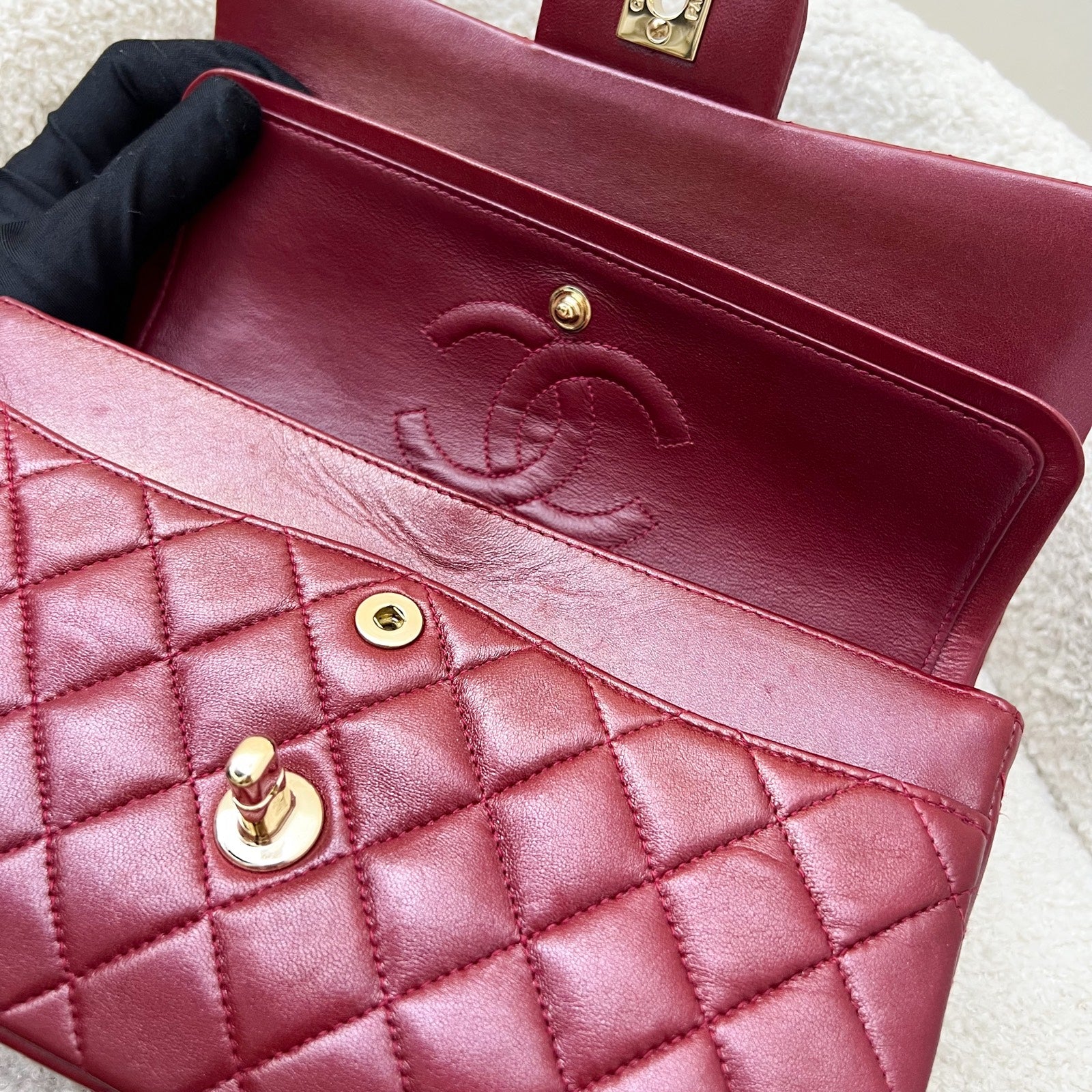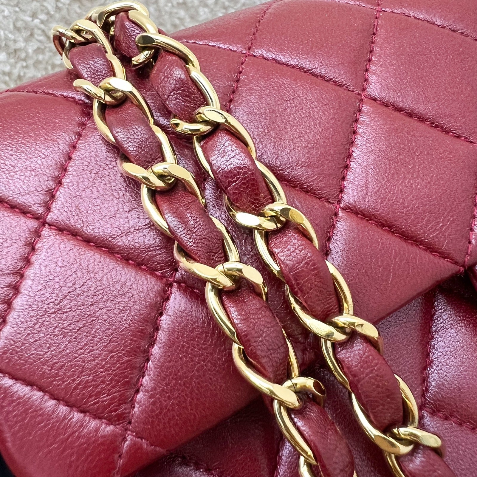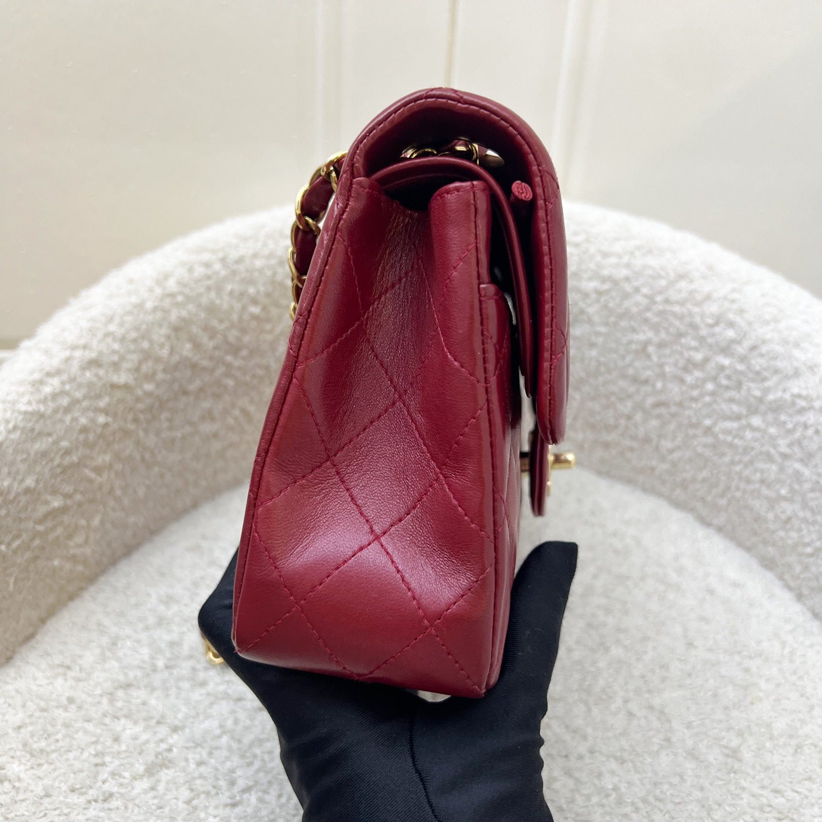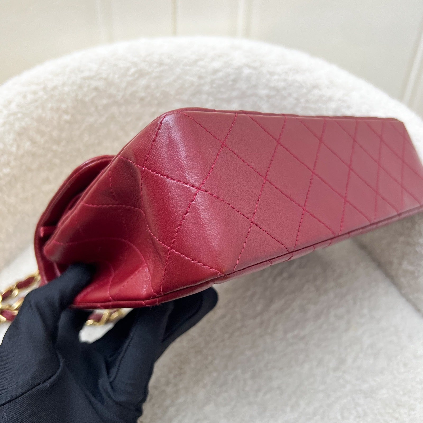 Chanel Vintage Small Classic Flap CF in Red Lambskin and 24K Gold Plated HW