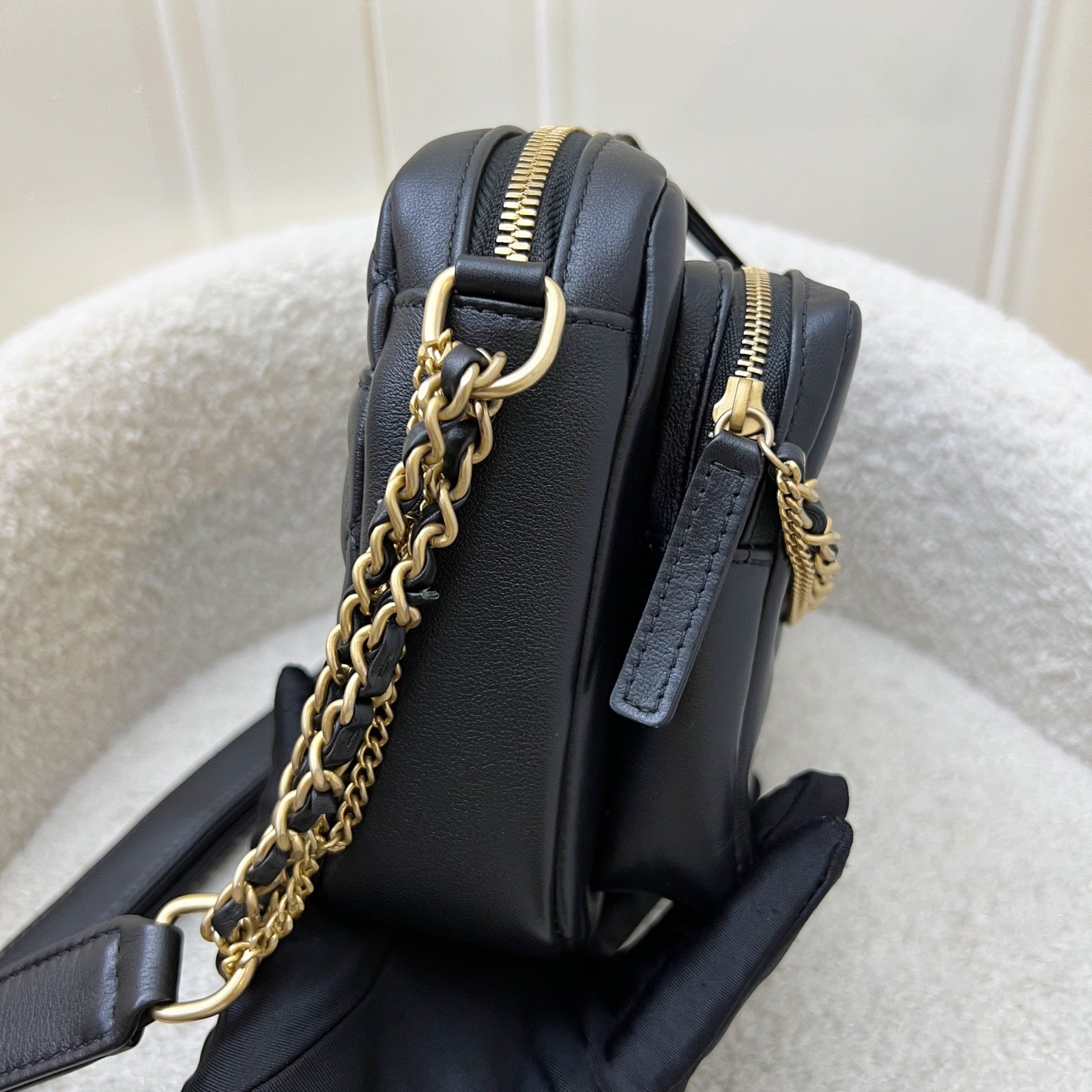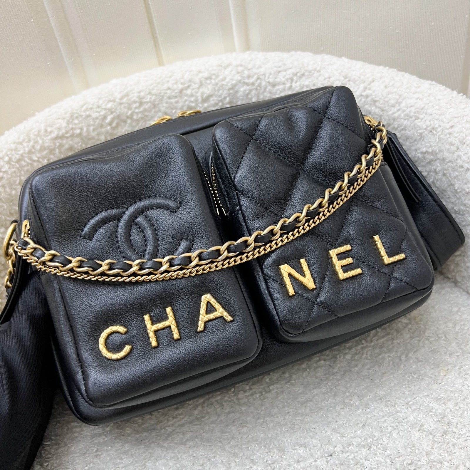 Chanel 22C Seasonal Camera Bag in Black Calfskin and AGHW (Model: AS2923)