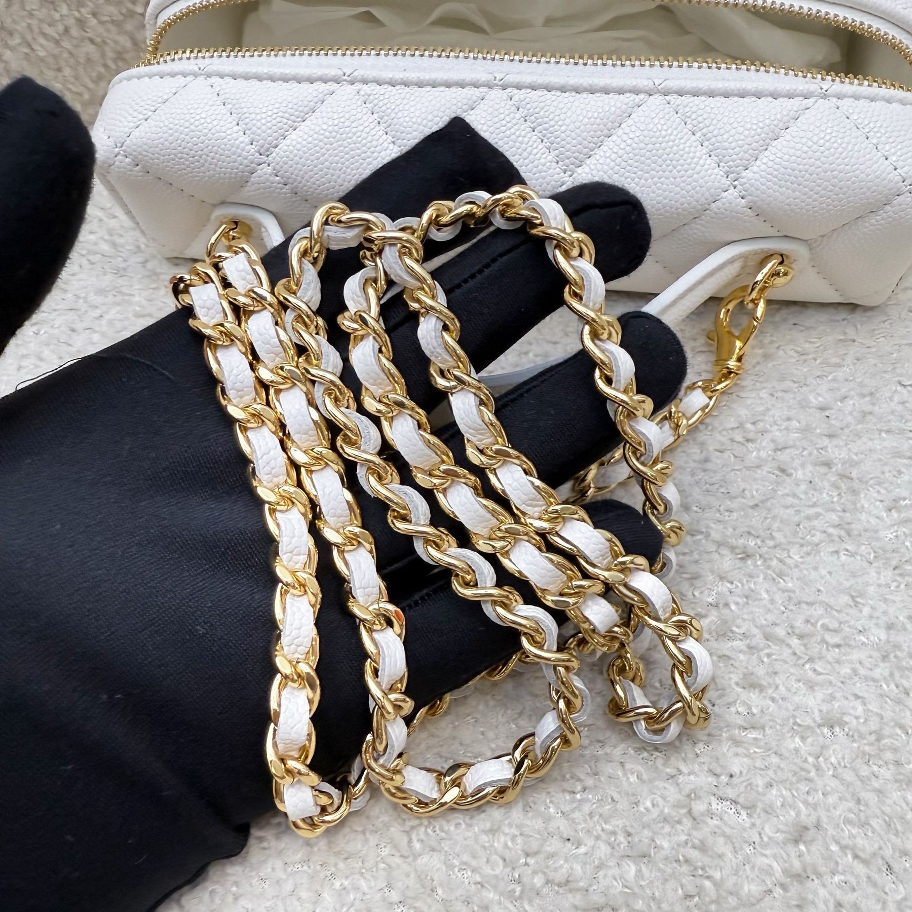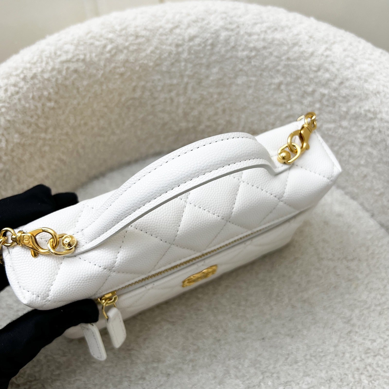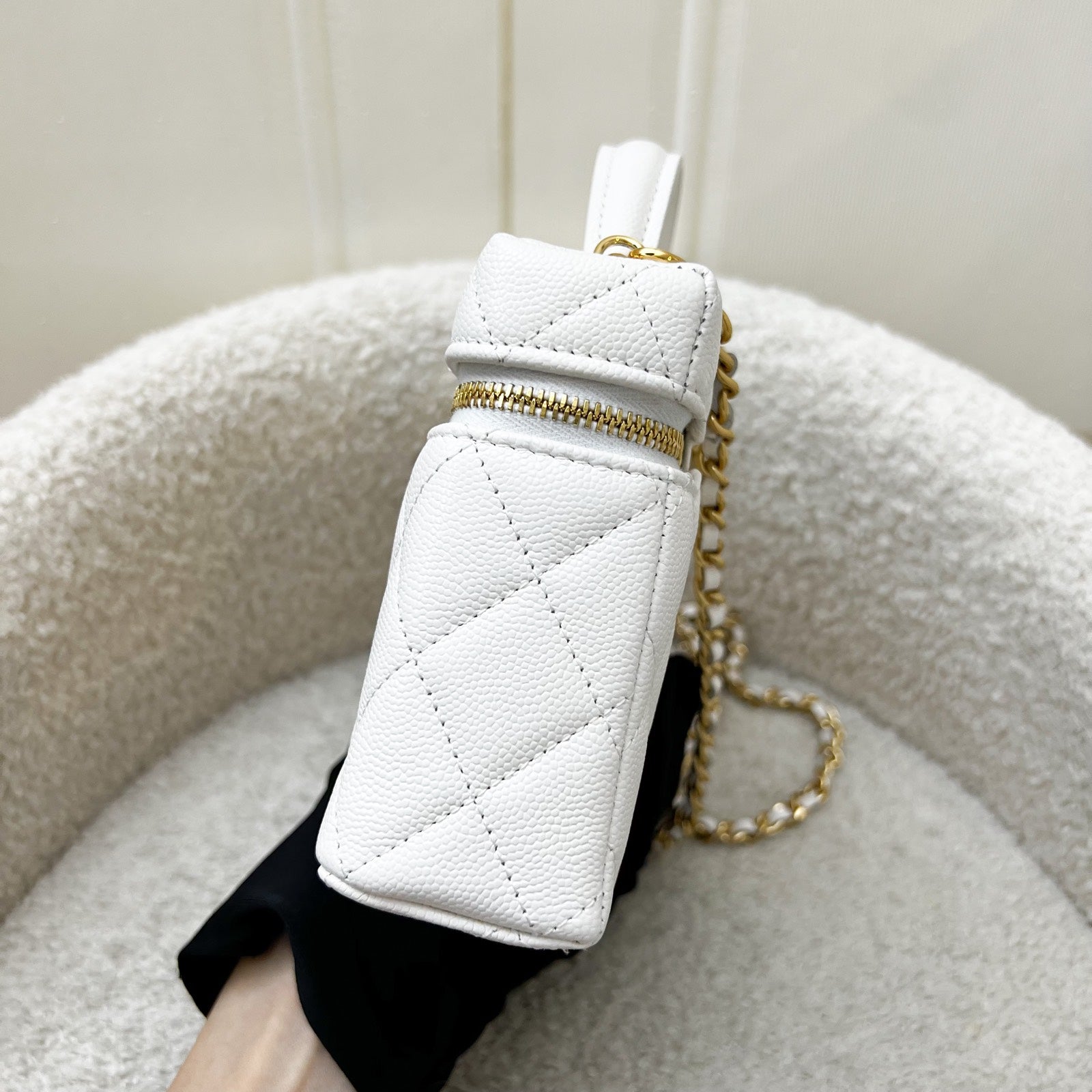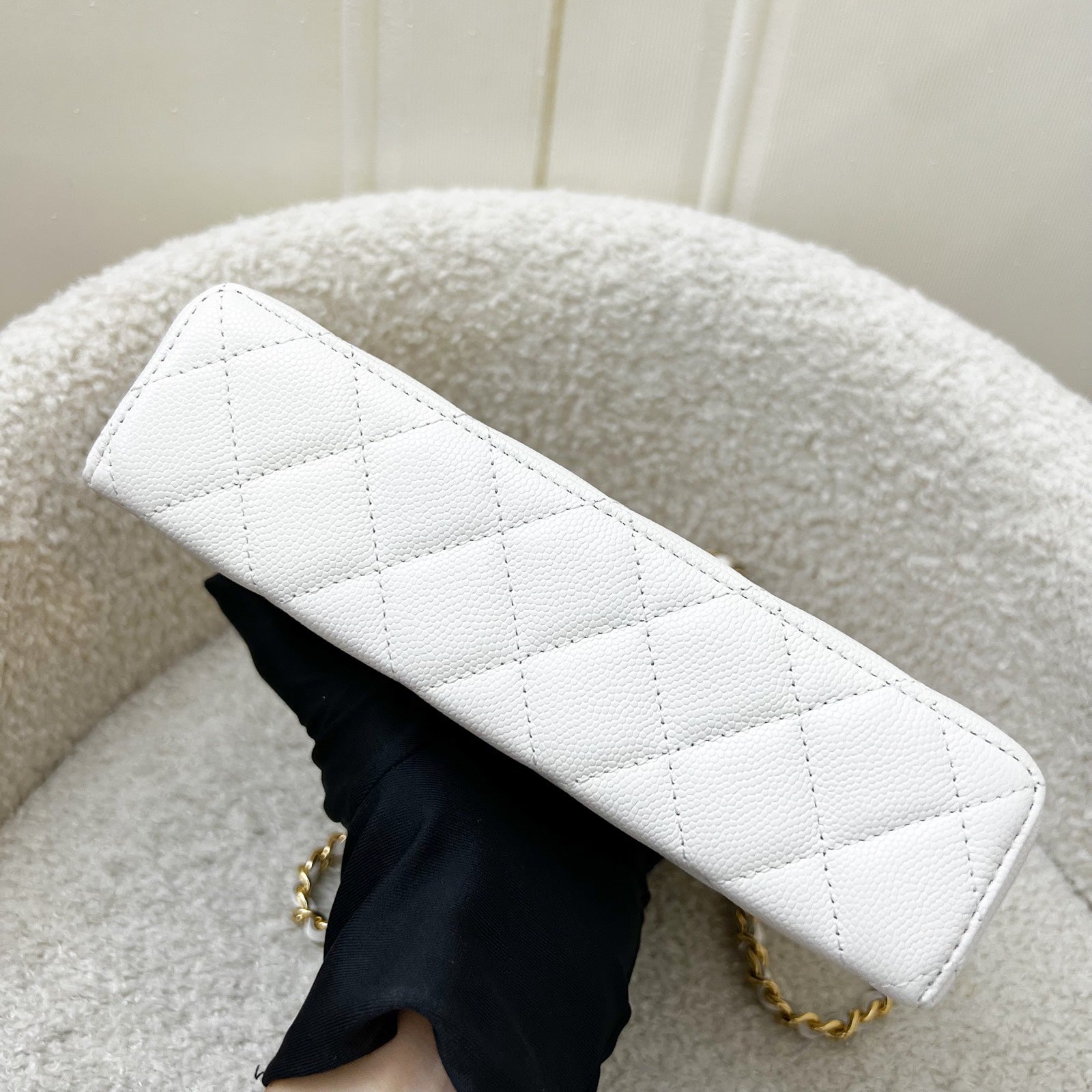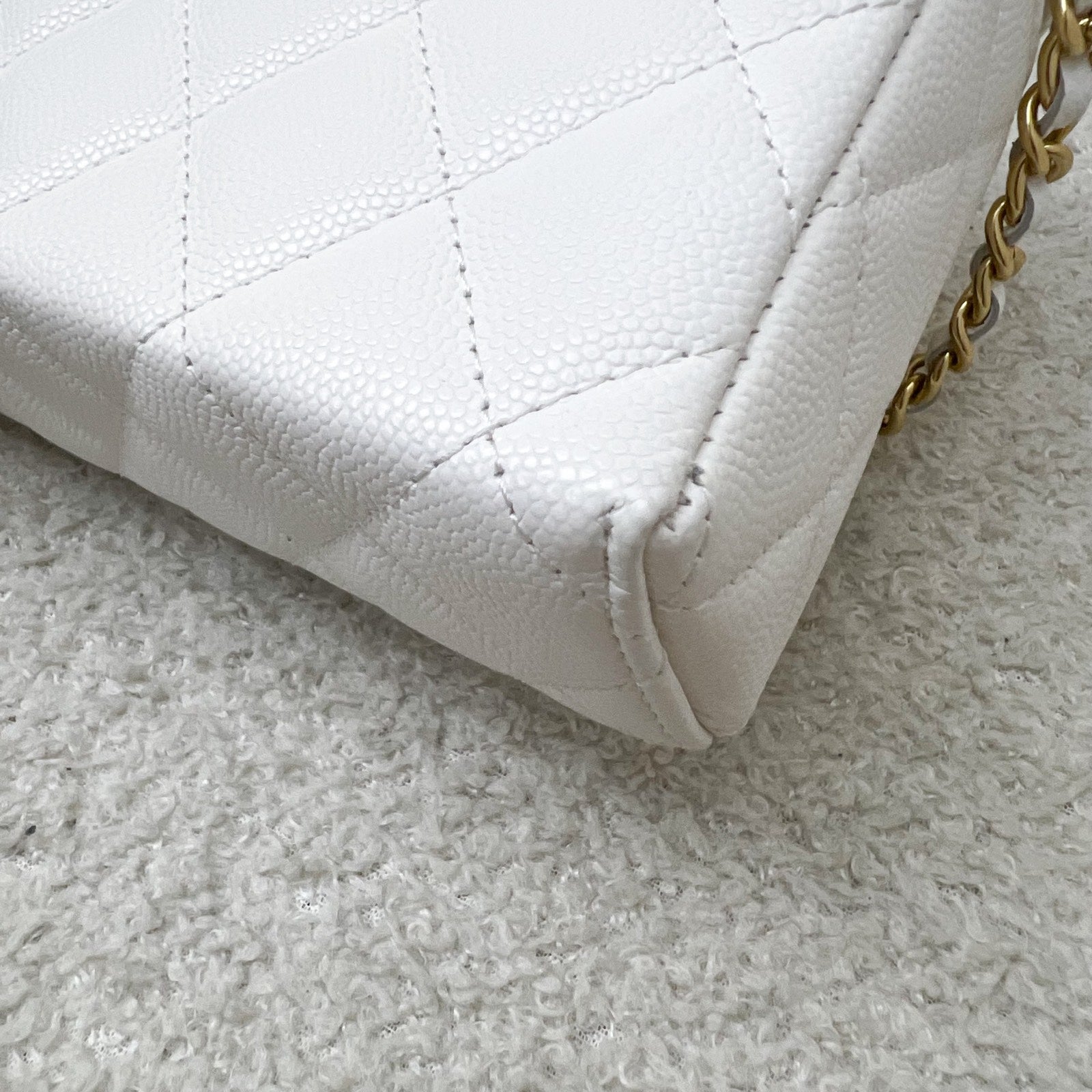 One of the hottest designs of 2025! Very hard to get in boutiques worldwide. Gorgeous bag in popular Loro Piana style. Fits all phones (even Iphone Pro Max). Chain is detachable. This model comes with a gorgeous "embossed" larger CC logo which makes it more unique than the classic version. Grab this before it flies off!