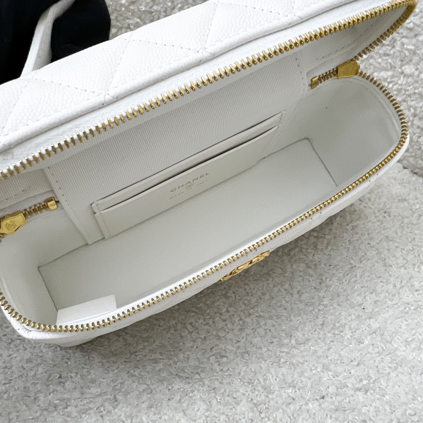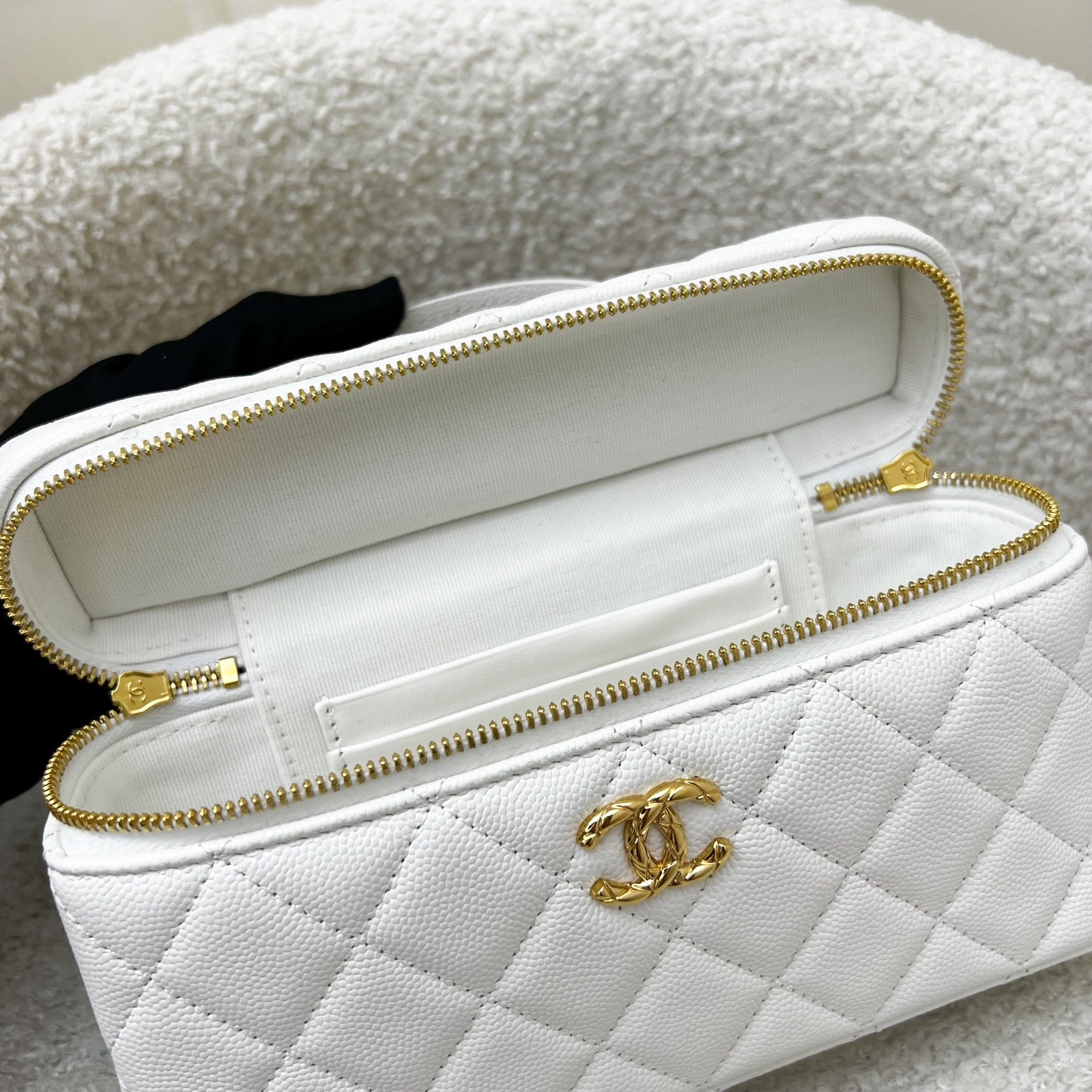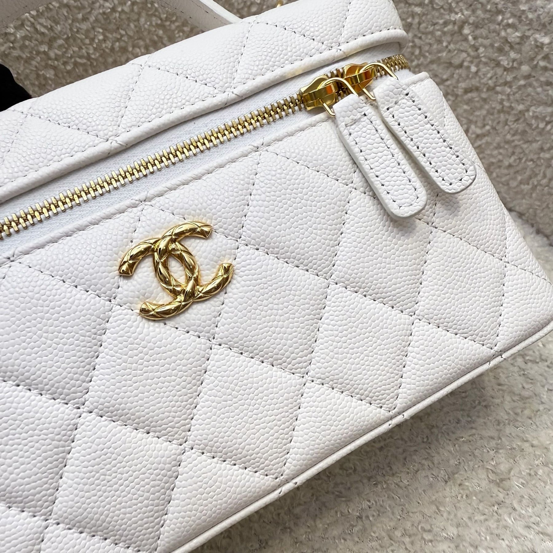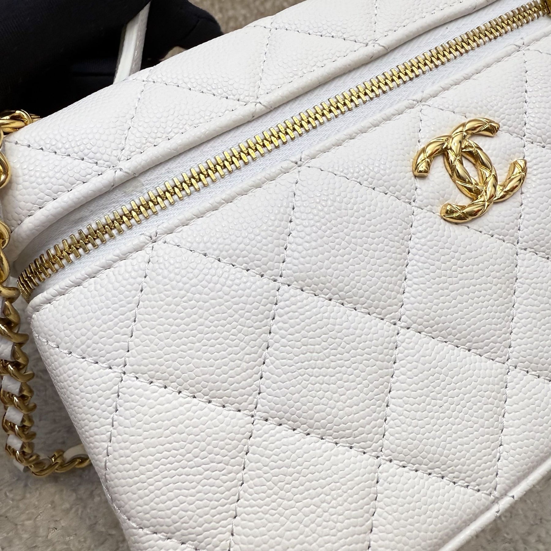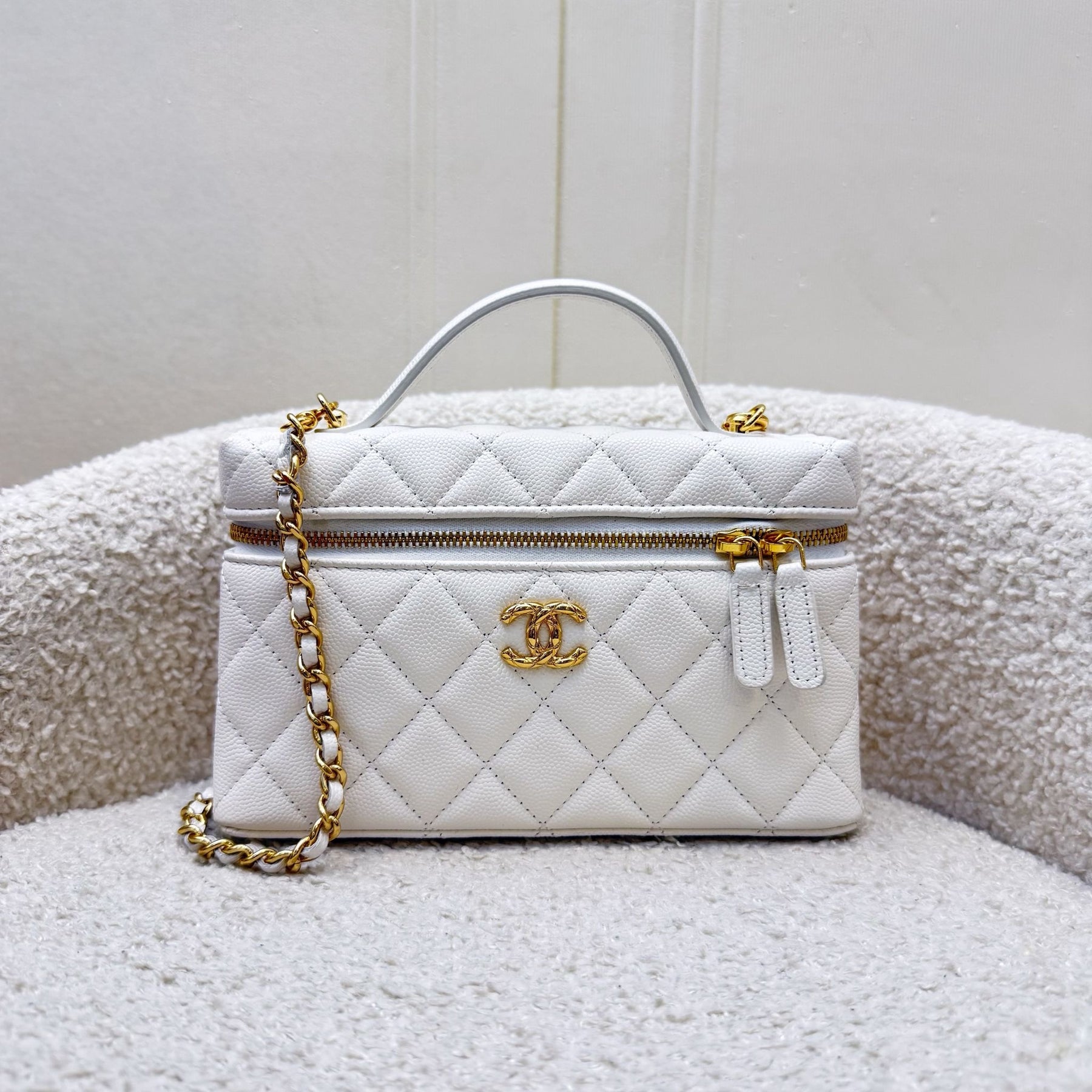 One of the hottest designs of 2025! Very hard to get in boutiques worldwide. Gorgeous bag in popular Loro Piana style. Fits all phones (even Iphone Pro Max). Chain is detachable. This model comes with a gorgeous "embossed" larger CC logo which makes it more unique than the classic version. Grab this before it flies off!
