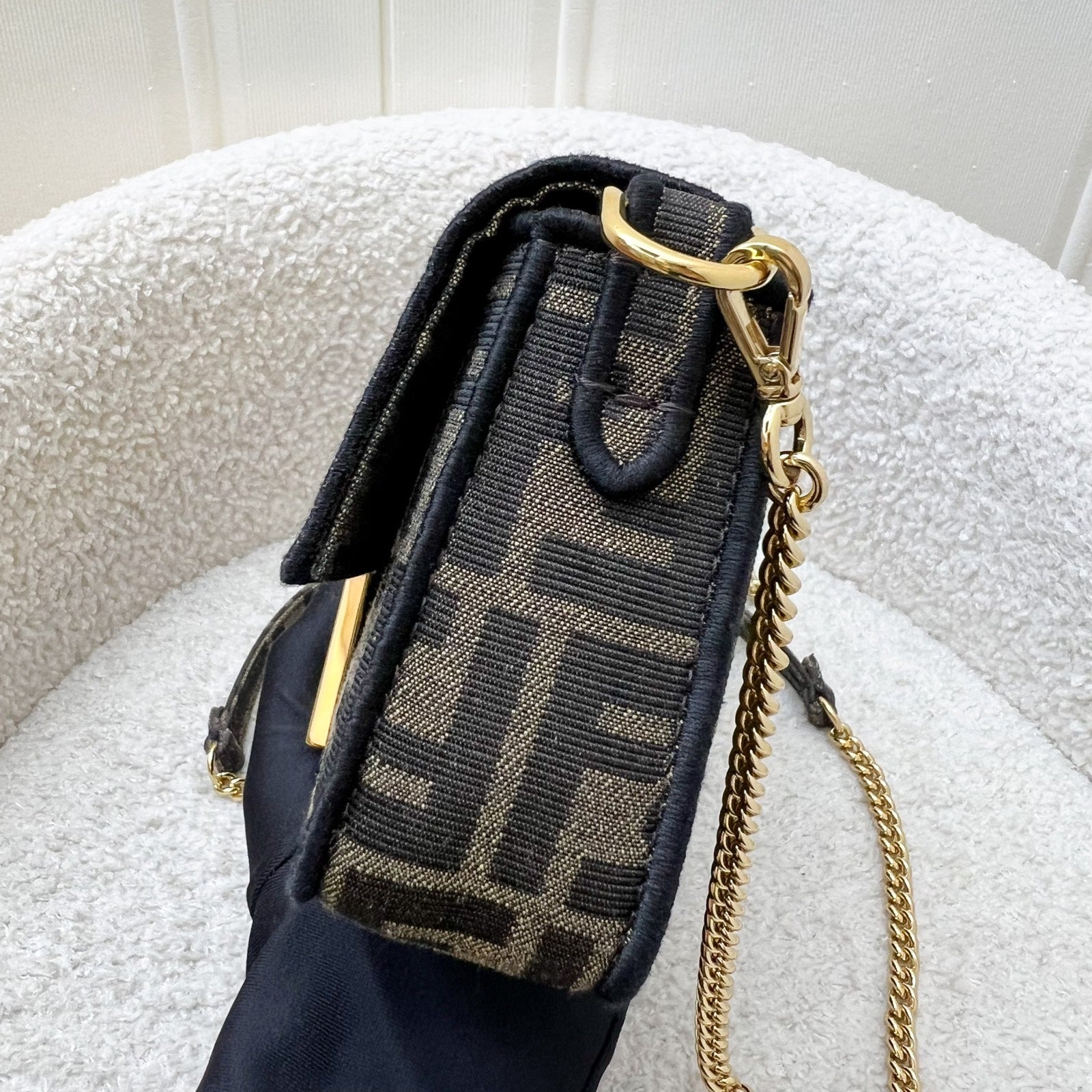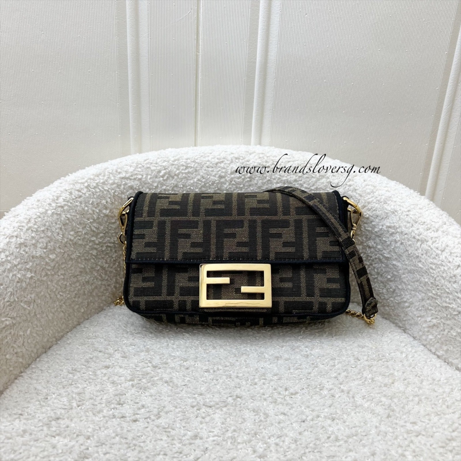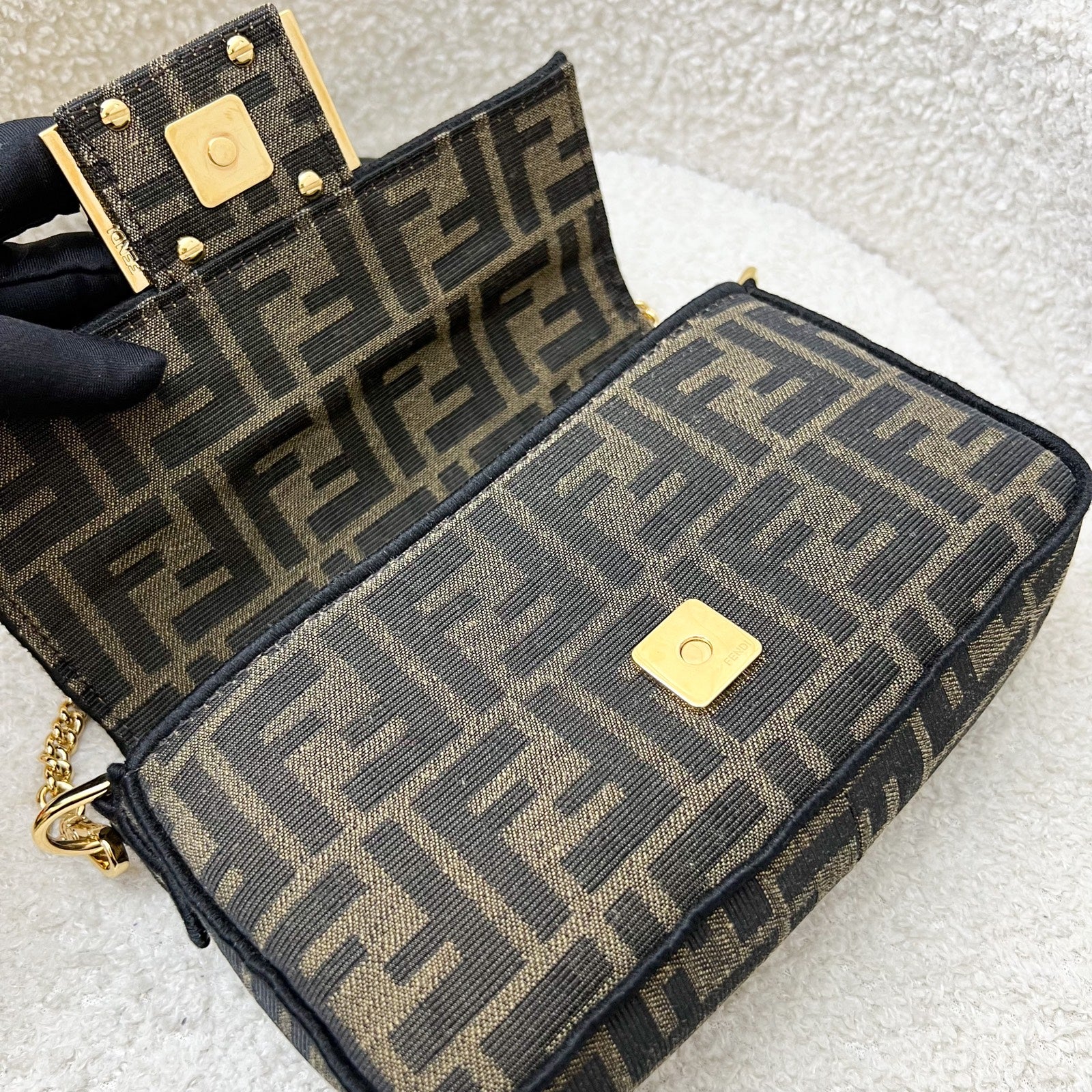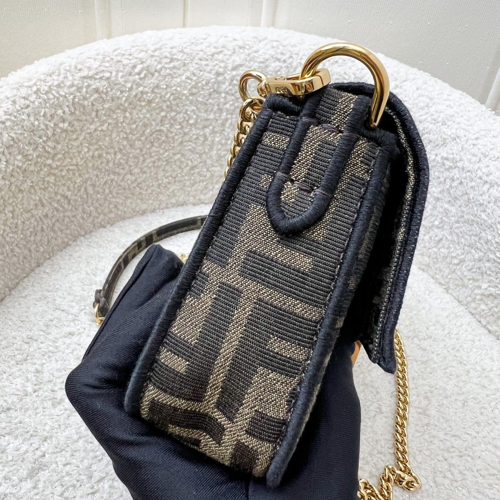 Fendi Mini Baguette Flap Bag in Brown FF Jacquard Fabric and GHW (Model: 8BS017A6V5F17U4)