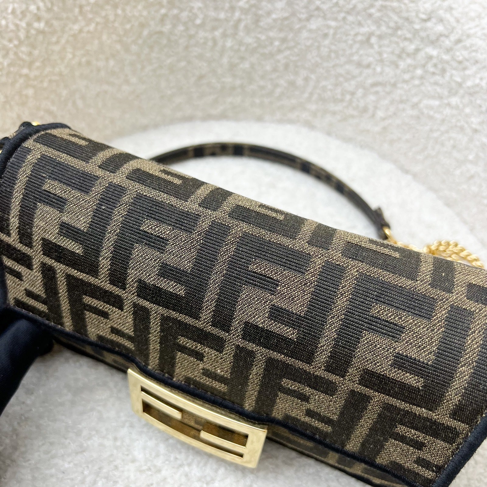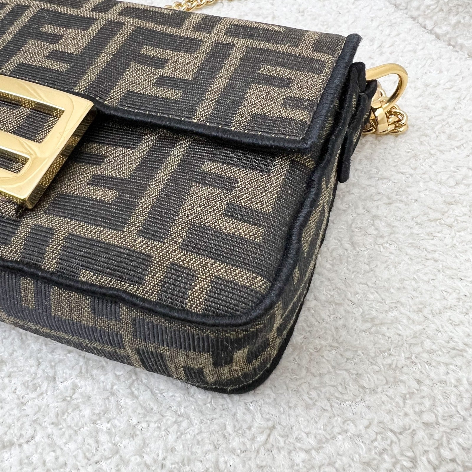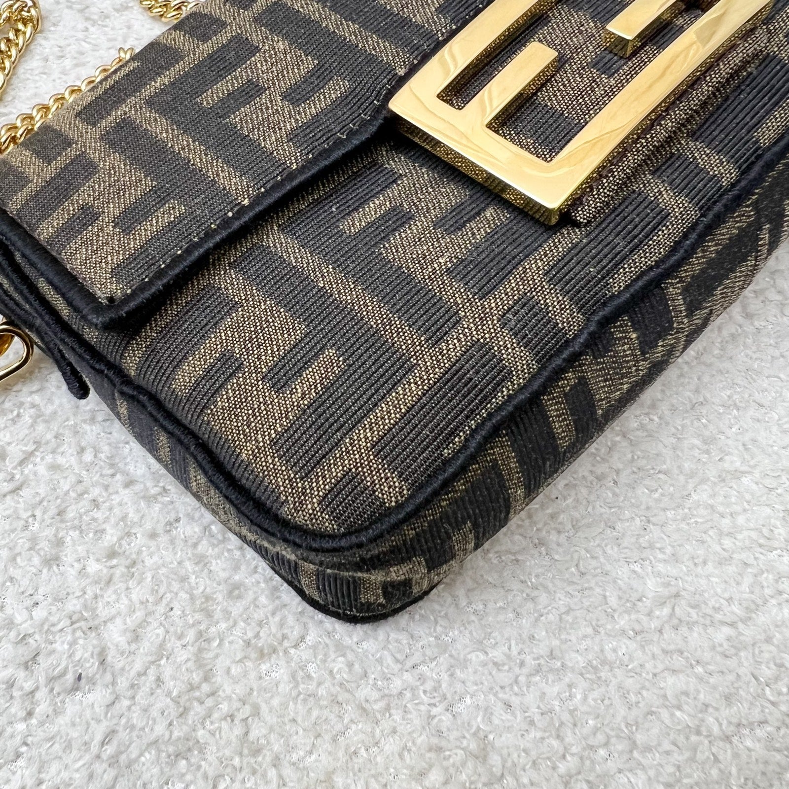 Fendi Mini Baguette Flap Bag in Brown FF Jacquard Fabric and GHW (Model: 8BS017A6V5F17U4)