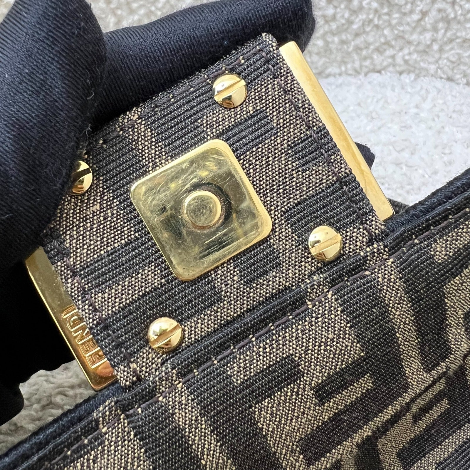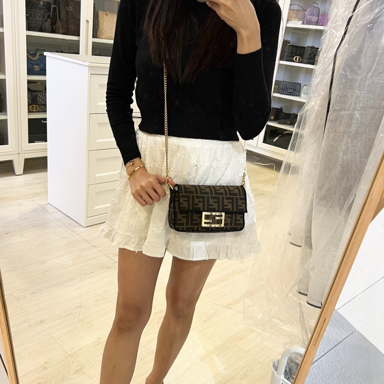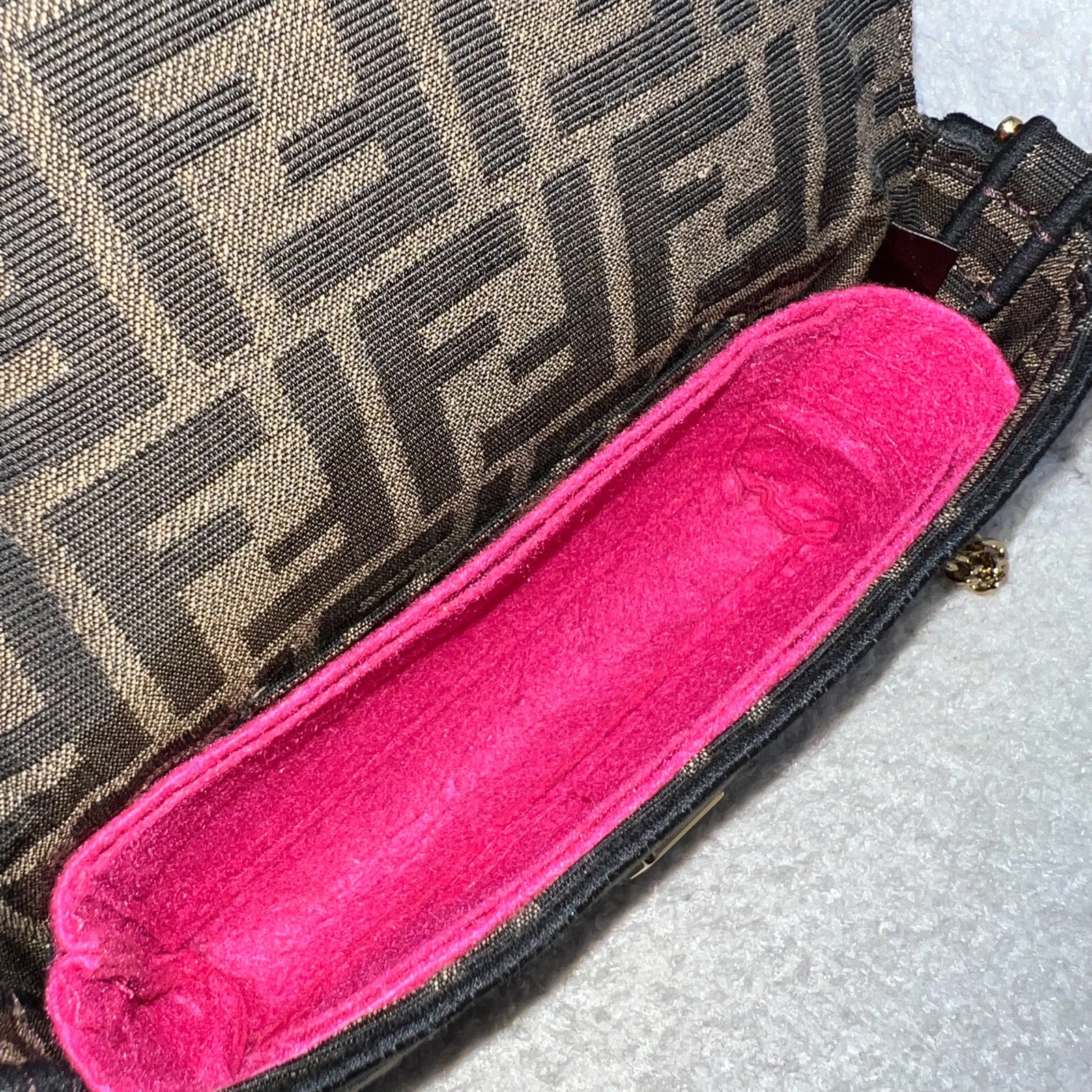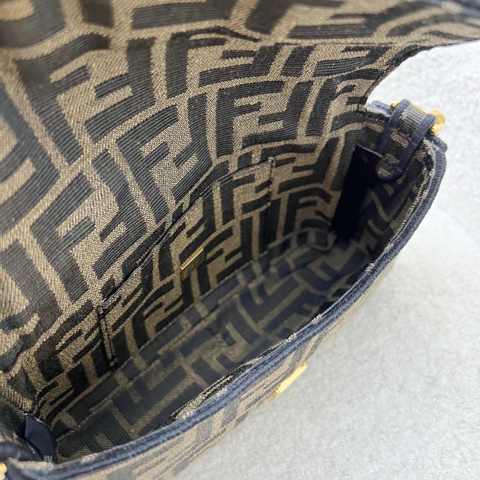 Fendi Mini Baguette Flap Bag in Brown FF Jacquard Fabric and GHW (Model: 8BS017A6V5F17U4)