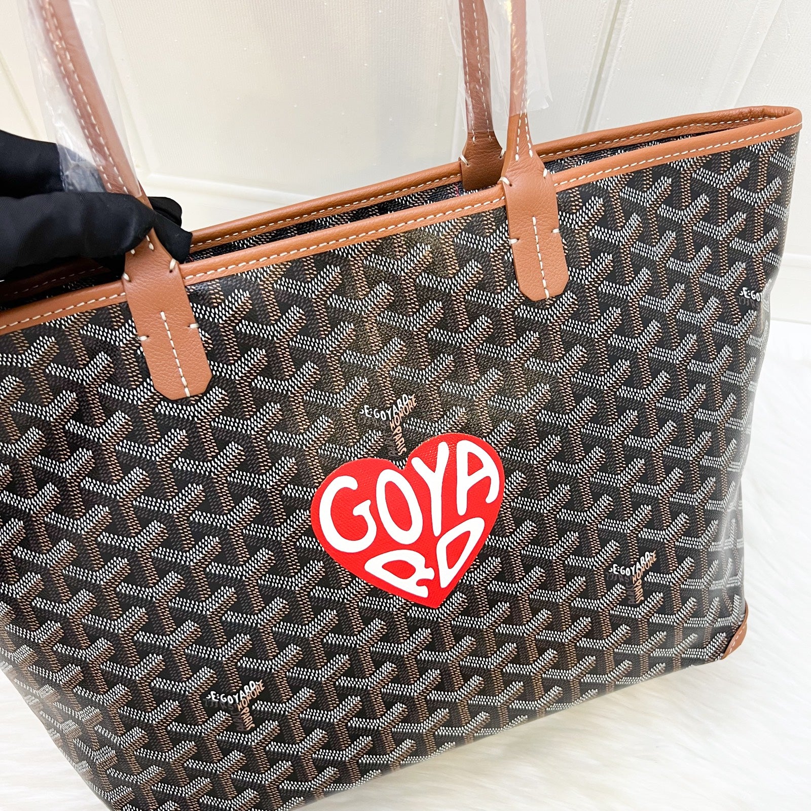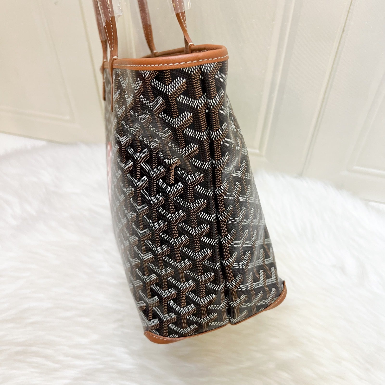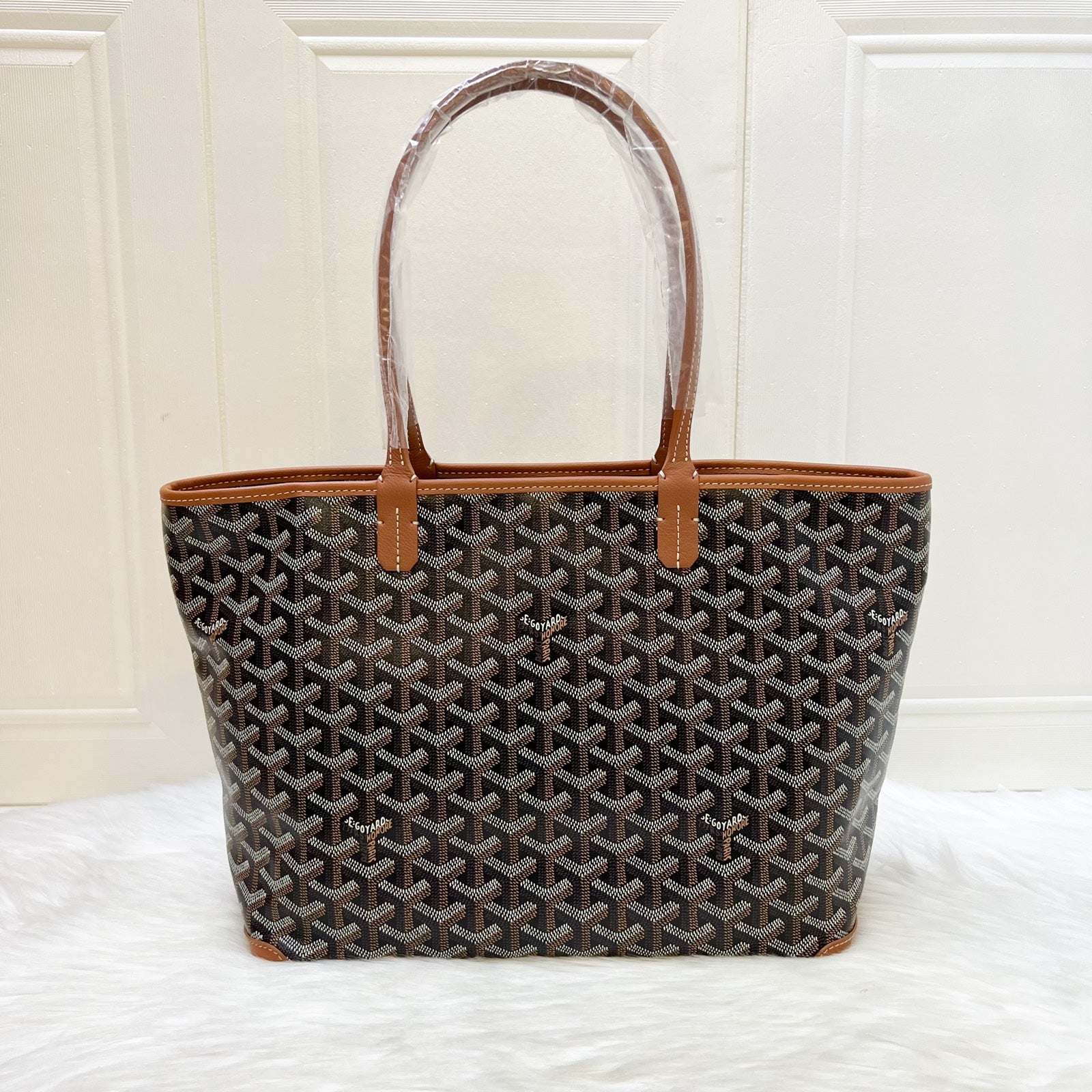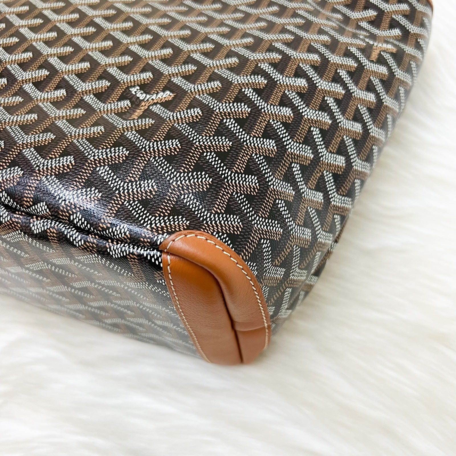 Est. Retail: $4000 and rather rare in boutiques. Handles (worth $480) were newly replaced at Goyard boutique. Super popular tote bag in most popular black and tan! Zipper closure for ladies who prefer their items to be secured!