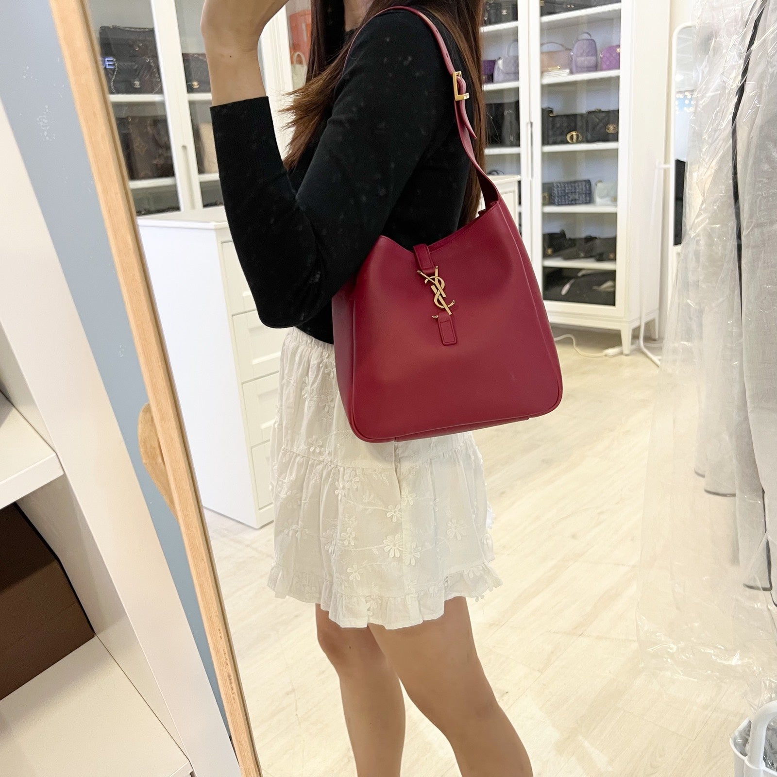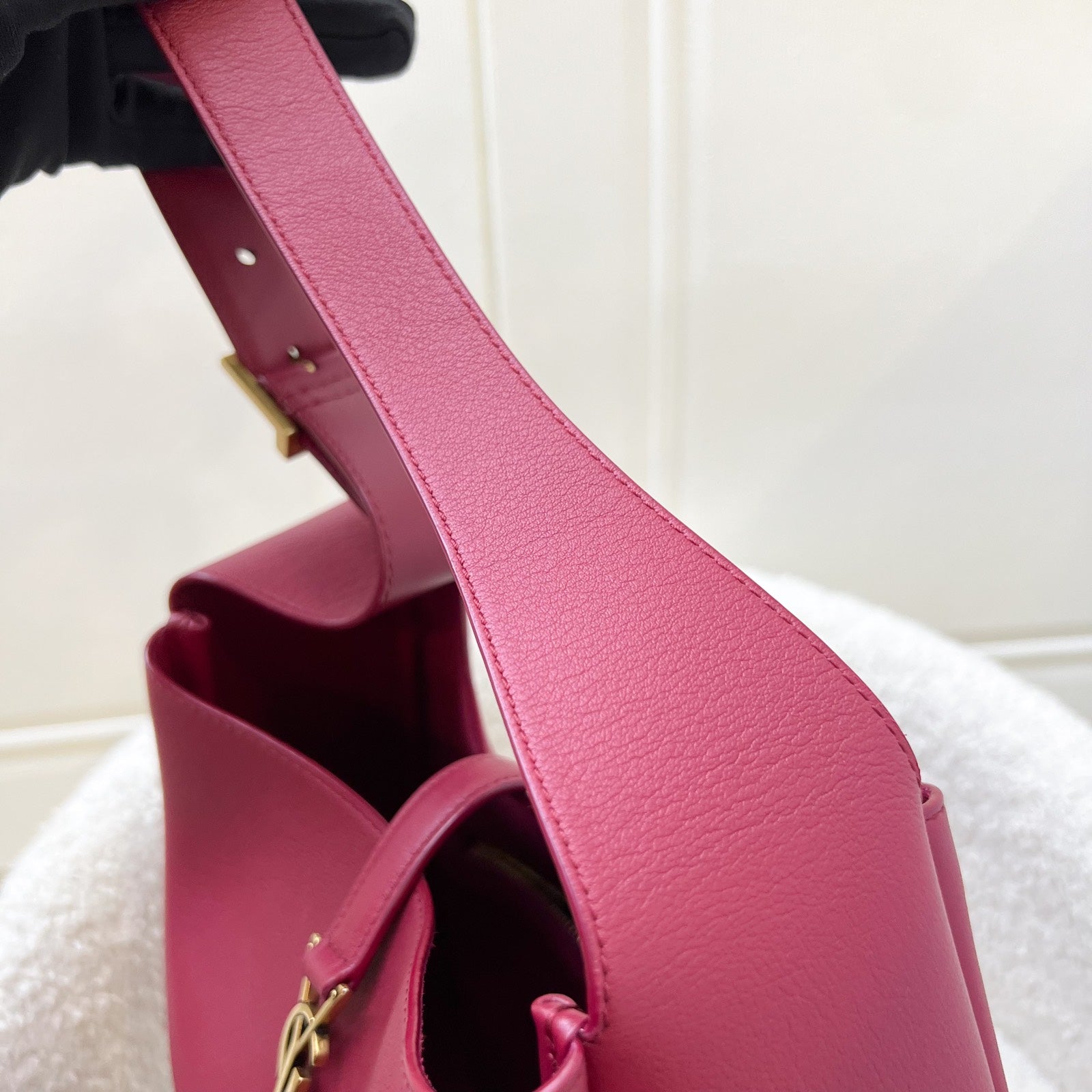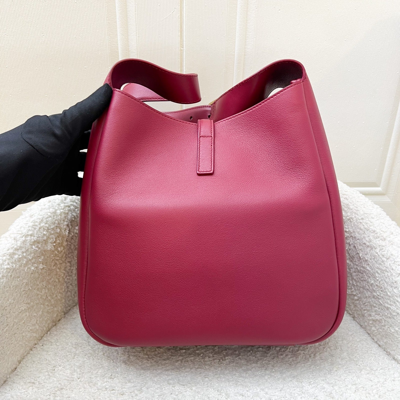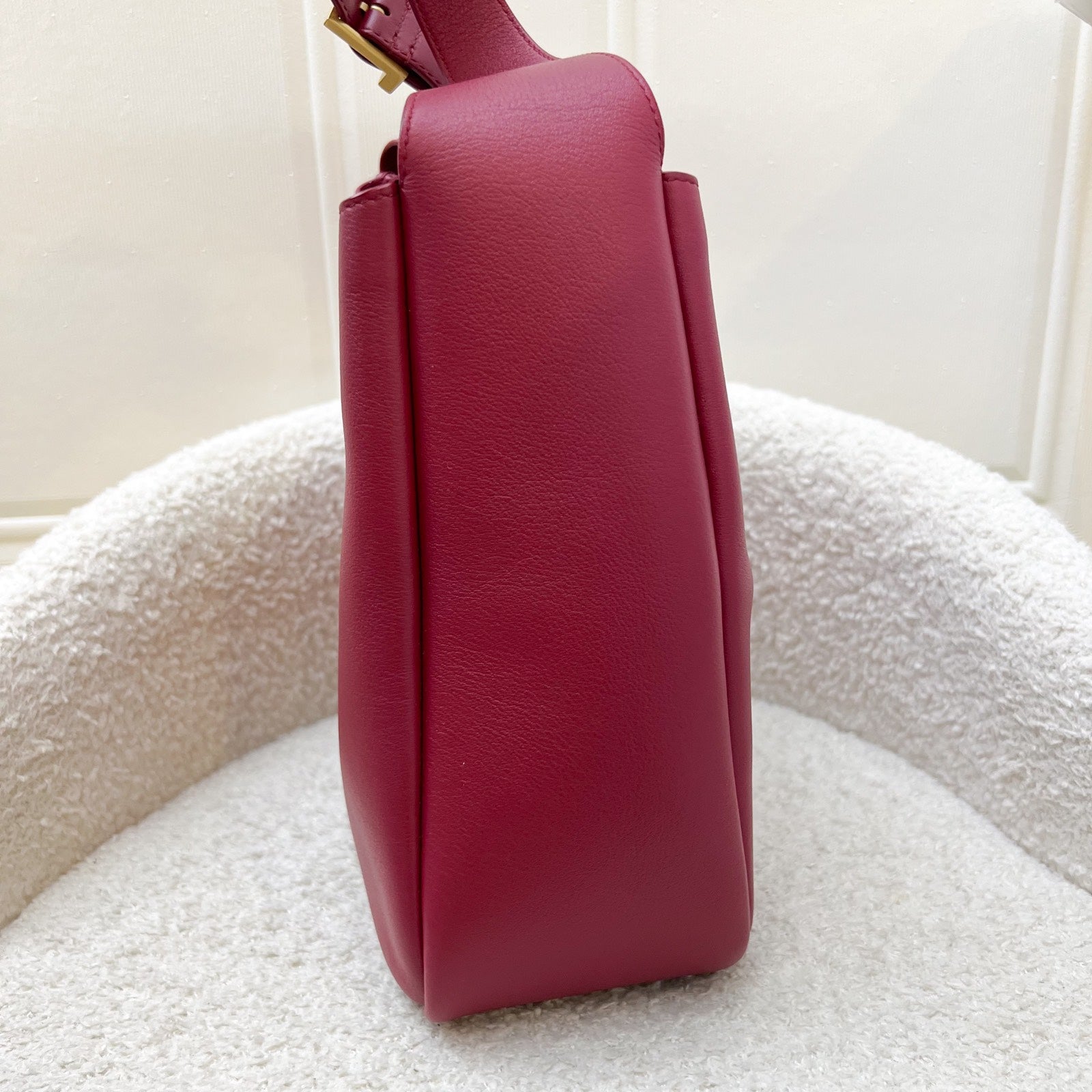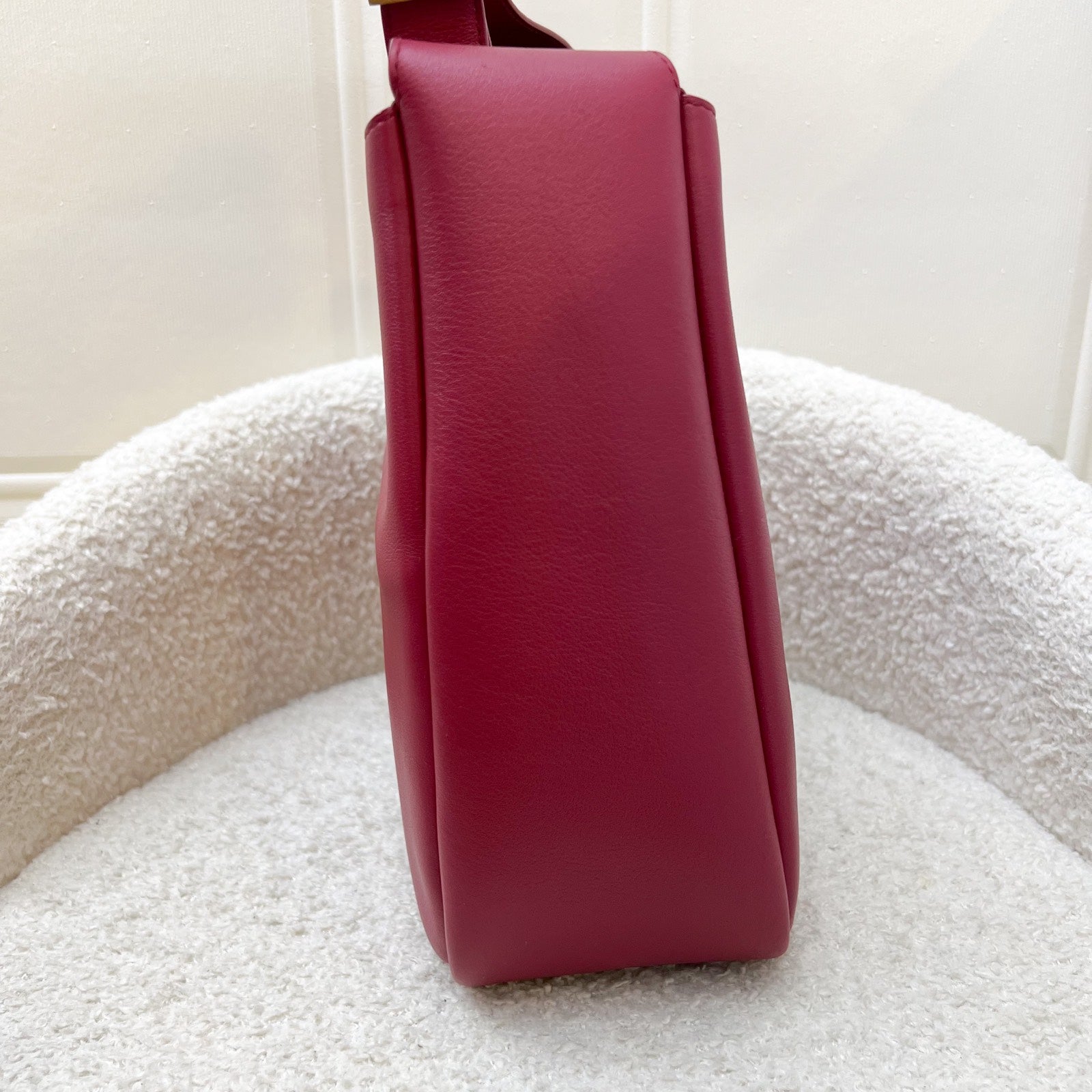 Saint Laurent YSL Small Le 5 À 7 Supple Hobo Bag in Cherry Jam (Raspberry Red) Grained Leather and GHW (Style Code: 713938AAAUQ)