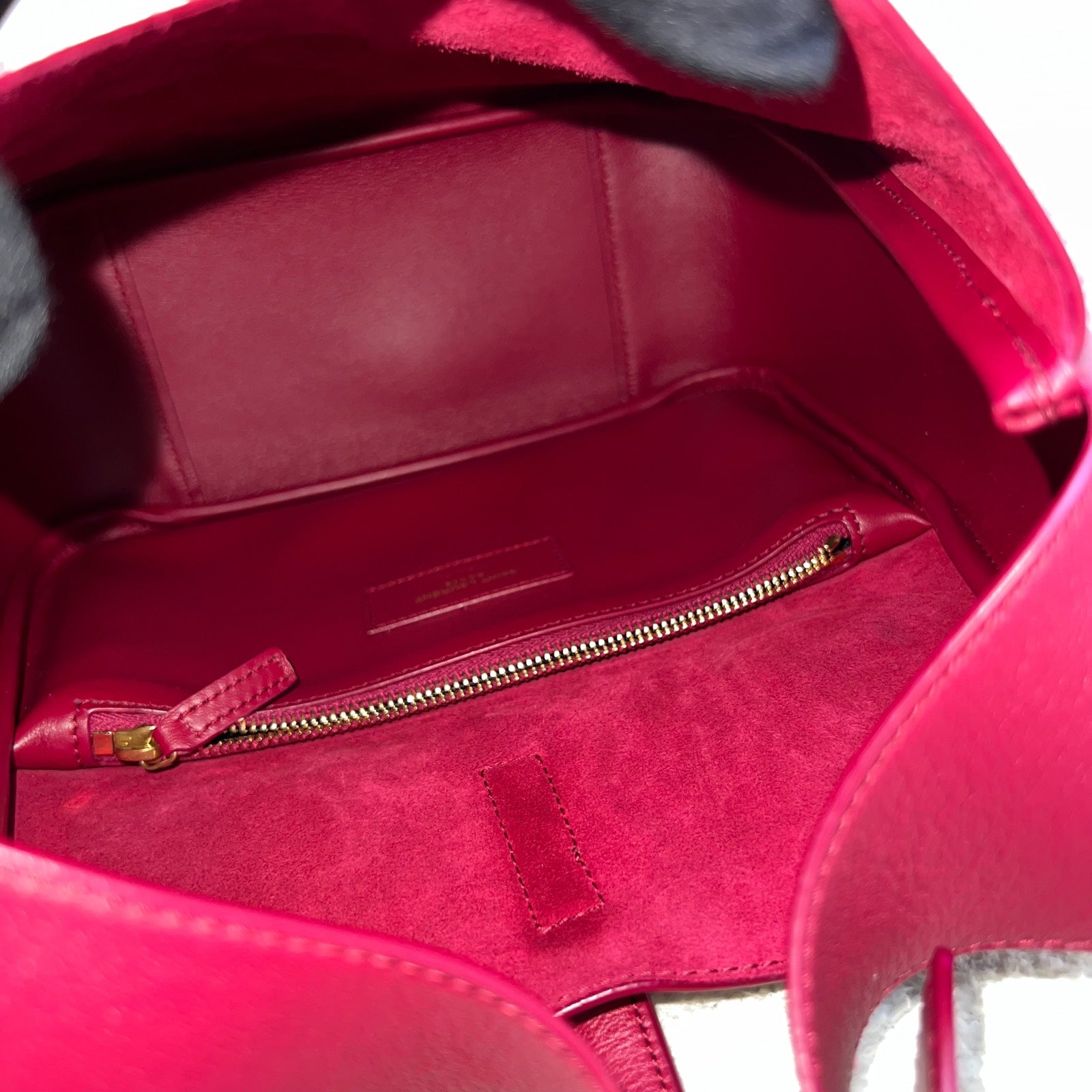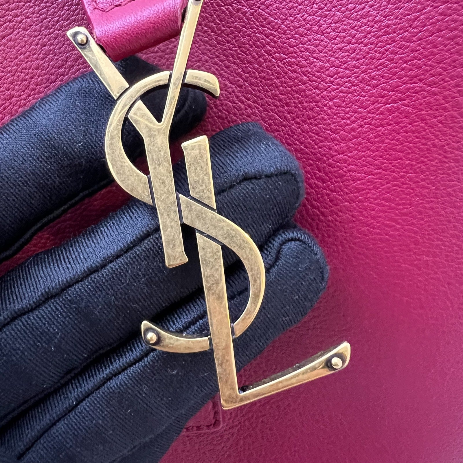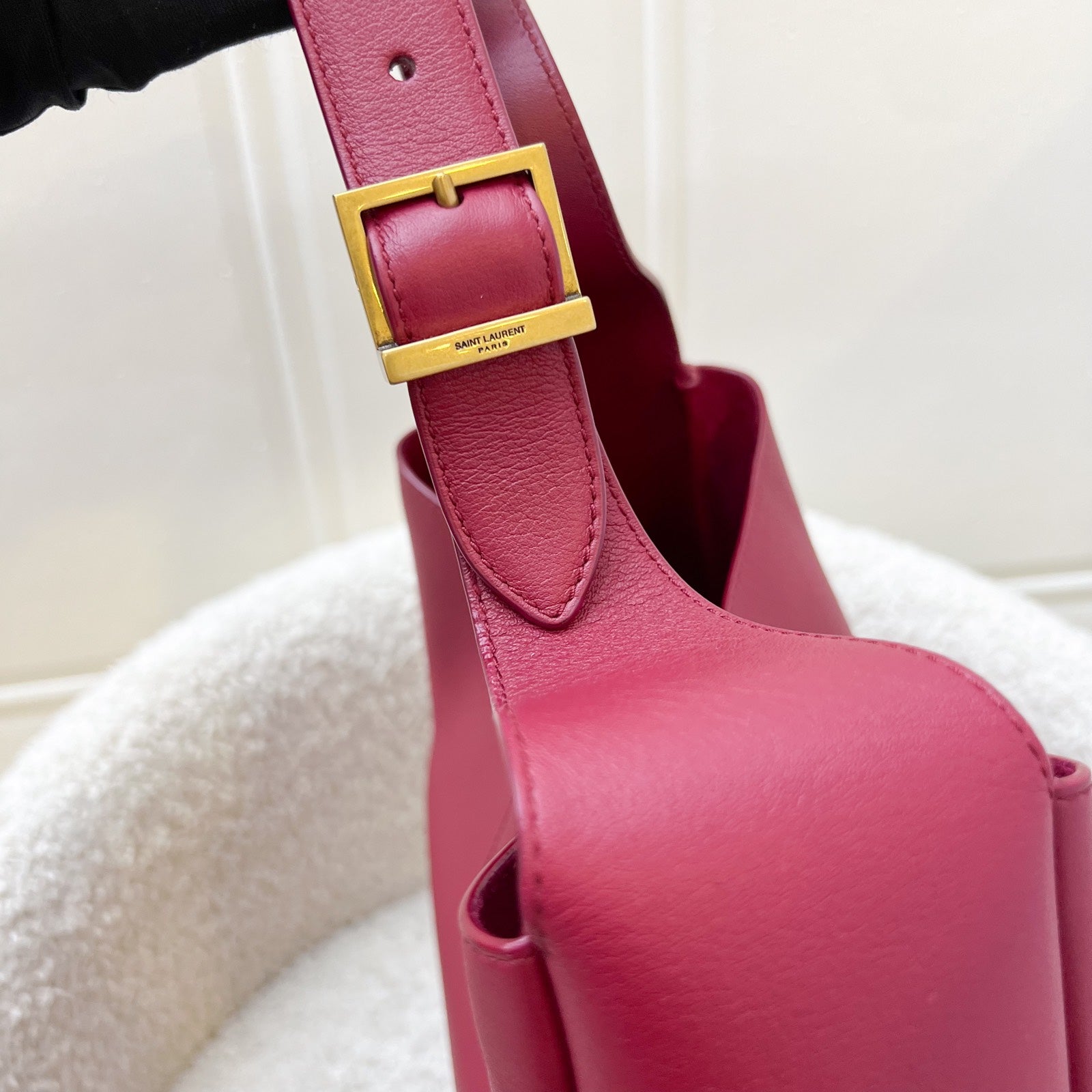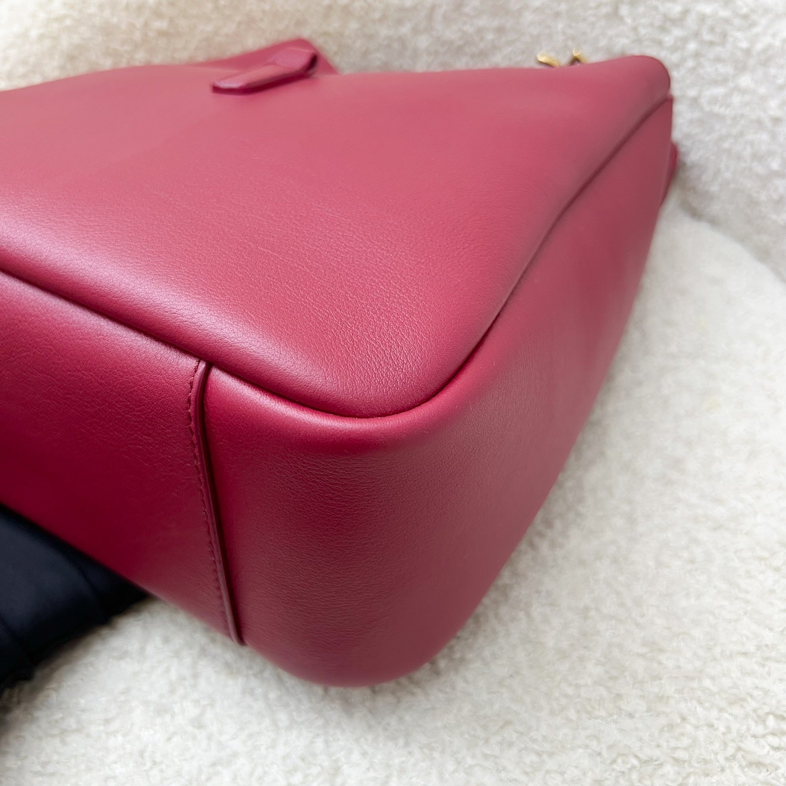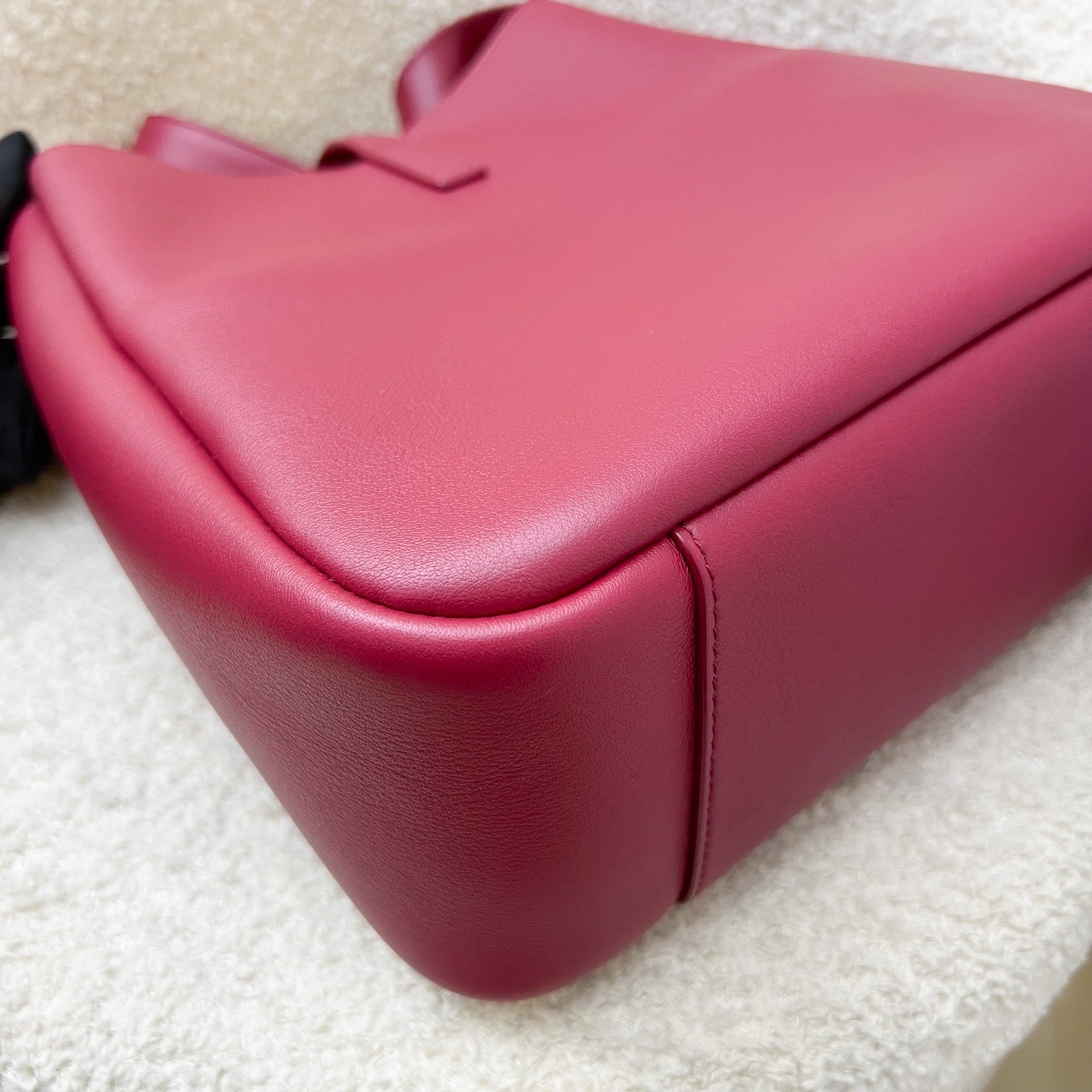Saint Laurent YSL Small Le 5 À 7 Supple Hobo Bag in Cherry Jam (Raspberry Red) Grained Leather and GHW (Style Code: 713938AAAUQ)