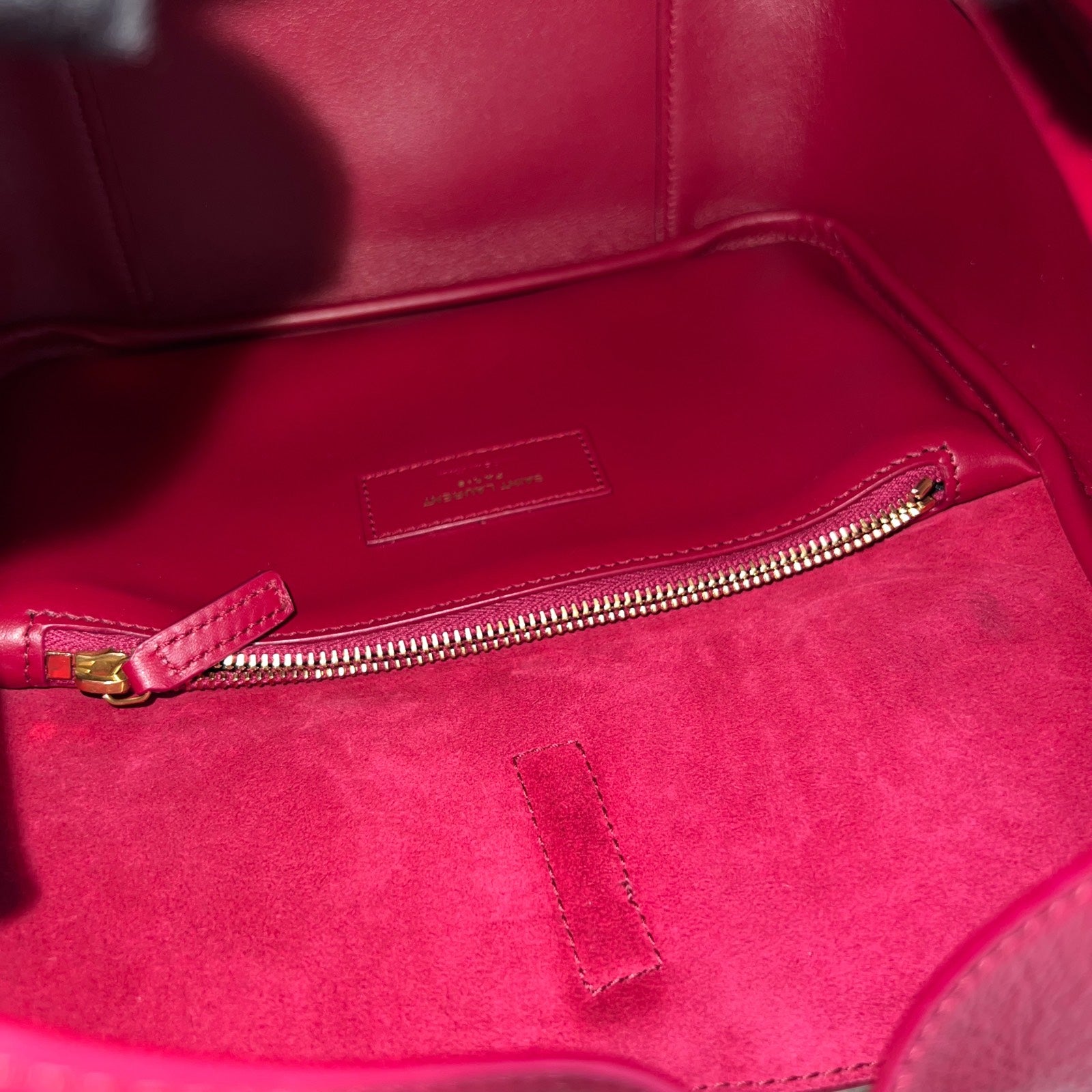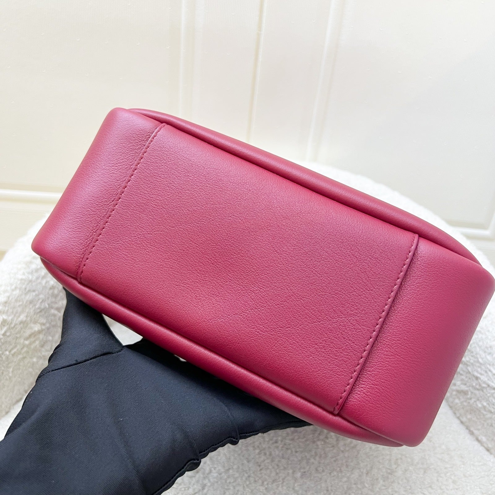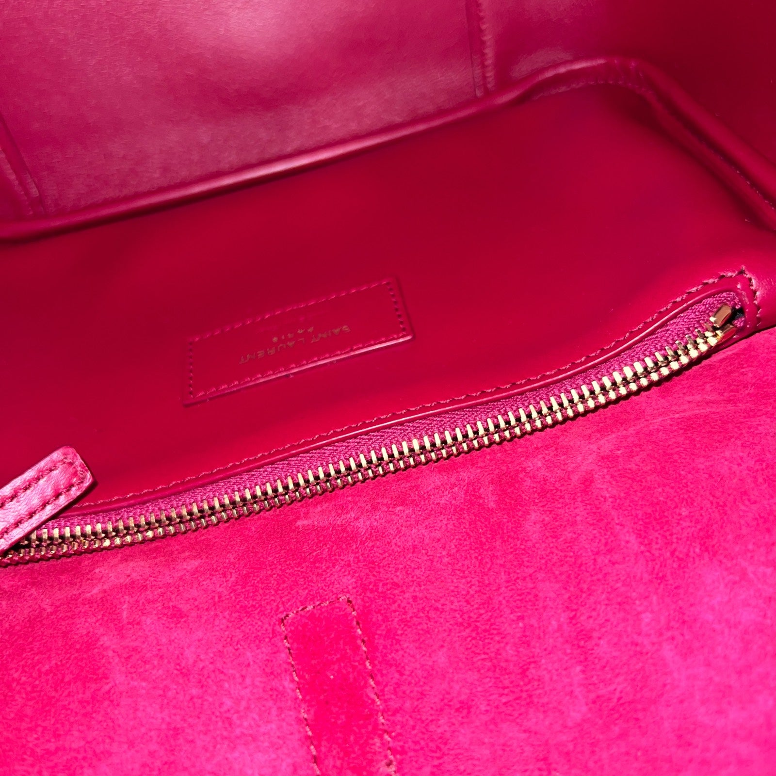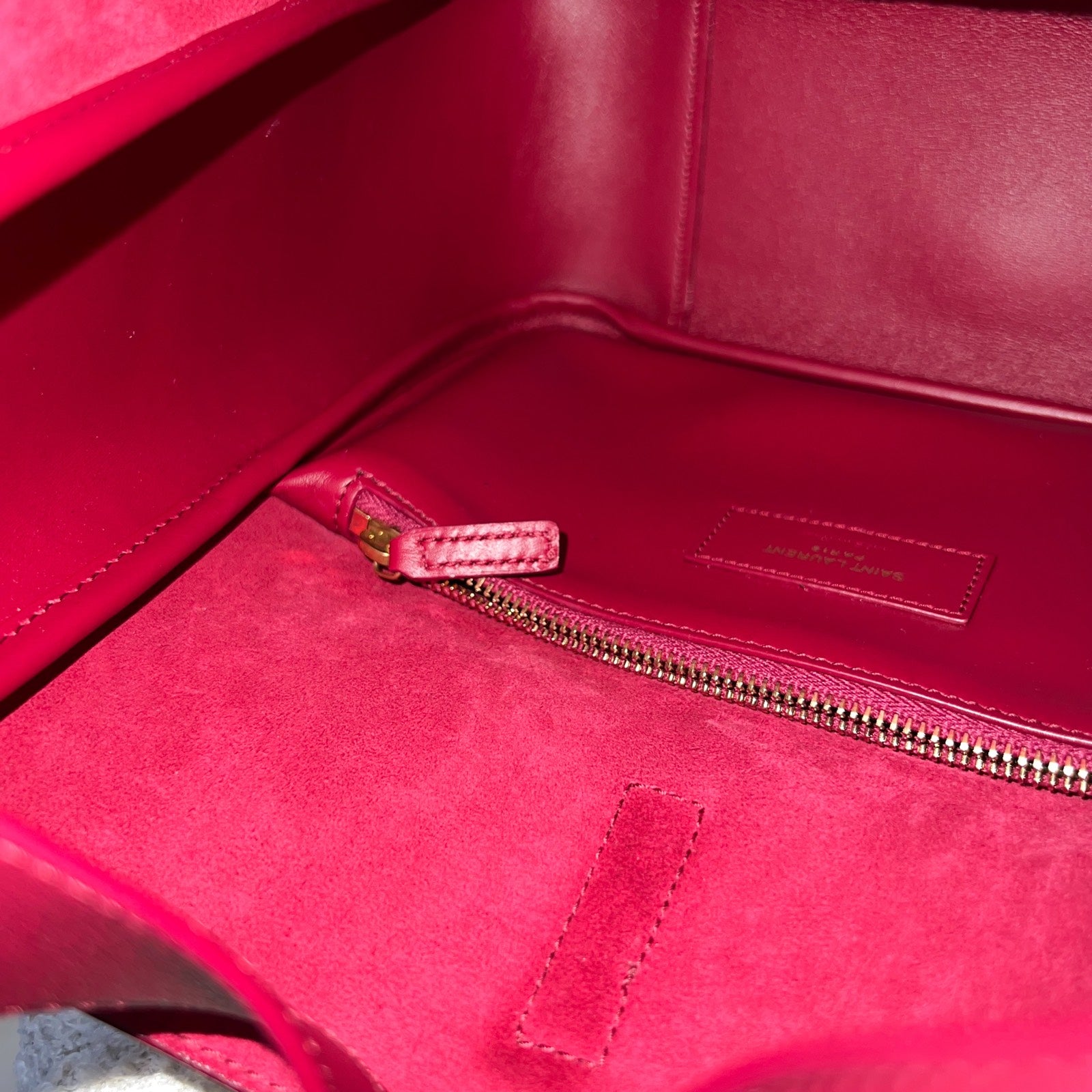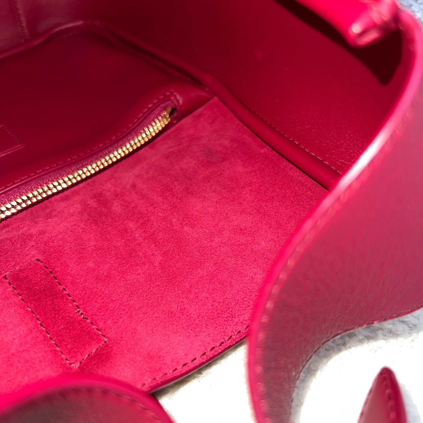 Saint Laurent YSL Small Le 5 À 7 Supple Hobo Bag in Cherry Jam (Raspberry Red) Grained Leather and GHW (Style Code: 713938AAAUQ)