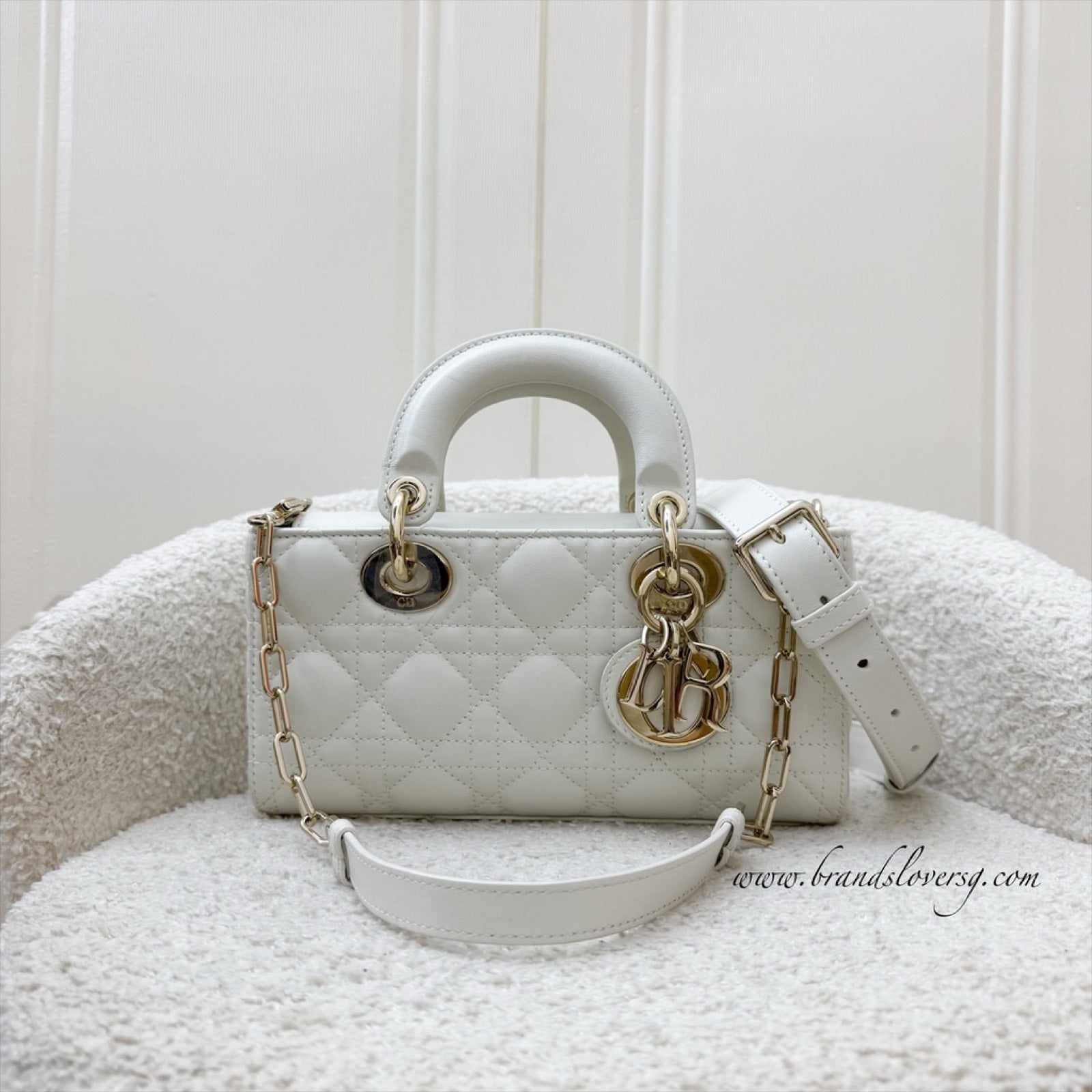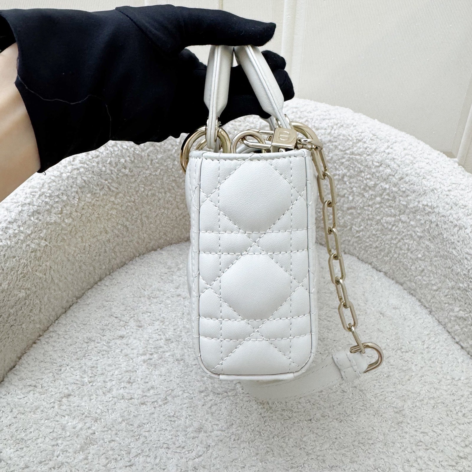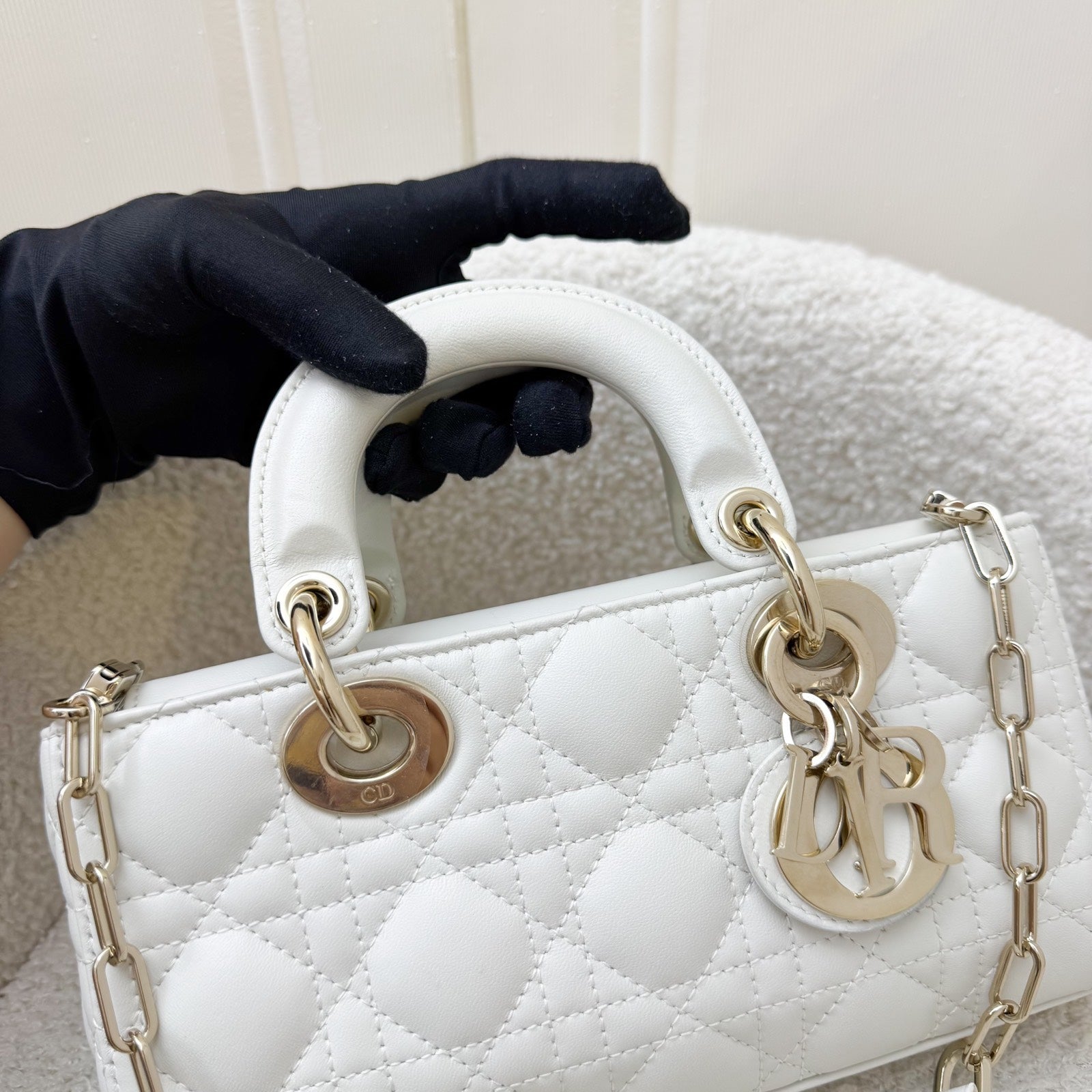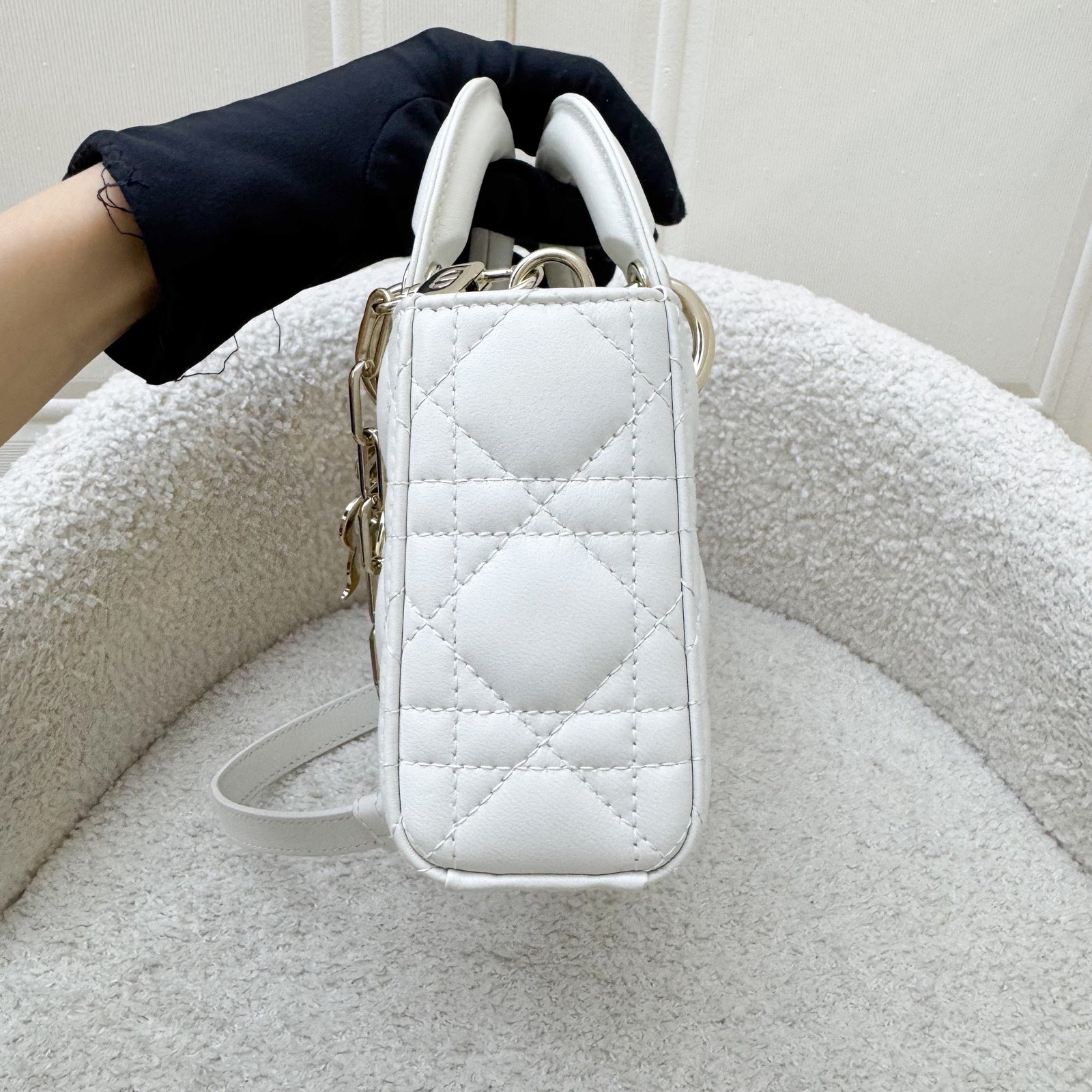 Dior Small Lady D-Joy Bag in White Cannage Lambskin and LGHW
