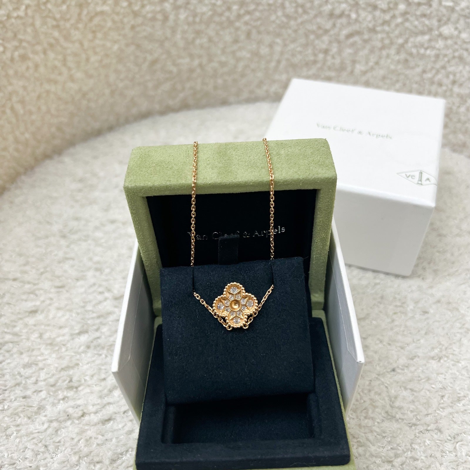 [Local Set - 2021] Van Cleef & Arpels VCA Vintage Alhambra Pendant, Paved with Round Diamonds in 18K Rose Gold (Ref: VCARP2R300)