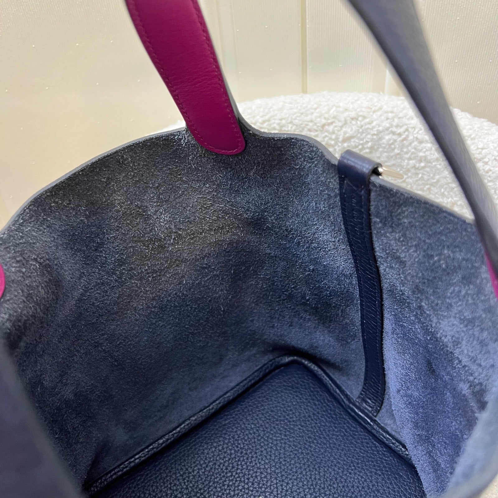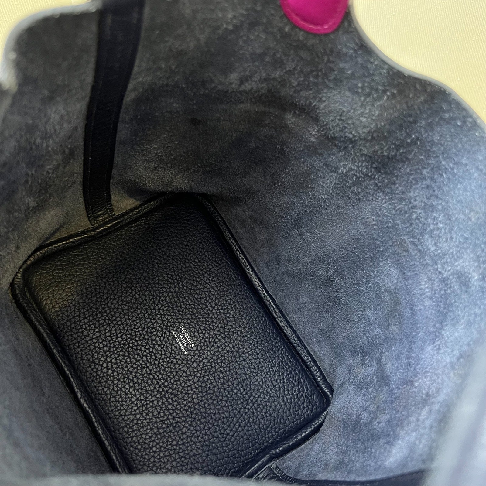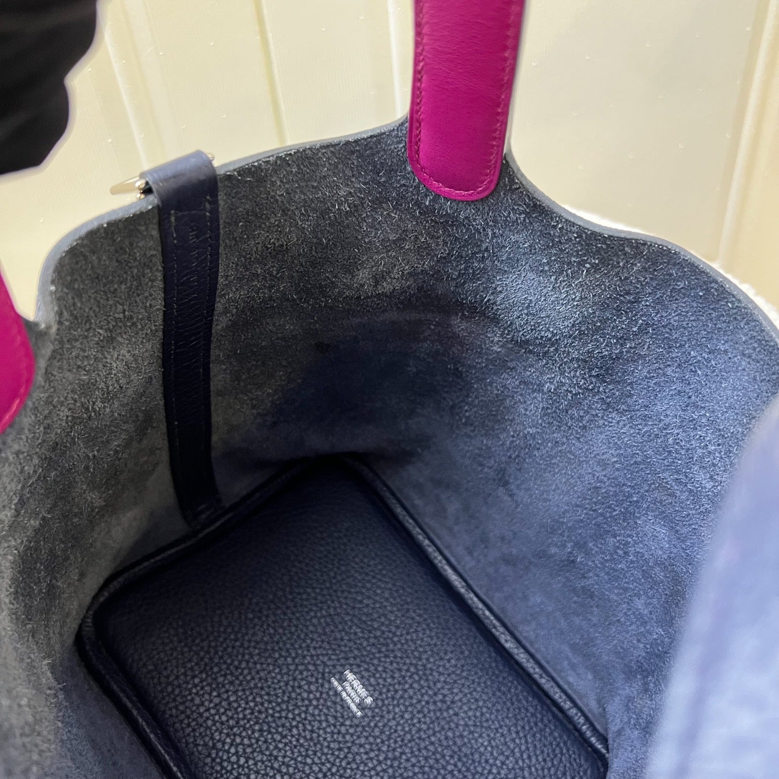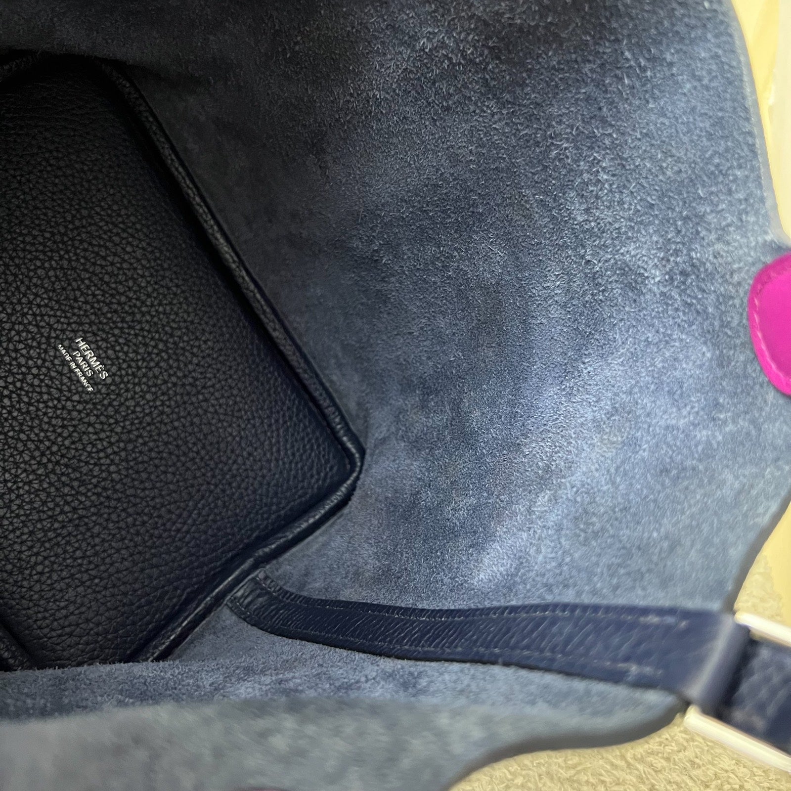 Hermes Picotin 18 in Blue Nuit Clemence Leather, Rose Pourpre Swift Handles and PHW