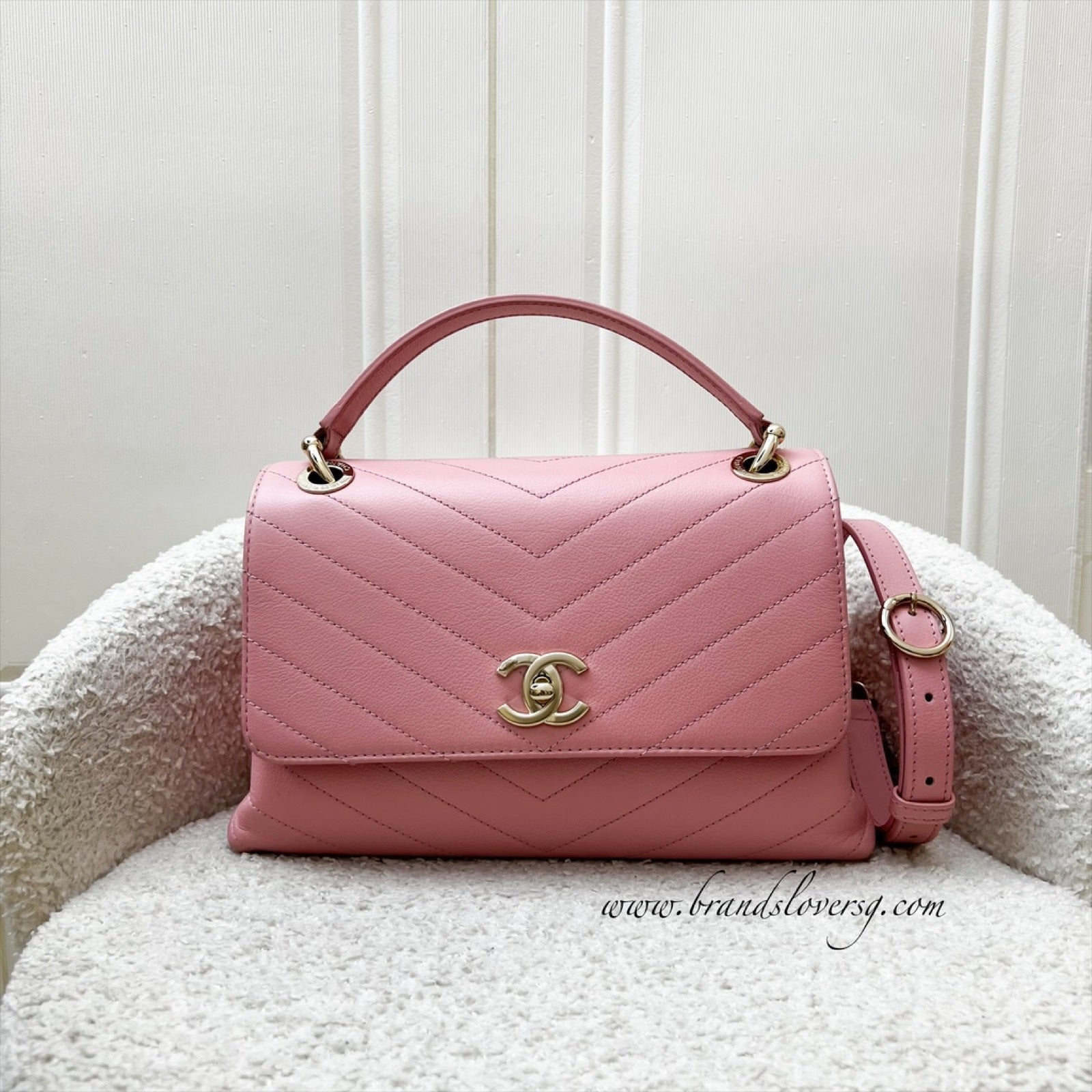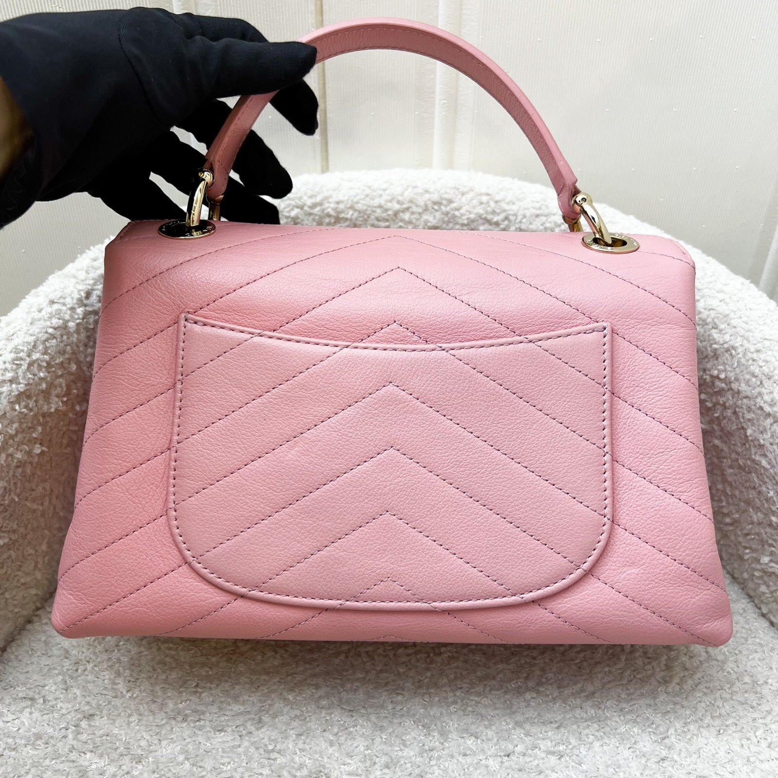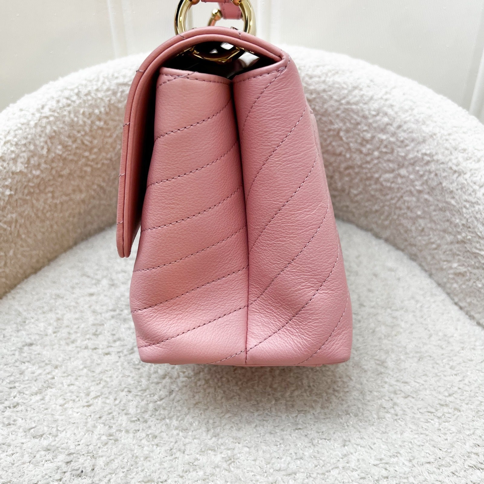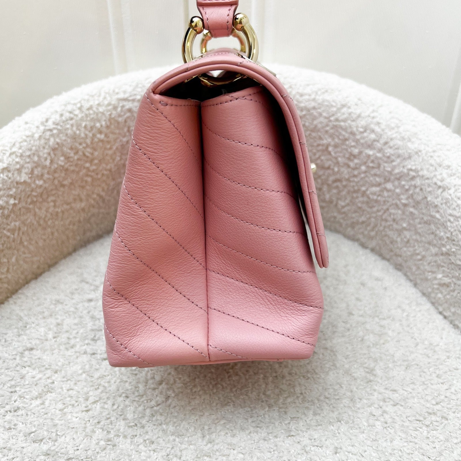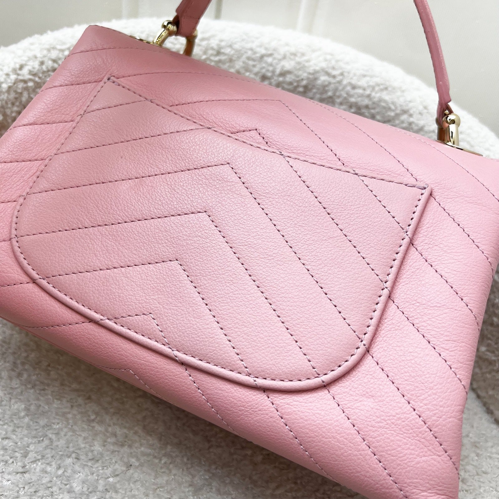 Chanel Seasonal Top Handle Flap Bag in Chevron Quilted Pink Calf Leather and LGHW