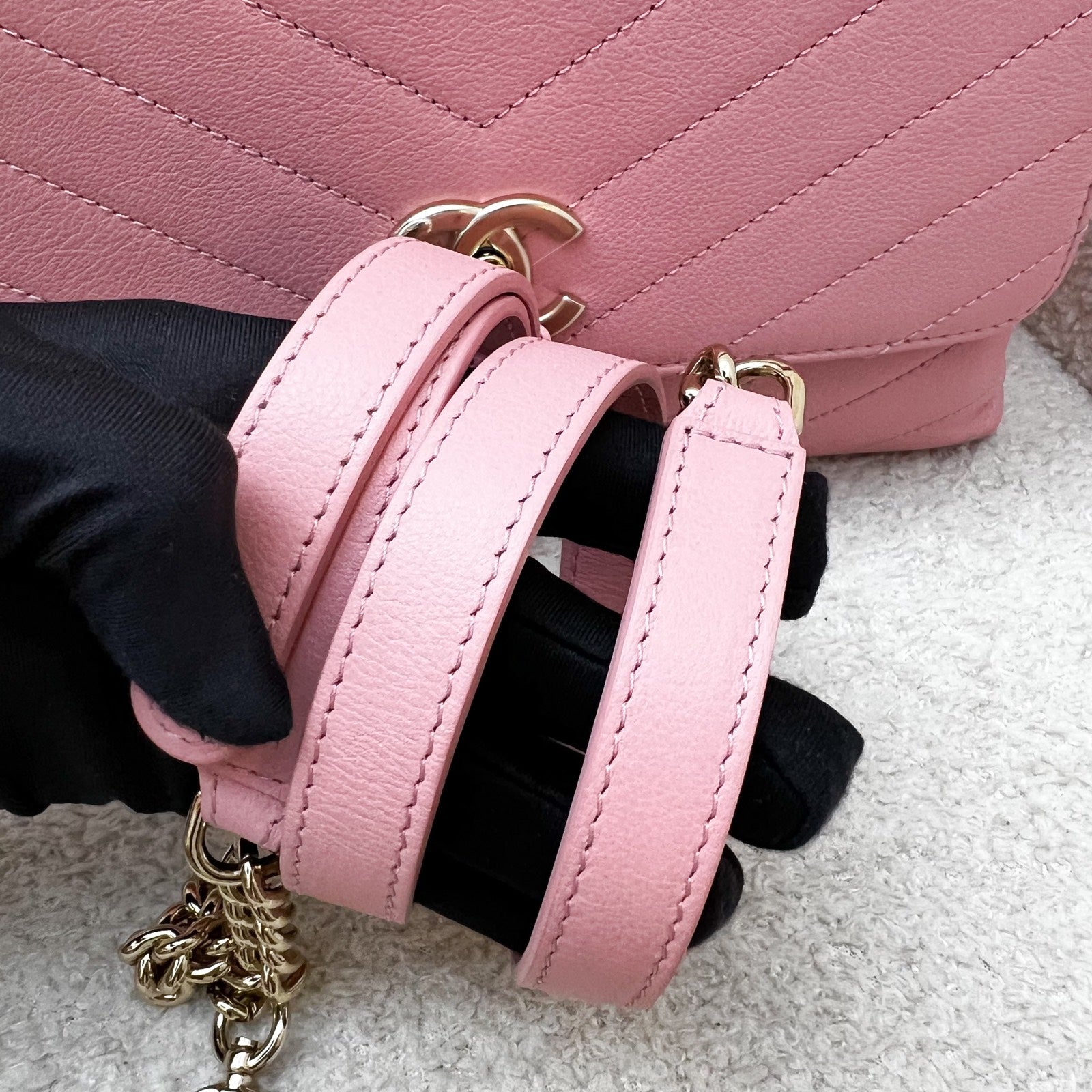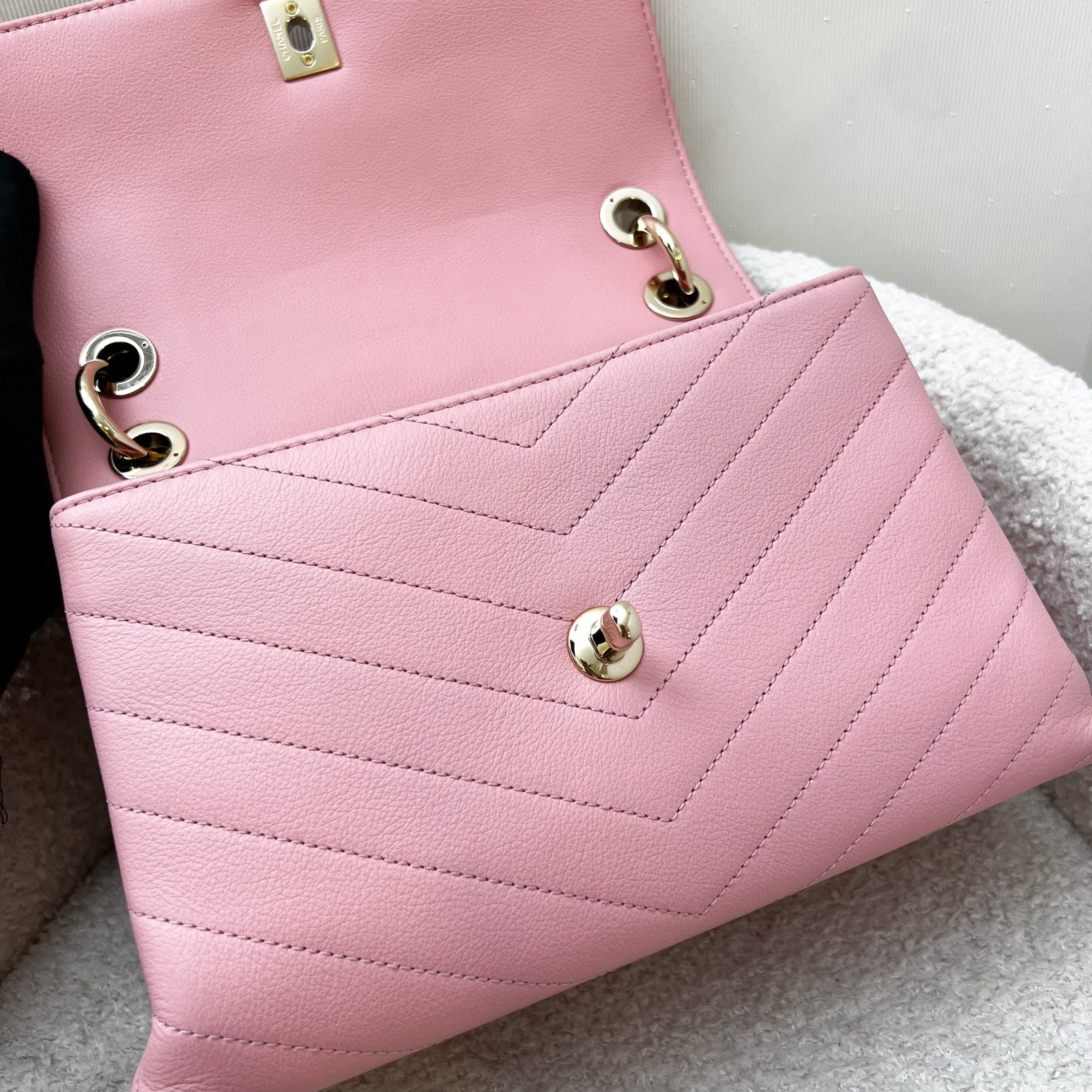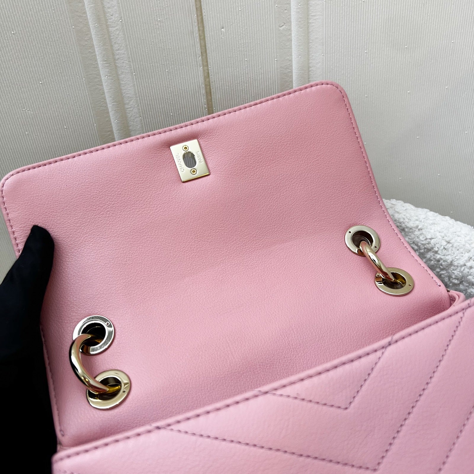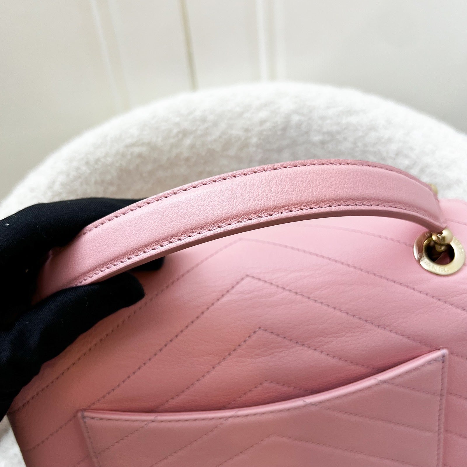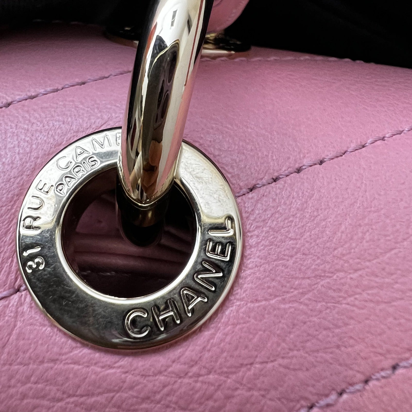 Chanel Seasonal Top Handle Flap Bag in Chevron Quilted Pink Calf Leather and LGHW
