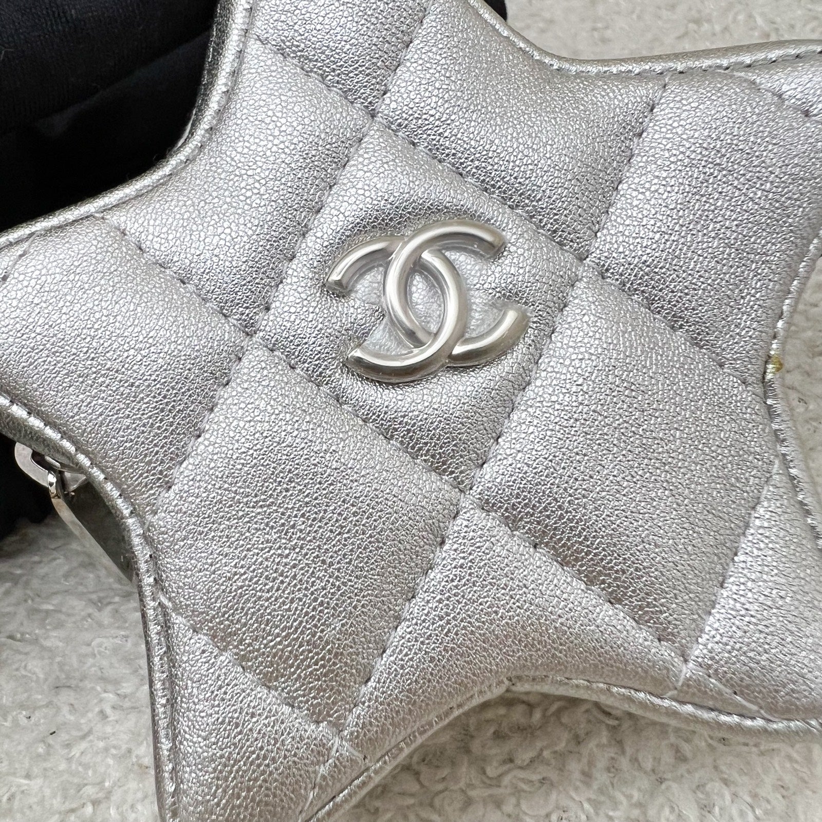 Chanel VIP Gift 24C Star Pouch Charm in Iridescent Silver Lambskin and SHW