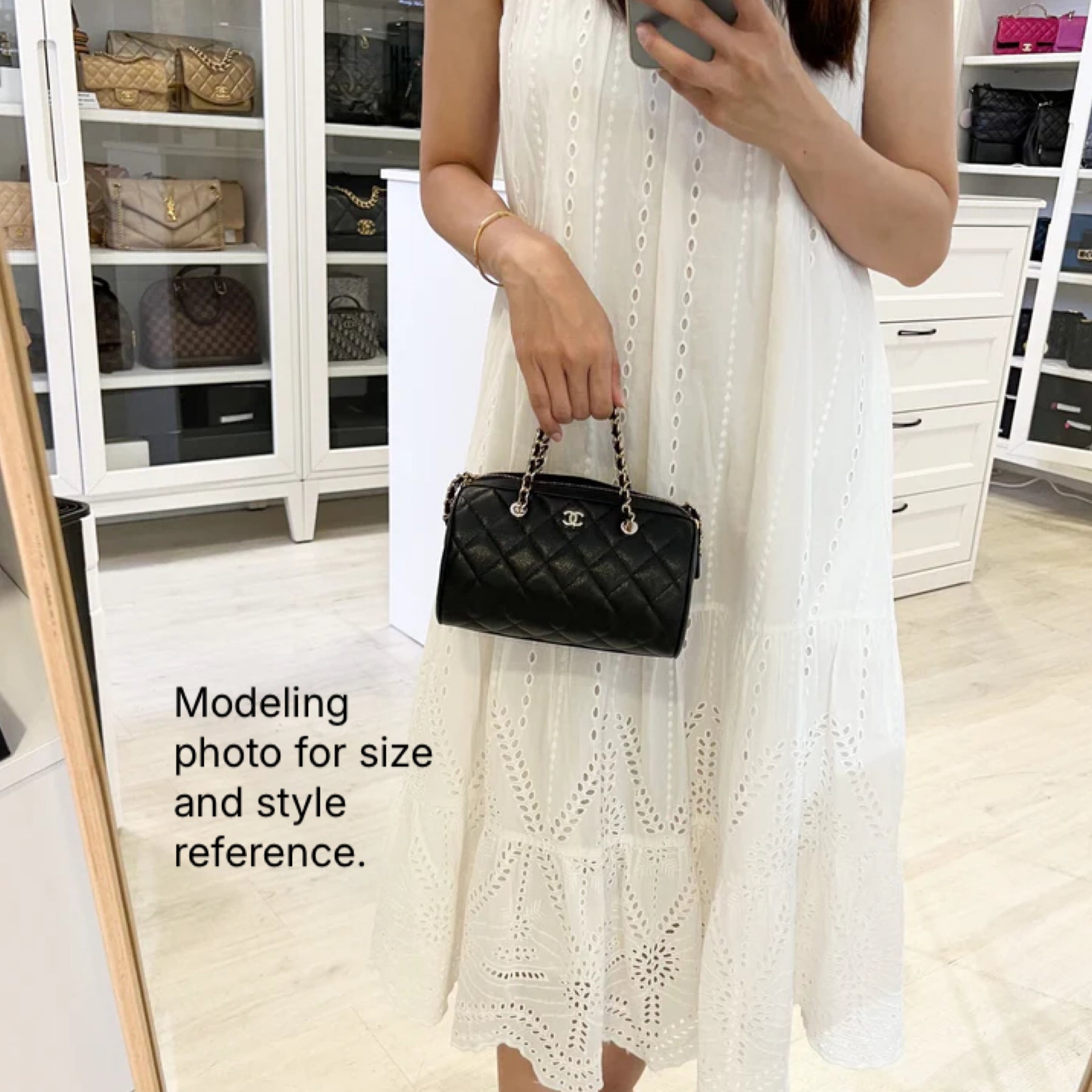 Below retail deal (currently 6.2k)! One of the hottest designs of 25P! Hard to get in boutiques. Gorgeous bag in popular bowling style in most popular and classic black caviar. Fits all phones. Grab this before it flies off!