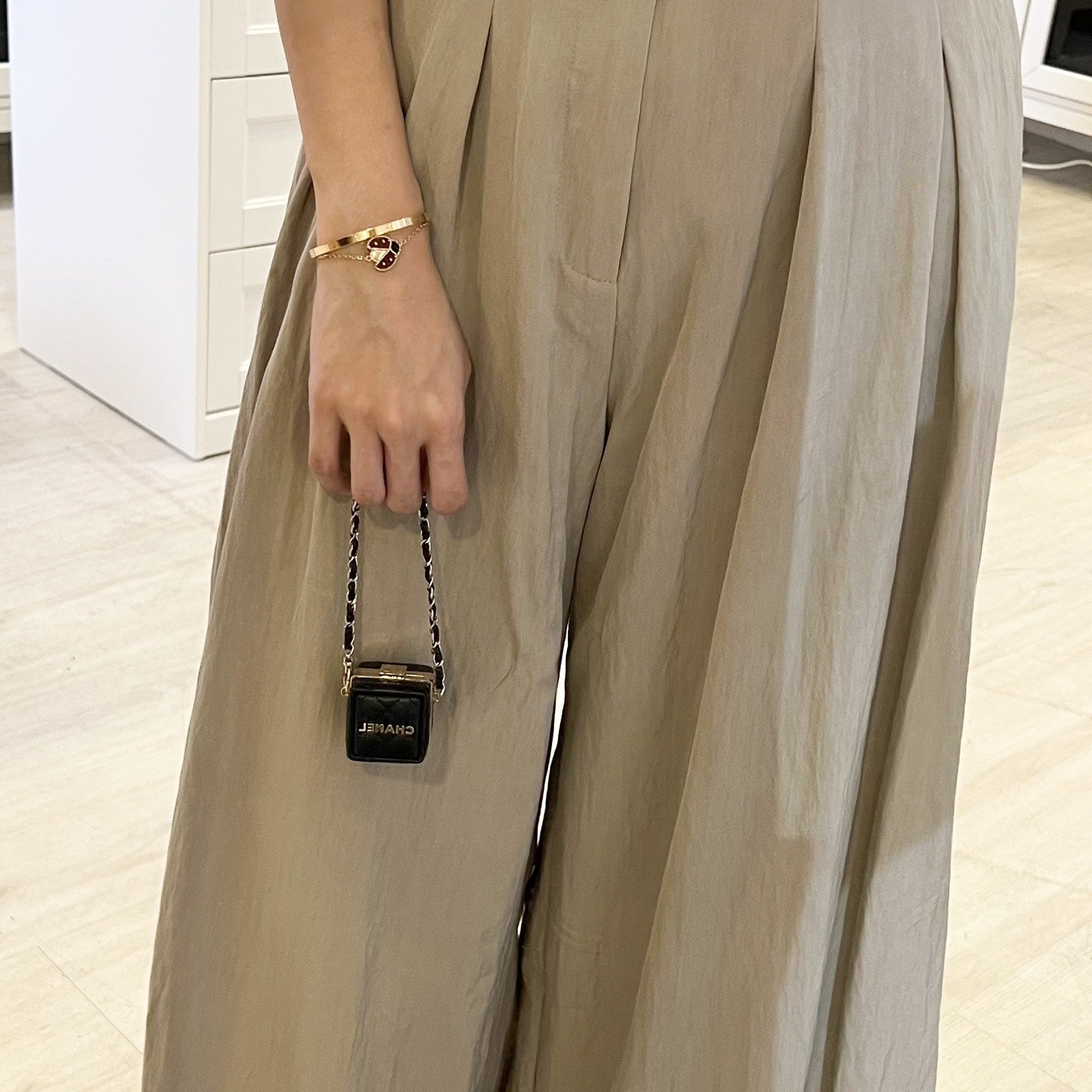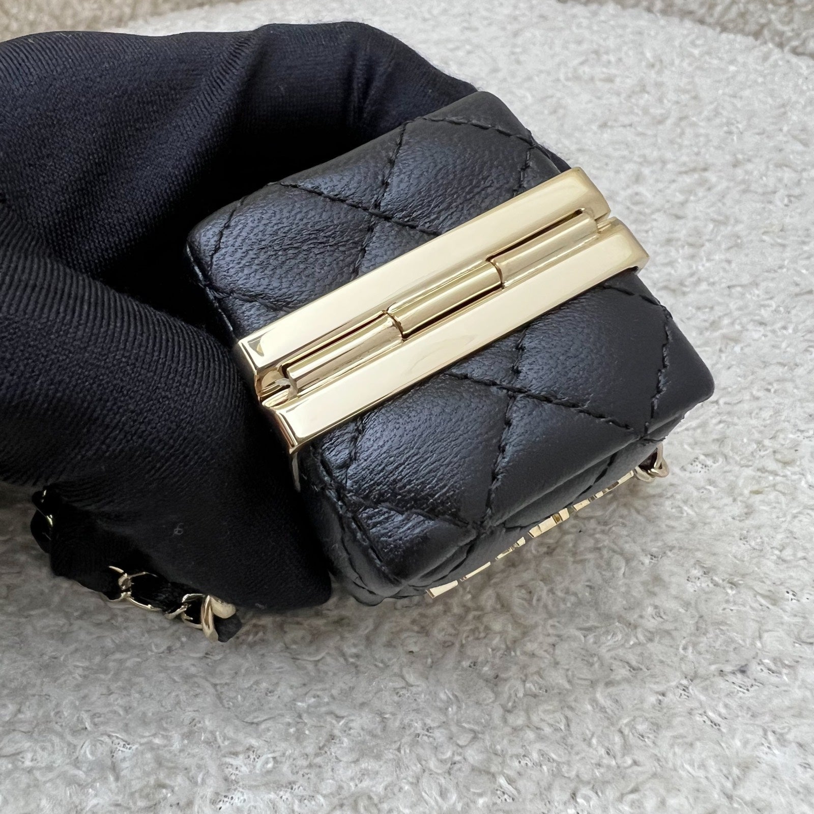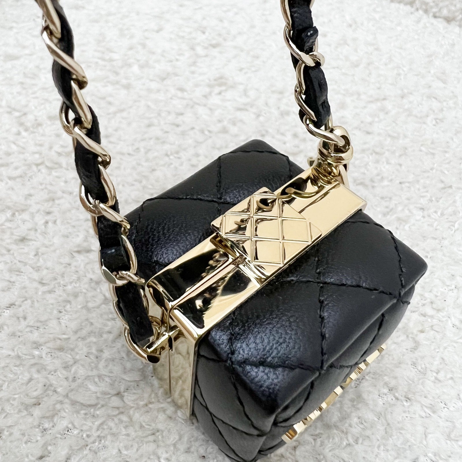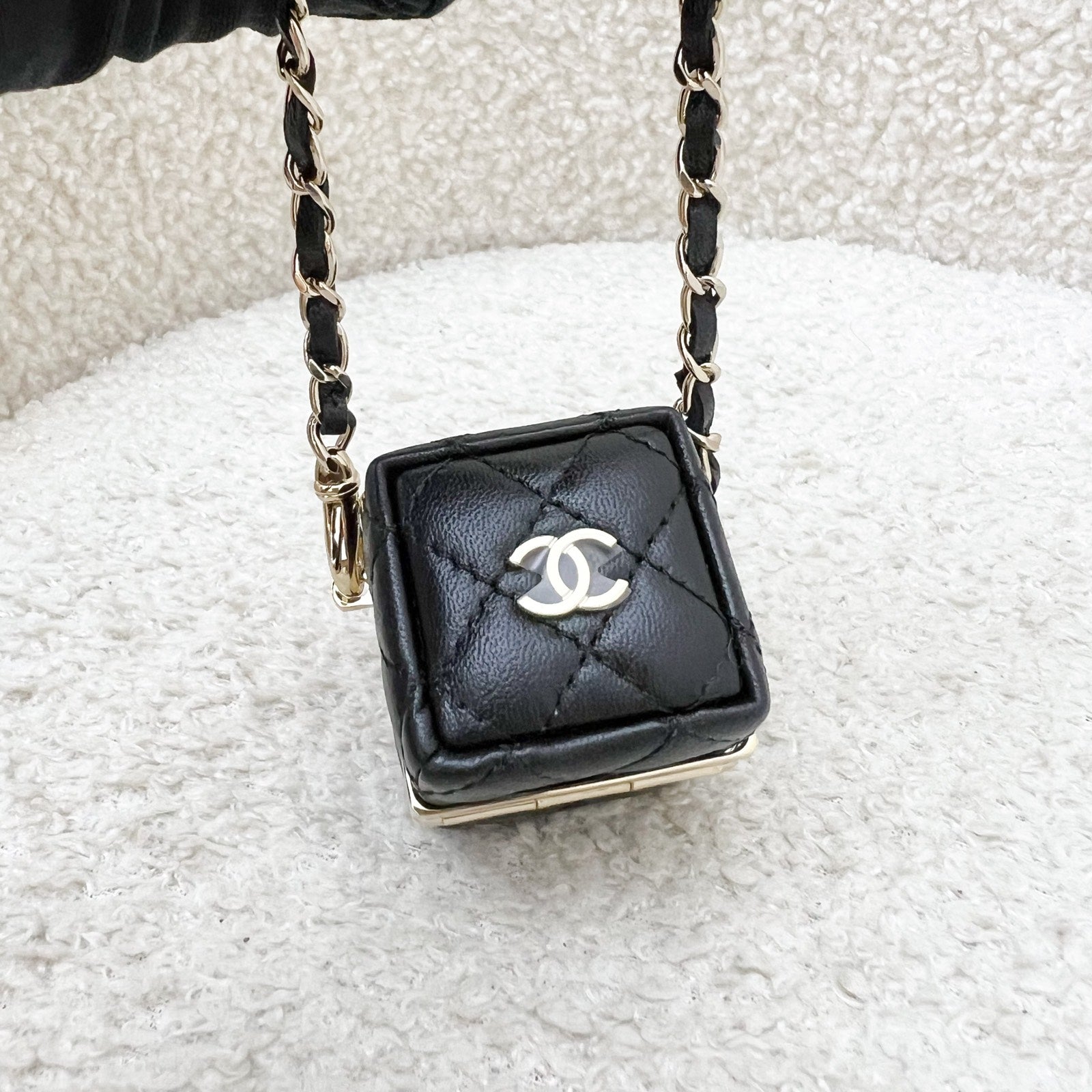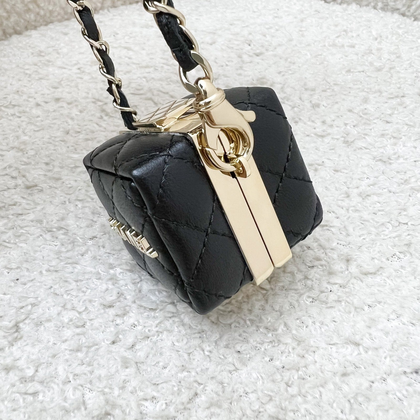 Chanel Cube Bag Charm in Black Lambskin and GHW