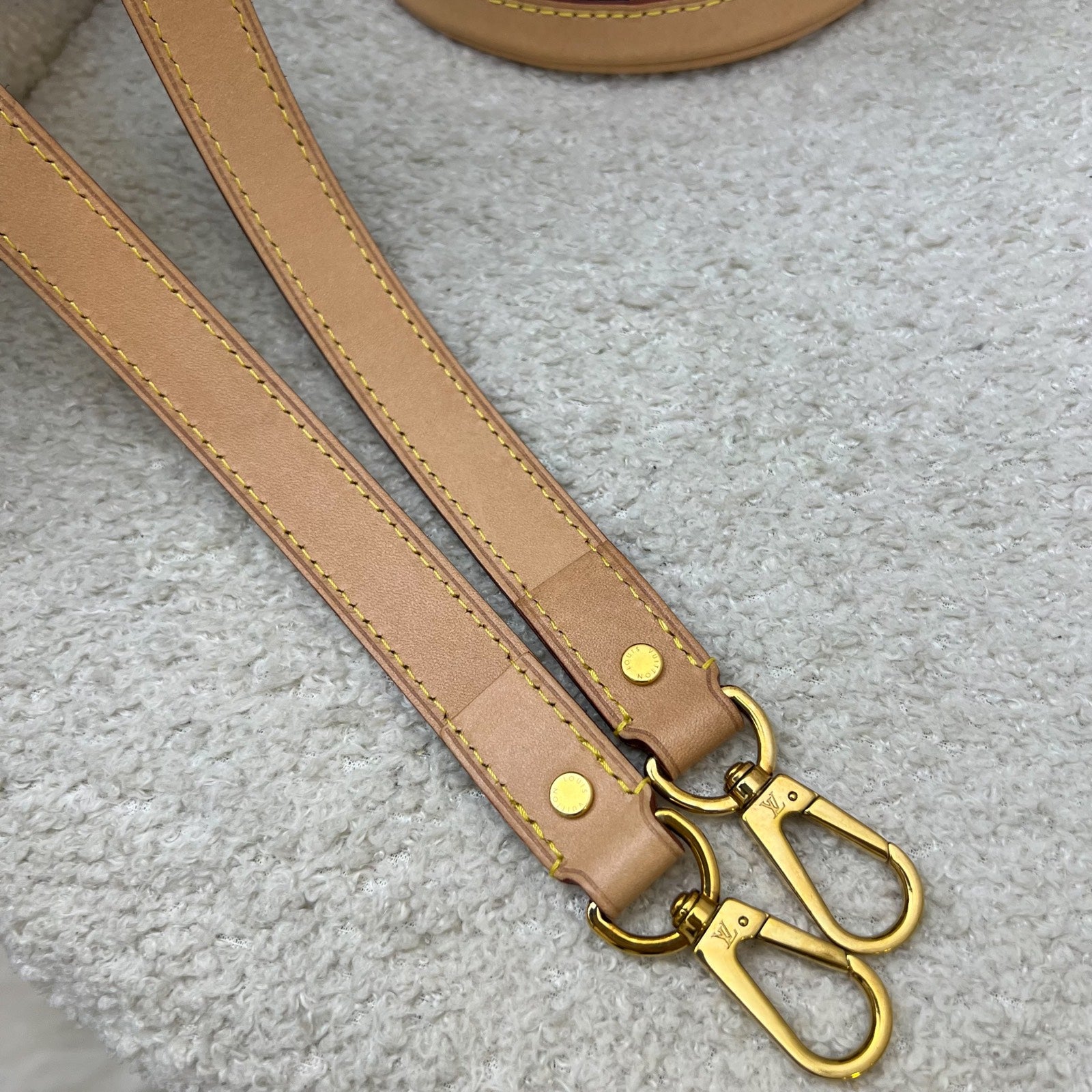 Condition: 8.6/10 good condition with minor but noticeable signs of use/storage. Noticeable scratches and cuts on the exterior base. Noticeable marks on the vachetta leather. Minor tarnish and hairline scratches on the hardware. Not for very particular buyers but is a super good deal. (Photos form part of the description.)