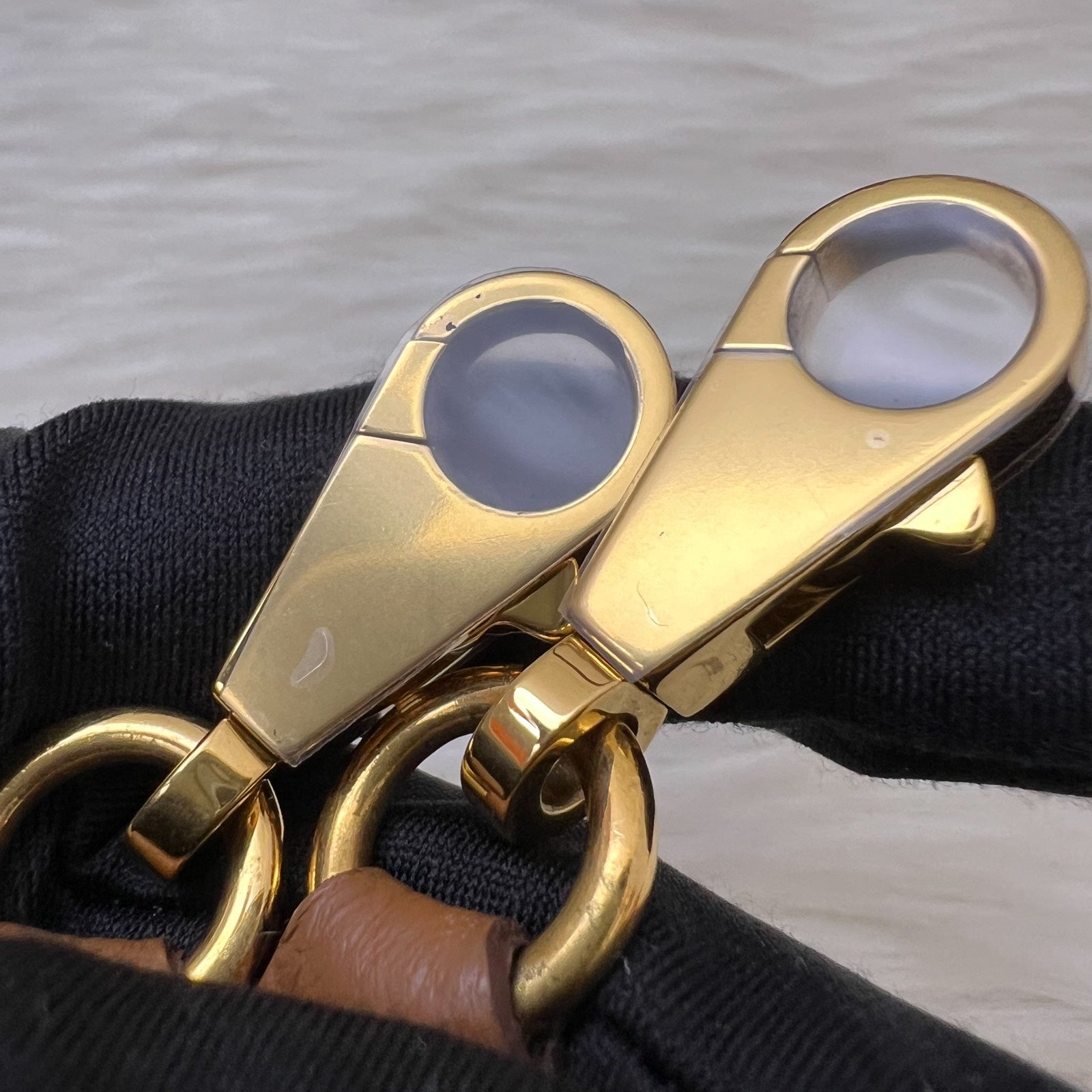 Condition: 9.1/10 like new condition with minor signs of use/storage. Minor faint scratches and press marks on the interior base. 1 tiny, not very noticeable dot on the back panel near the bottom. Seals on the strap's hardware are still intact. (Photos form part of the description.)