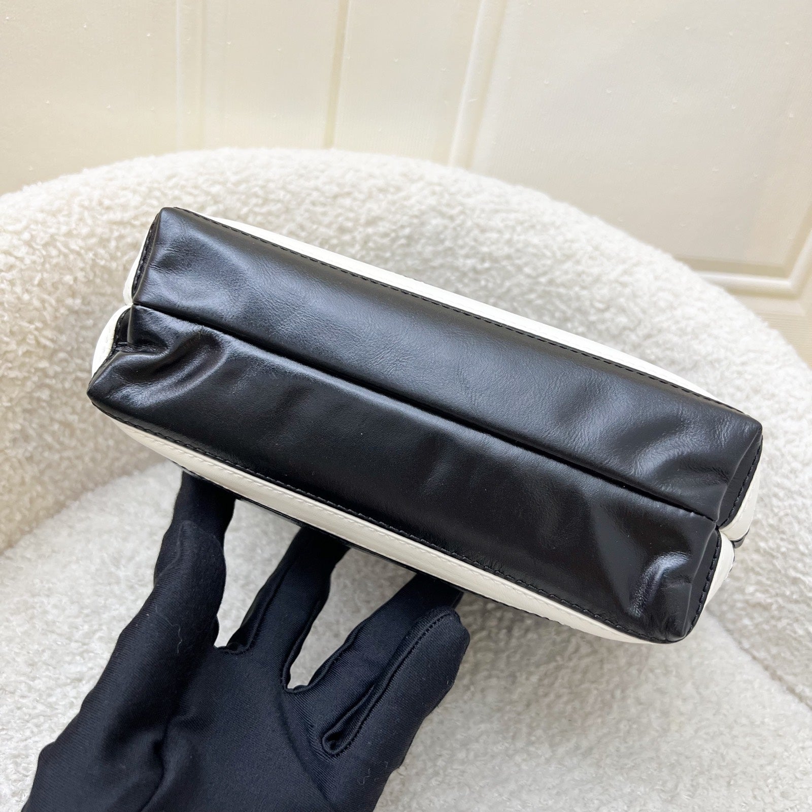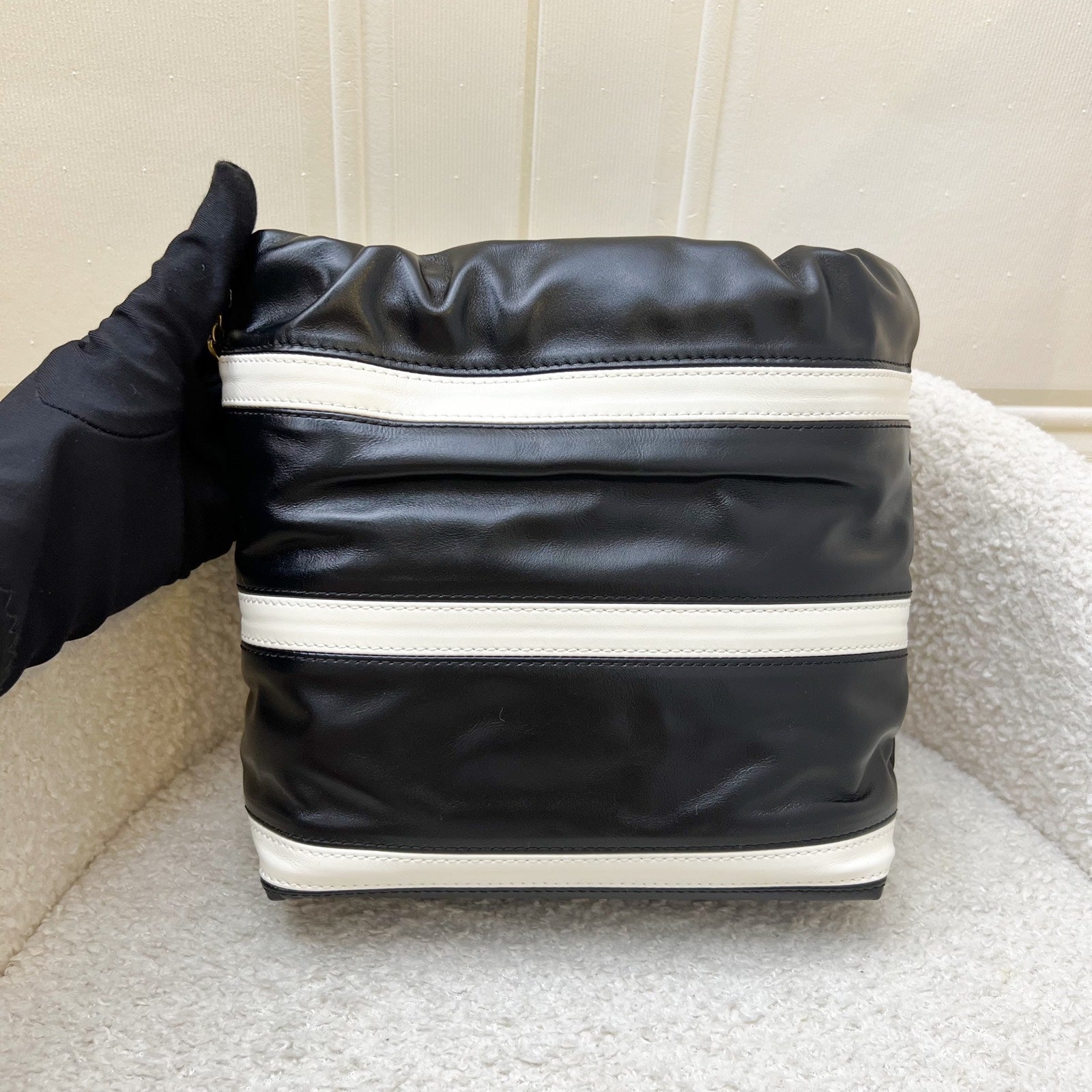 Chanel 22 Mini Hobo Handbag in 24S Striped Black and White Shiny Calfskin and AGHW (Detachable Strap)