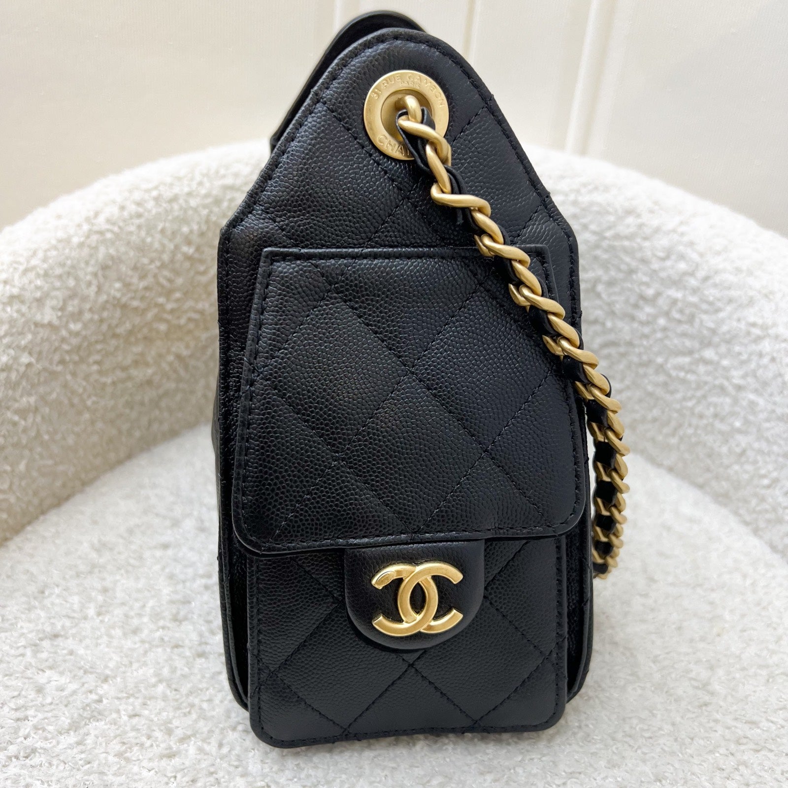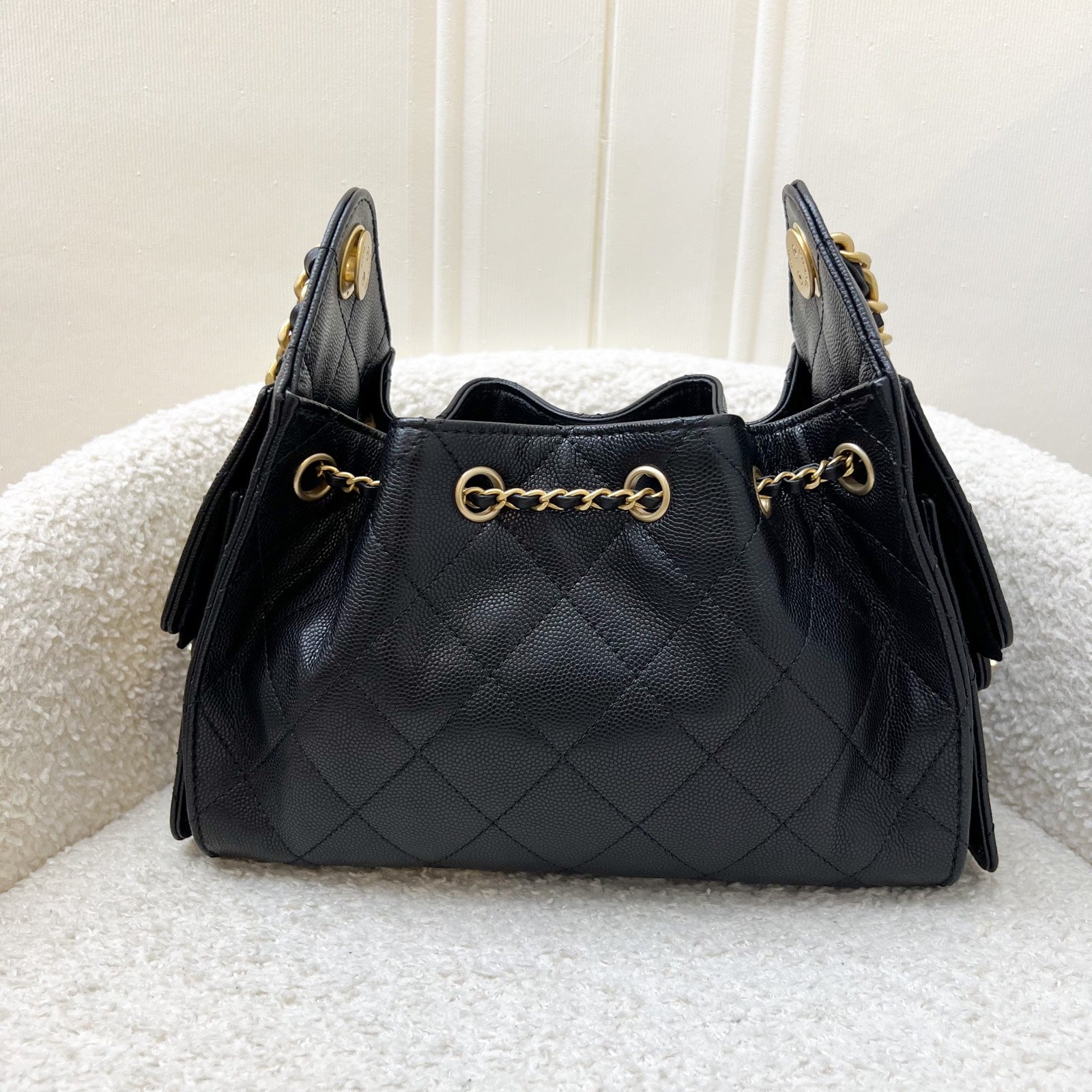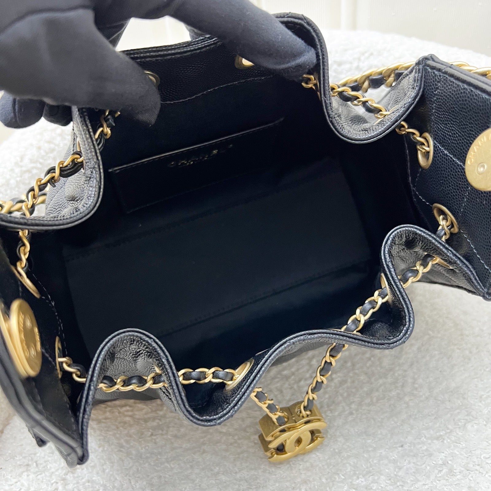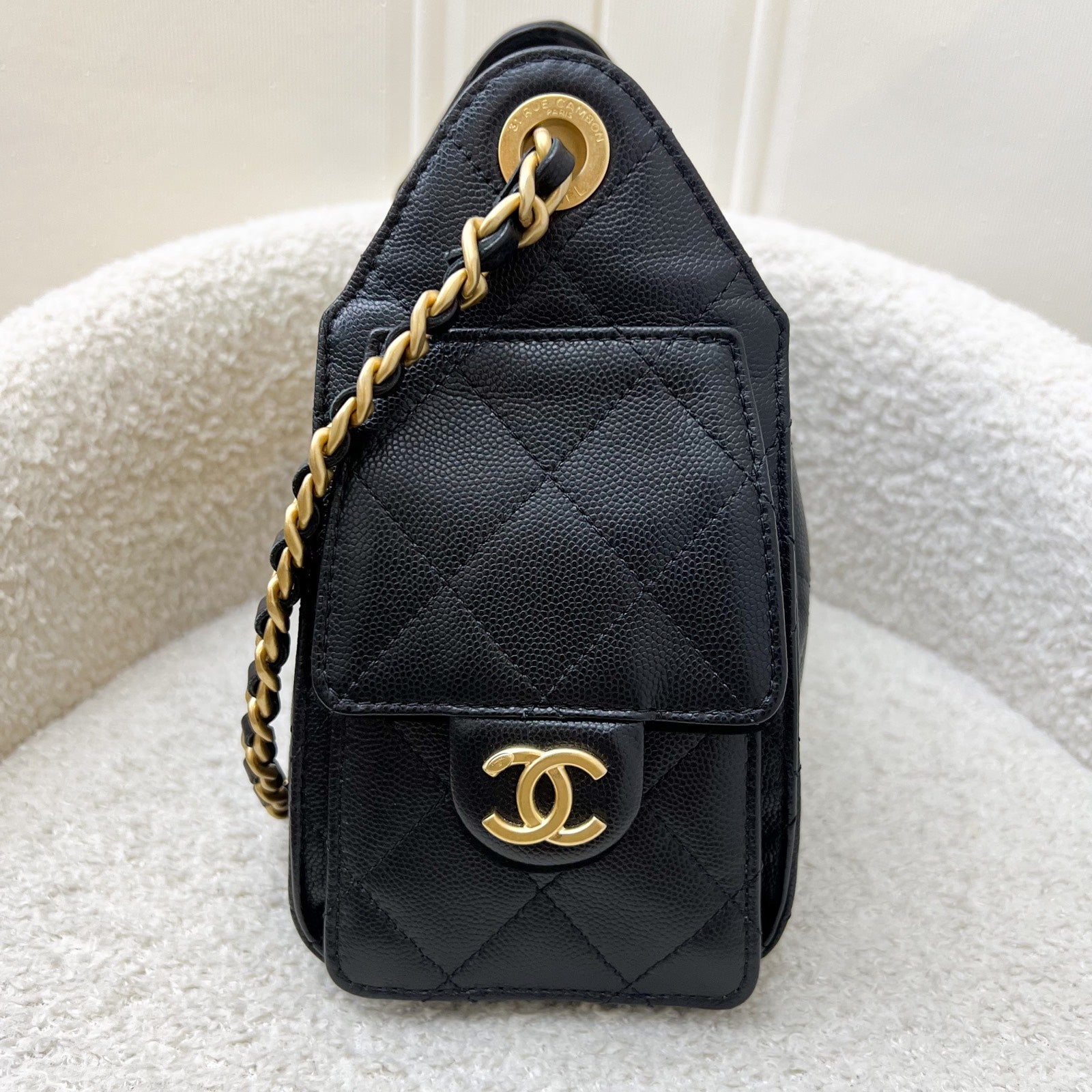 Newest IT bag from Chanel in the NEWEST SIZE! Just seen on the runway of 26C! The Chanel 25 was seen on many influencers and celebrities (including Jennie and Dua Lipa). Super chic Chanel 25 bag in black caviar + MINI size! Super highly coveted and hard to get in boutiques. Be one of the first few to wear this!