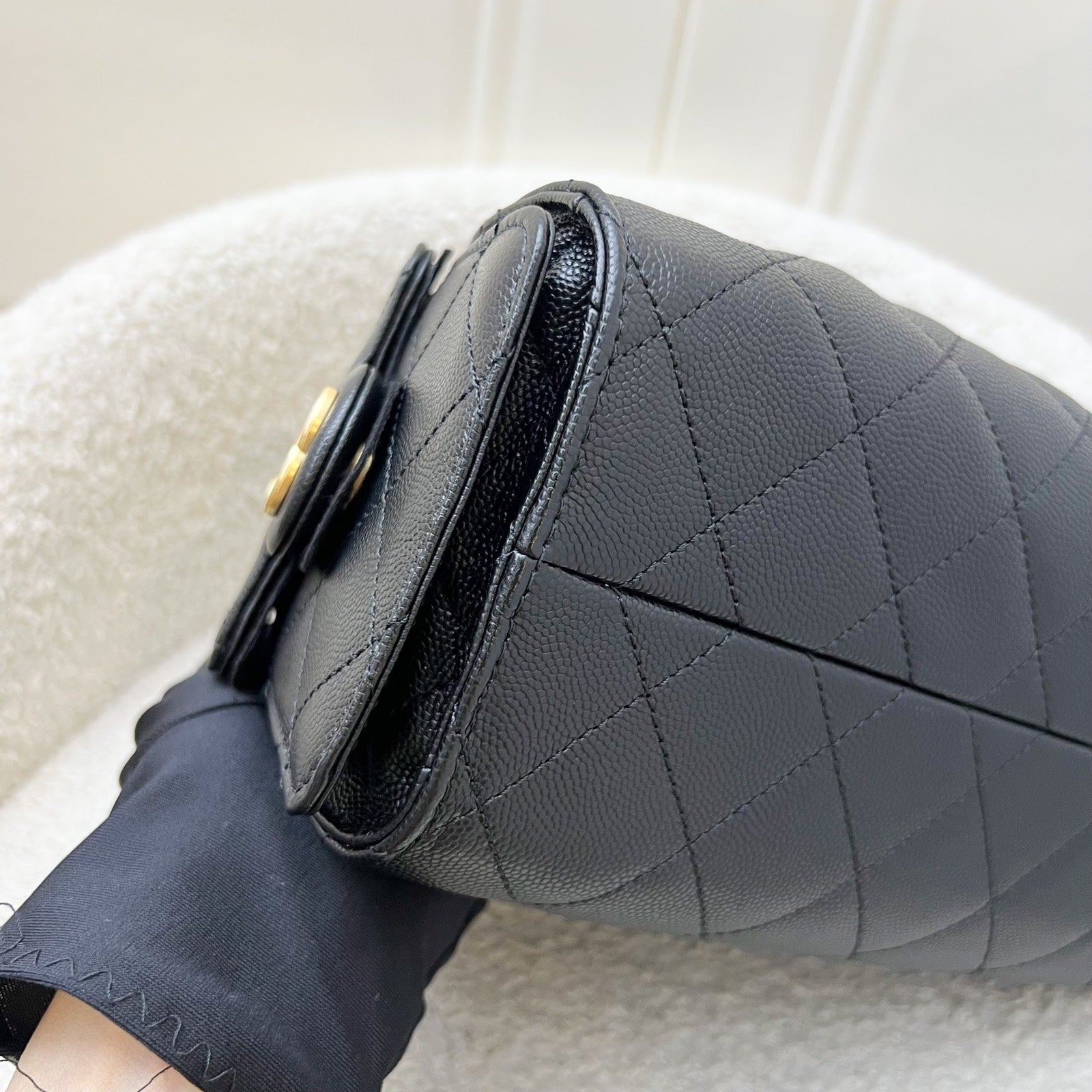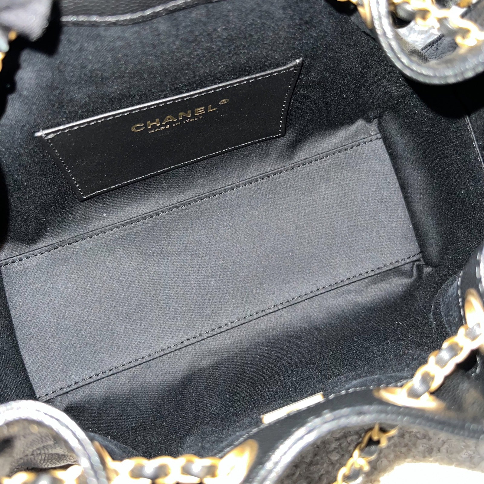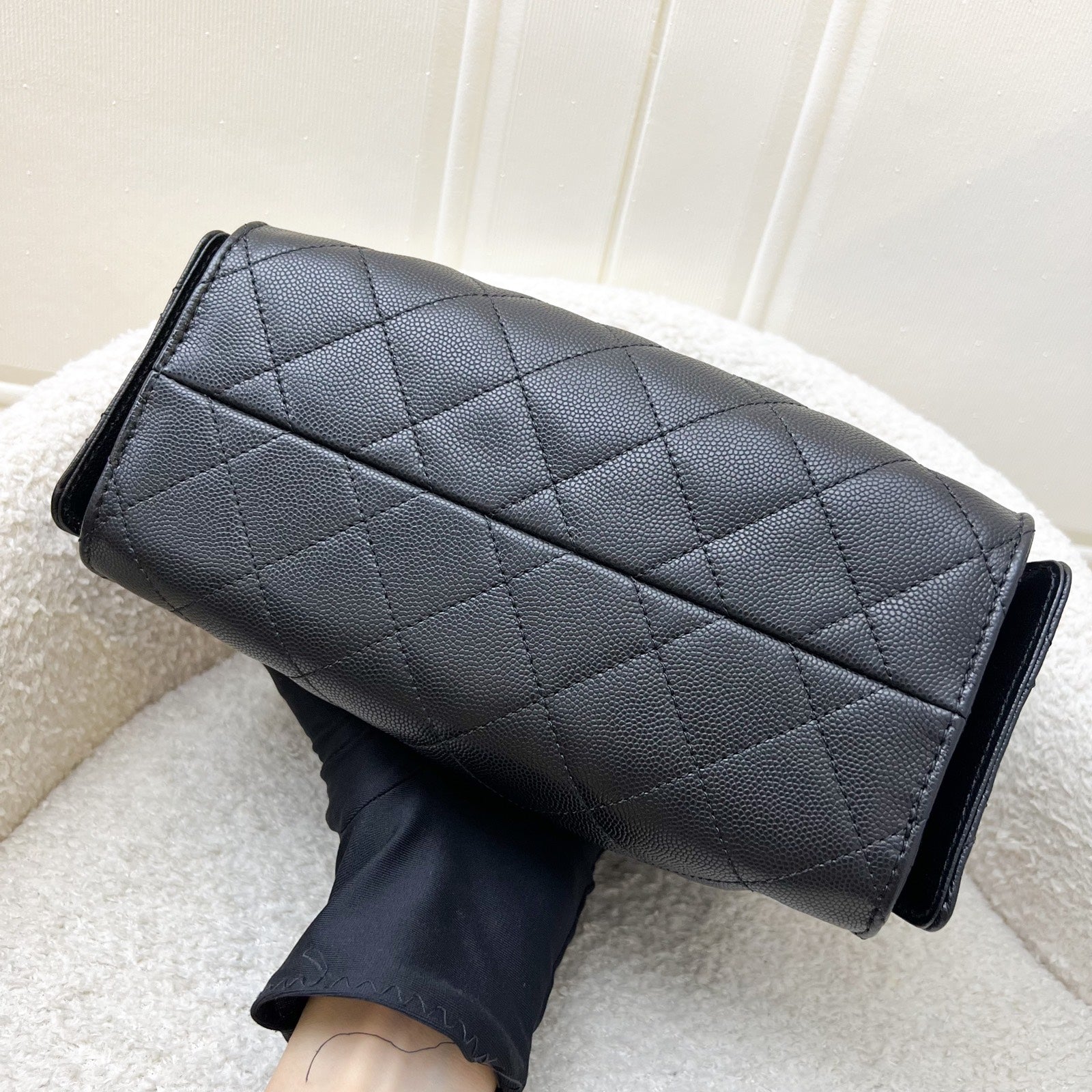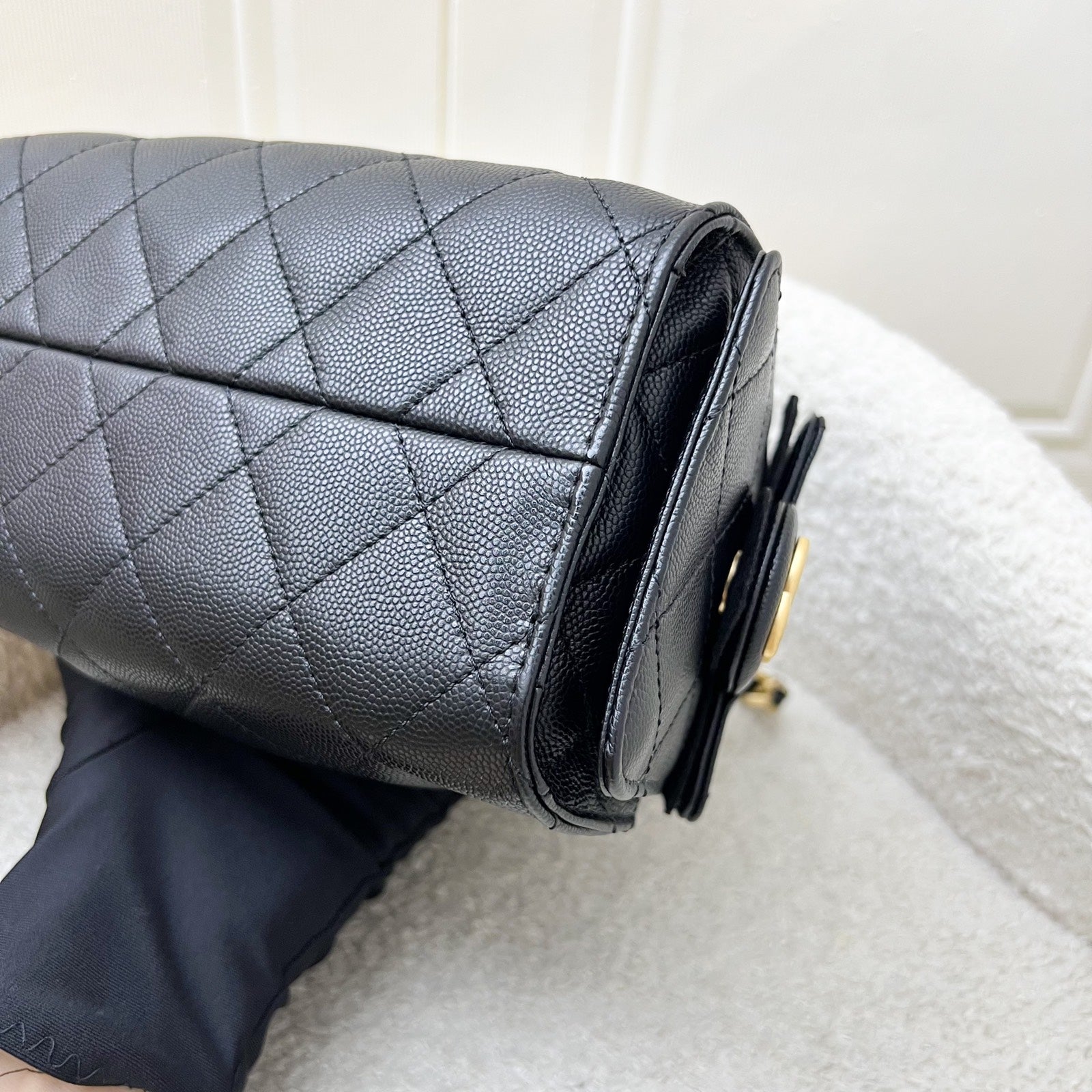 Newest IT bag from Chanel in the NEWEST SIZE! Just seen on the runway of 26C! The Chanel 25 was seen on many influencers and celebrities (including Jennie and Dua Lipa). Super chic Chanel 25 bag in black caviar + MINI size! Super highly coveted and hard to get in boutiques. Be one of the first few to wear this!