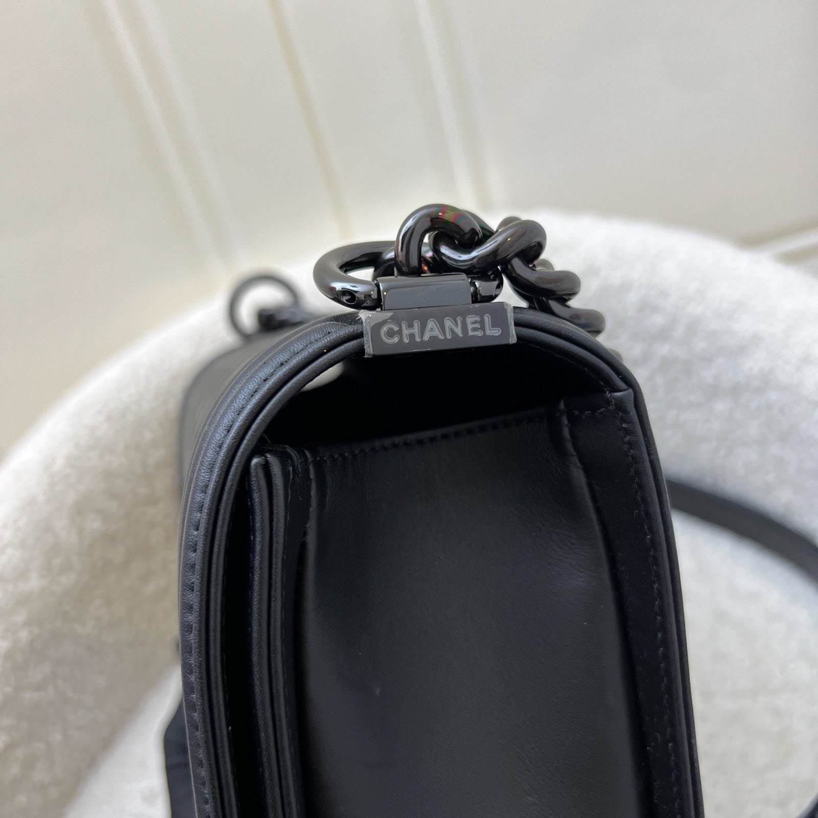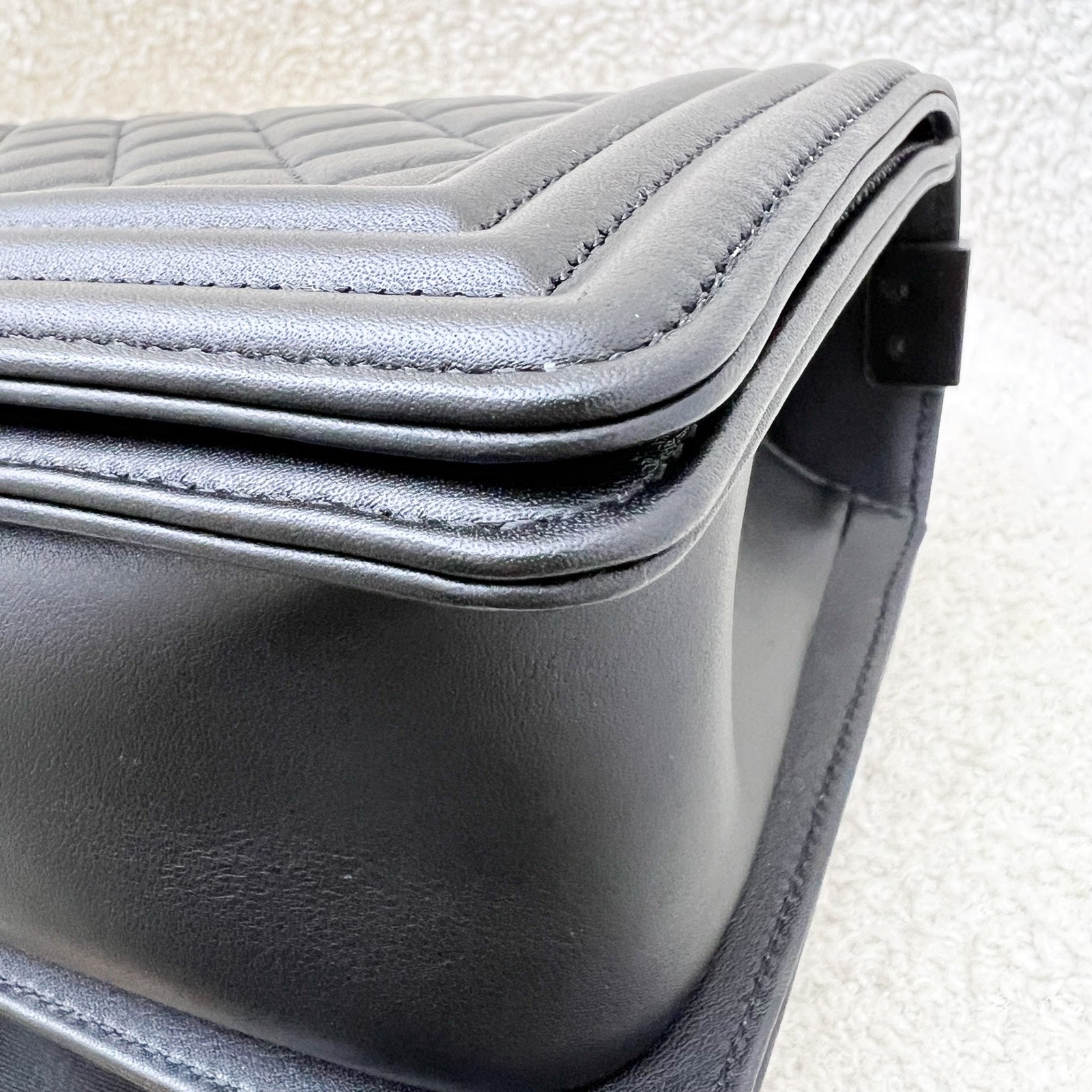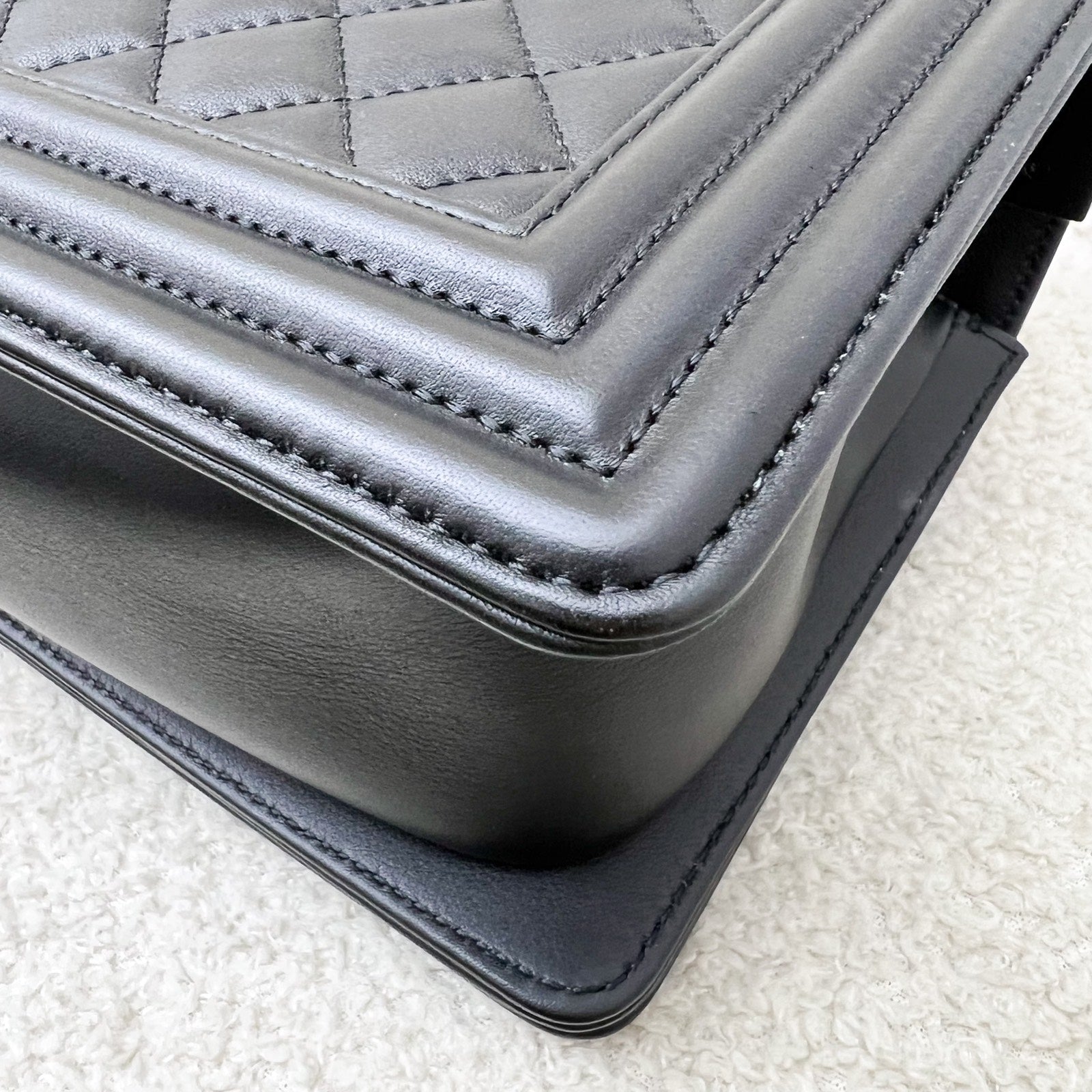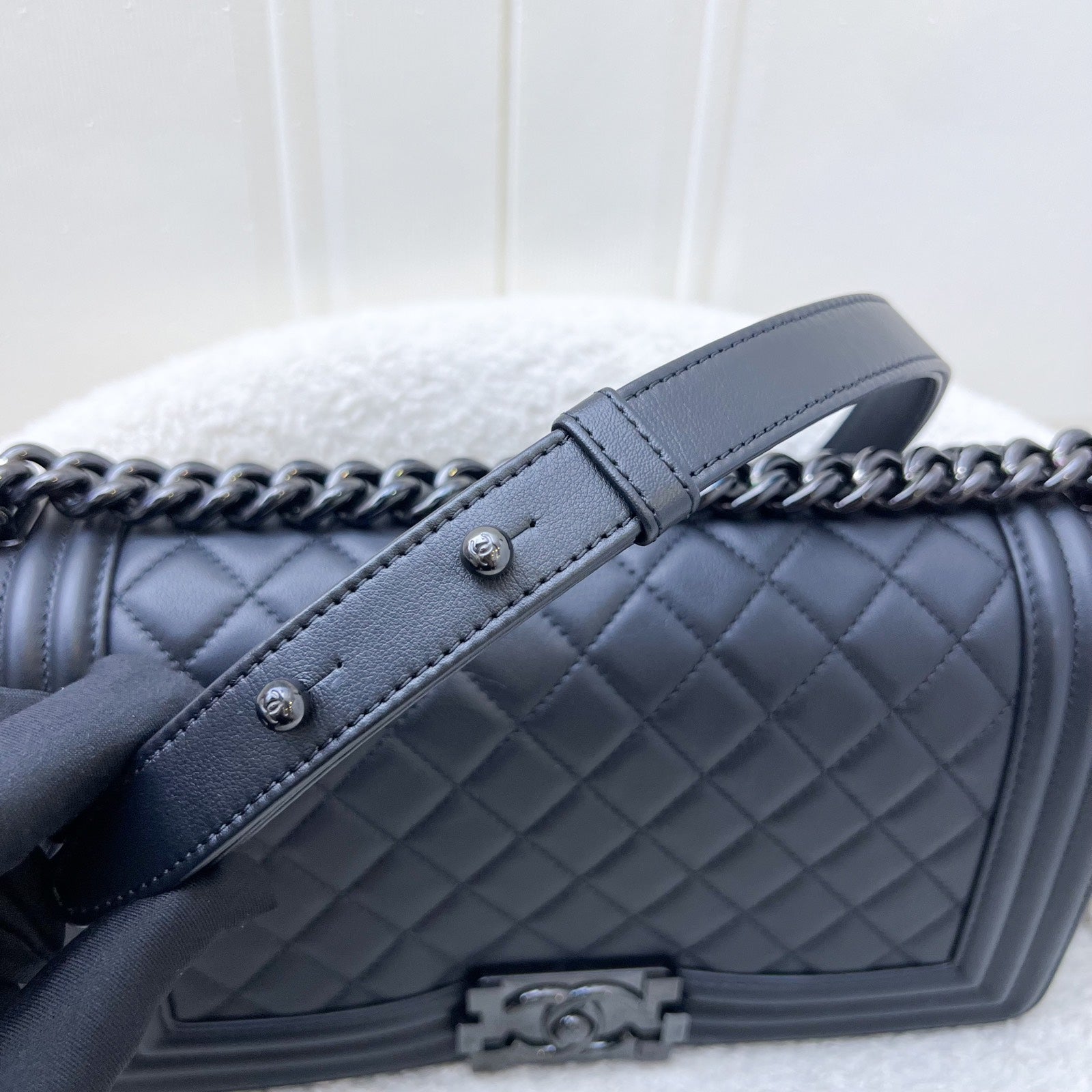 Chanel So Black Medium 25cm Boy Flap in Black Calfskin and Black HW (Model: A67086)