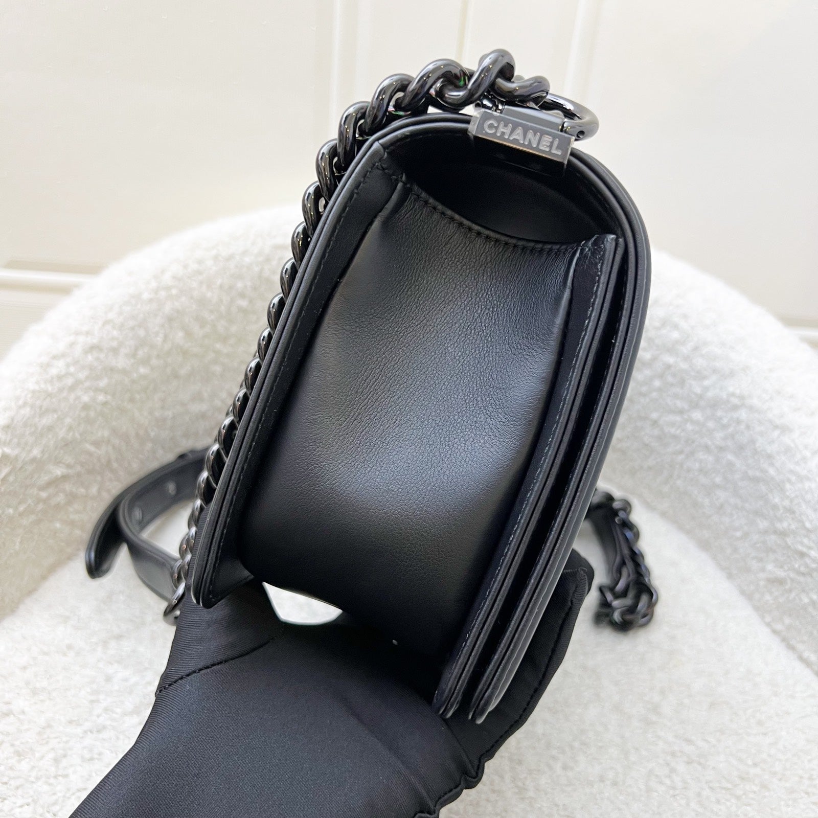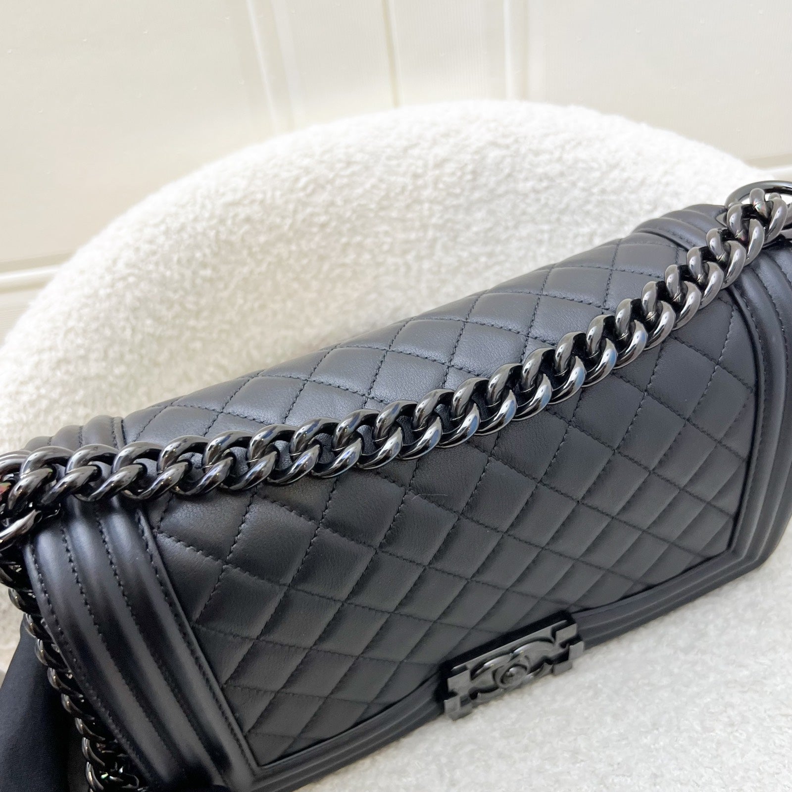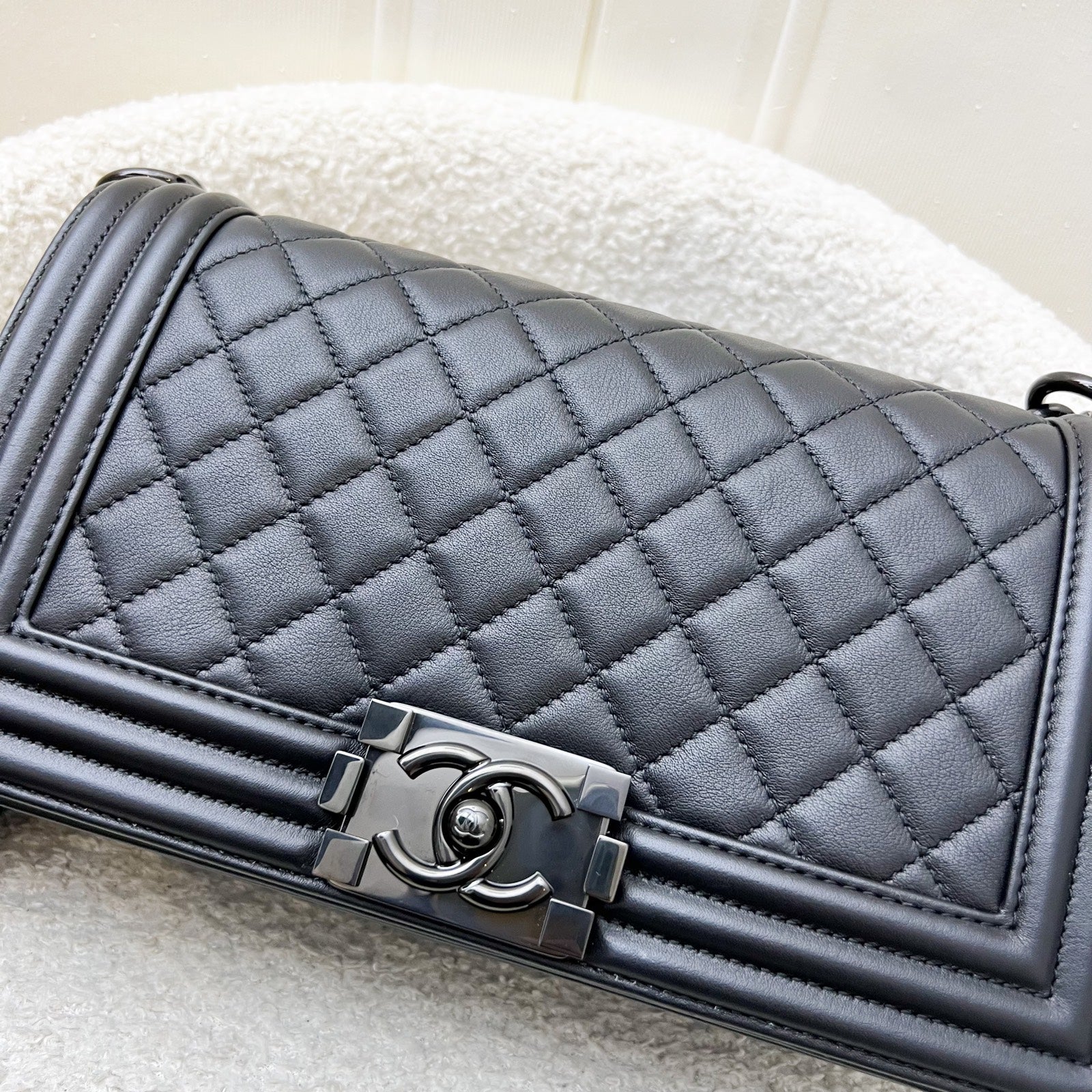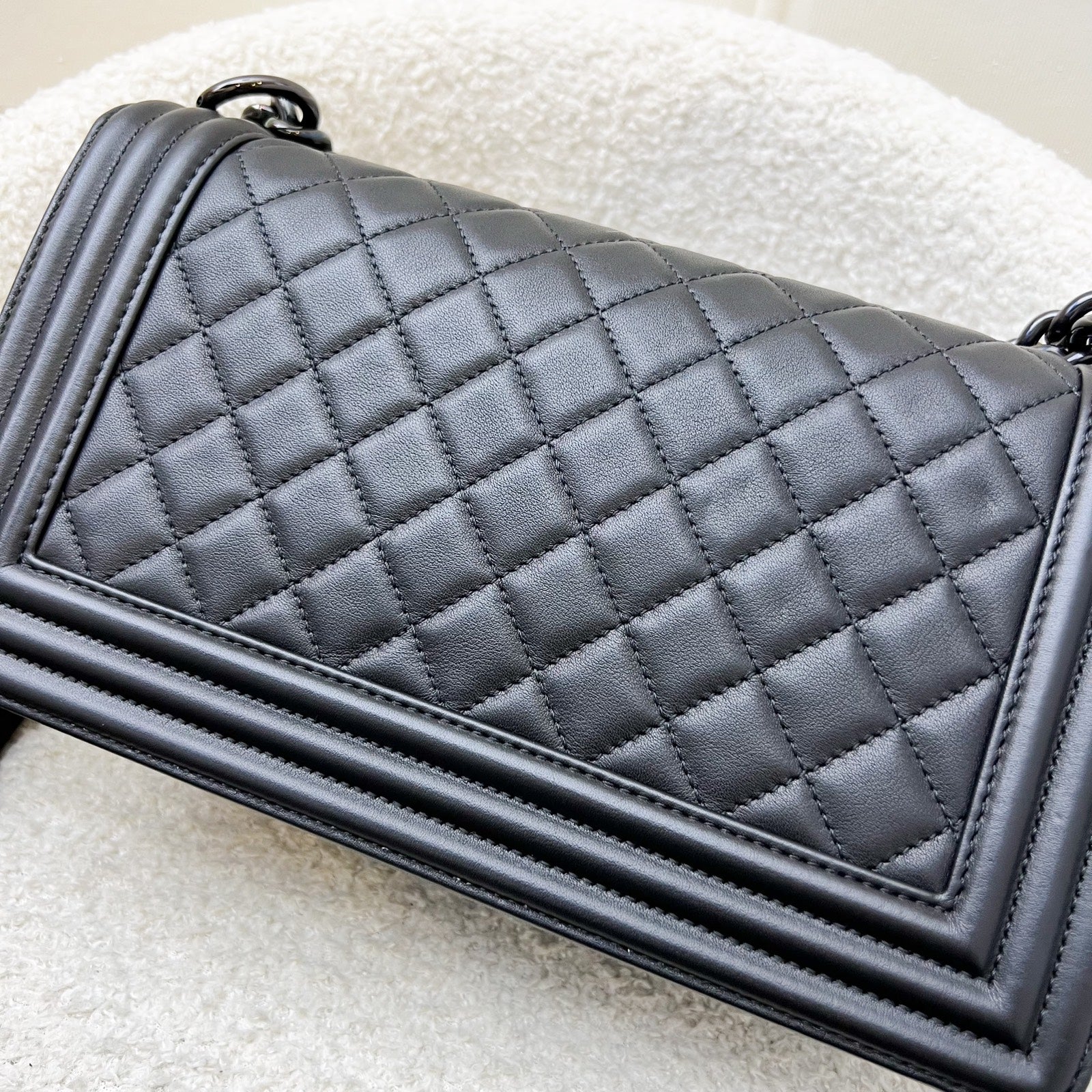 Chanel So Black Medium 25cm Boy Flap in Black Calfskin and Black HW (Model: A67086)