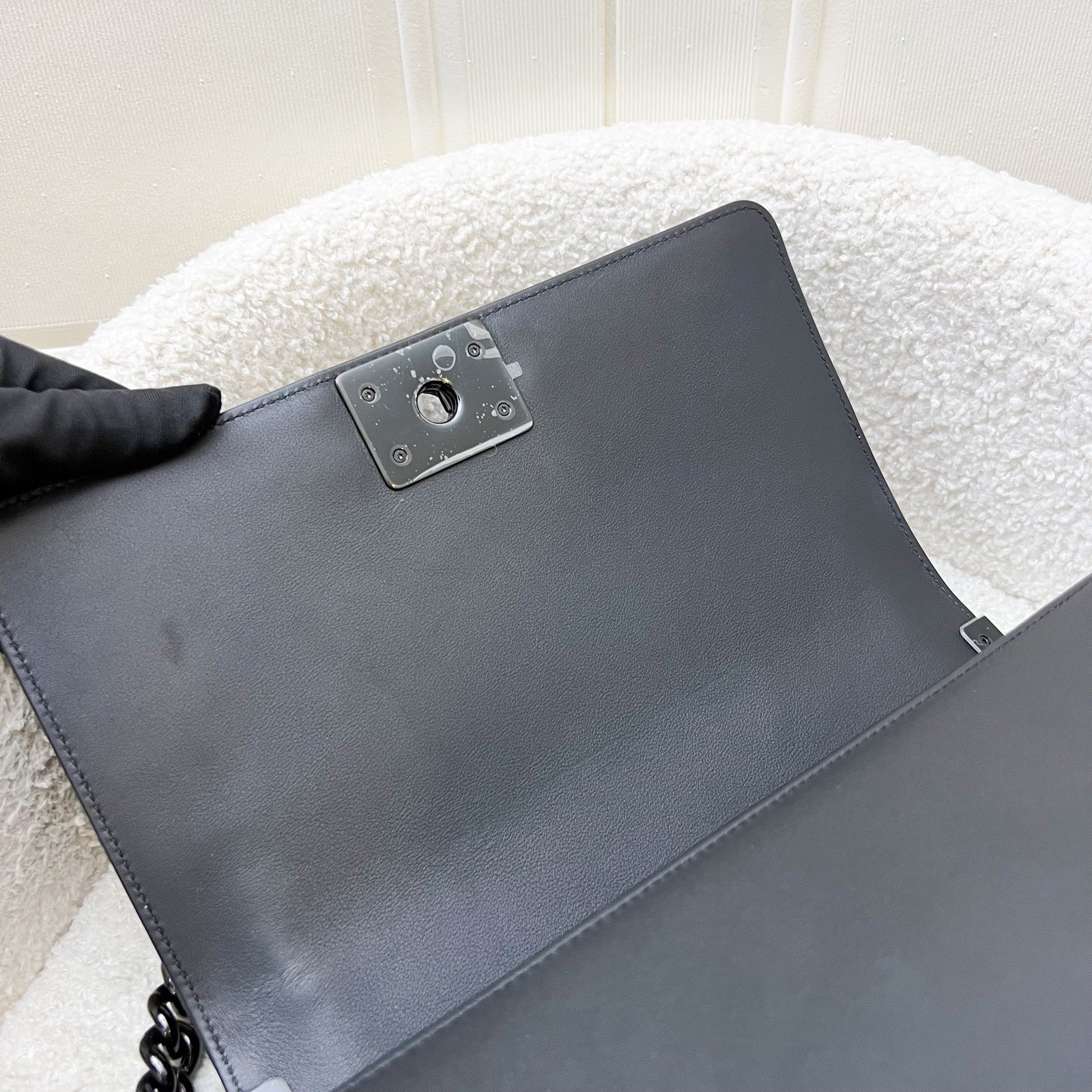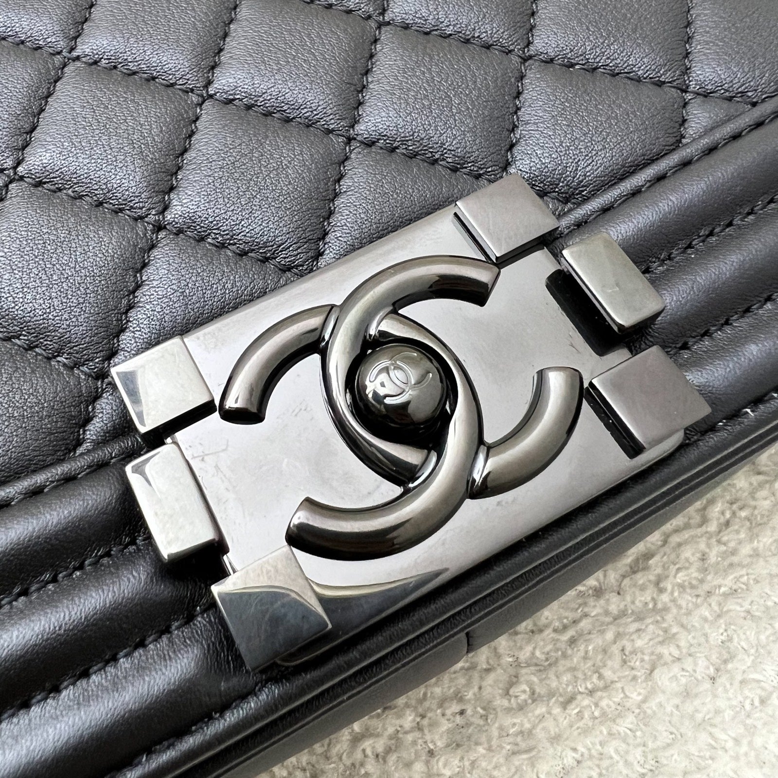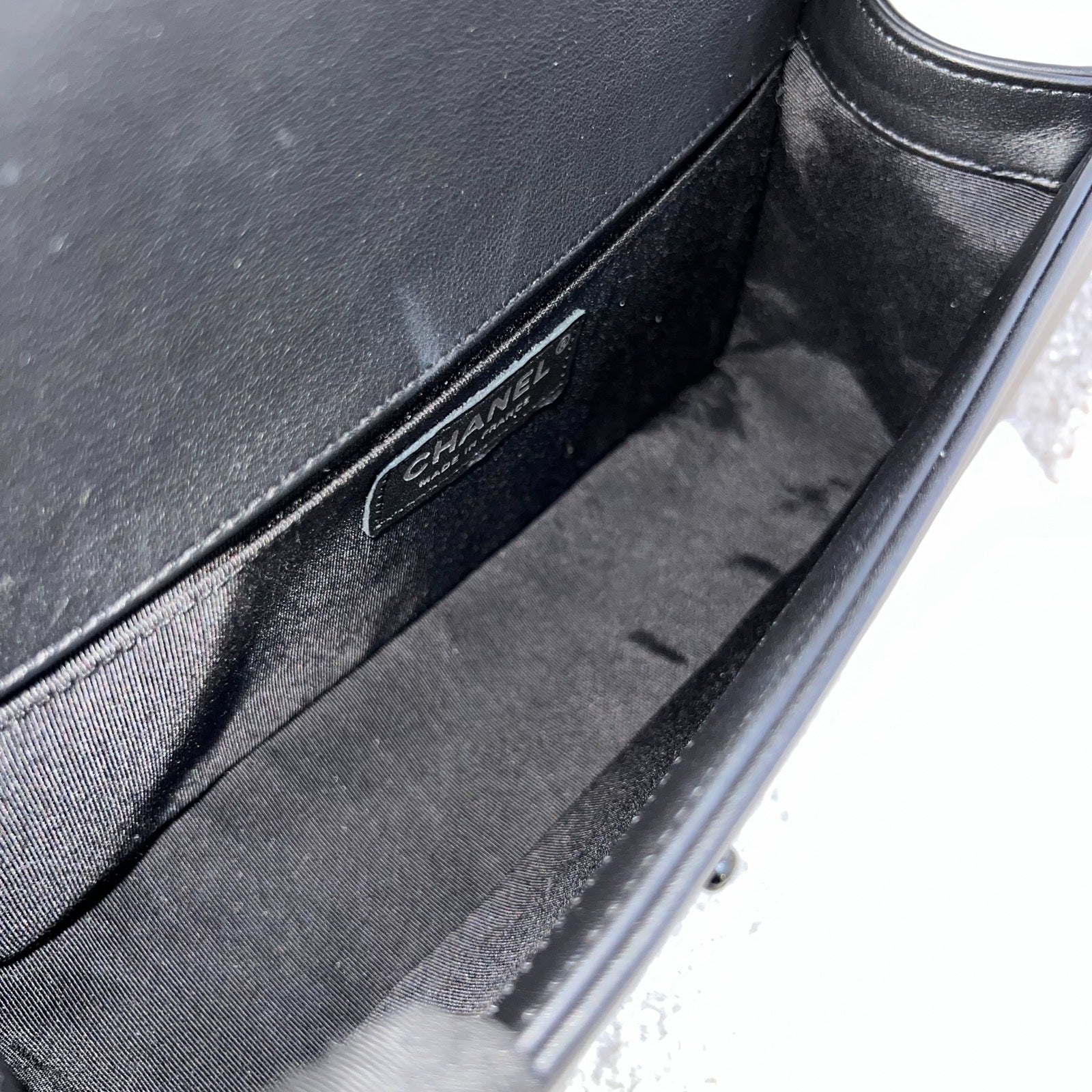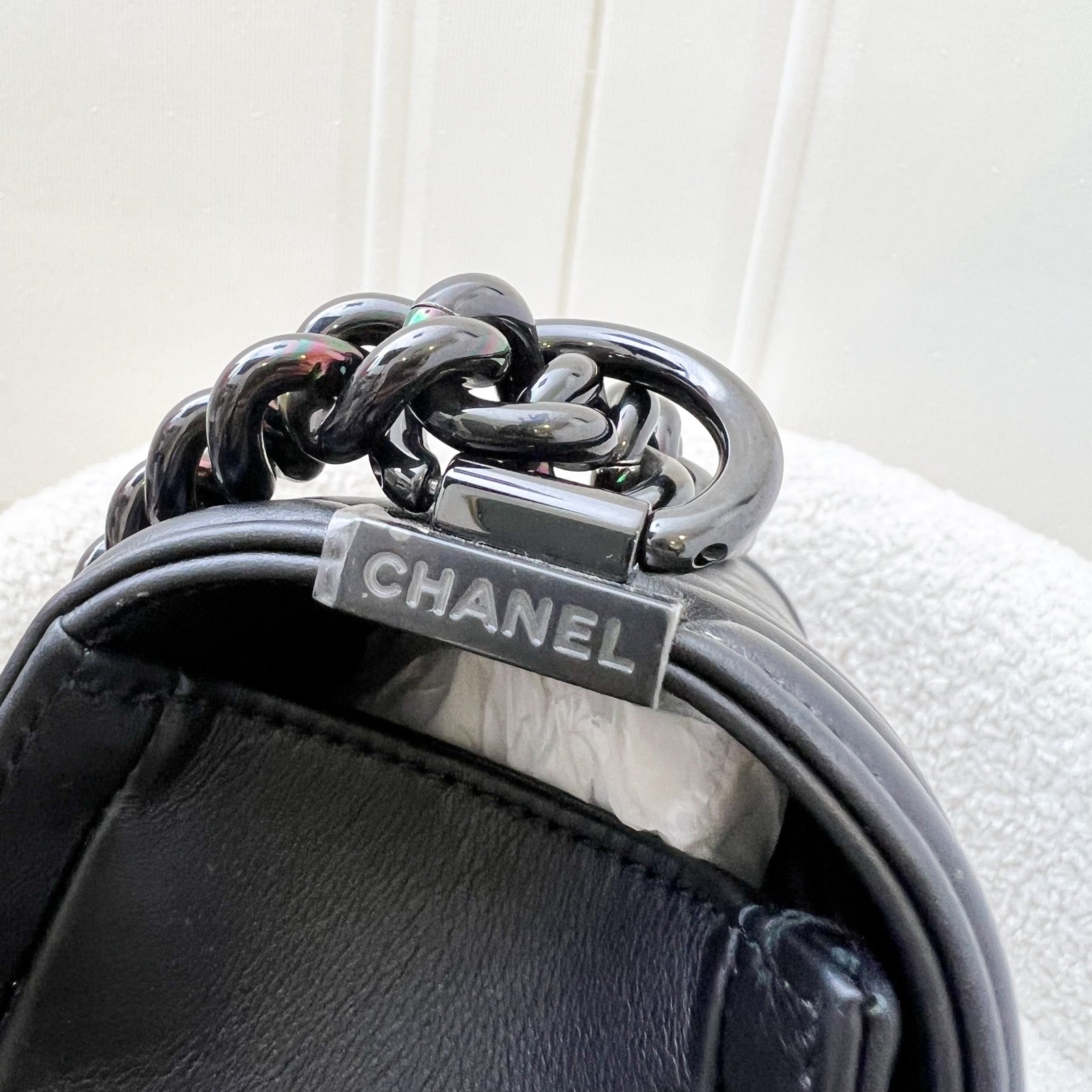 Chanel So Black Medium 25cm Boy Flap in Black Calfskin and Black HW (Model: A67086)