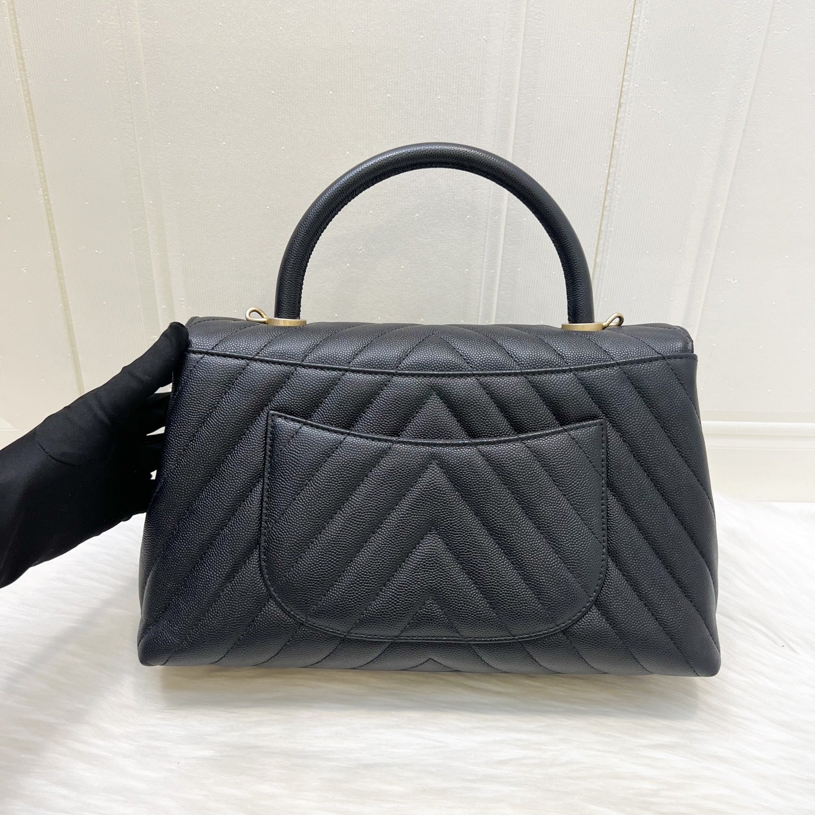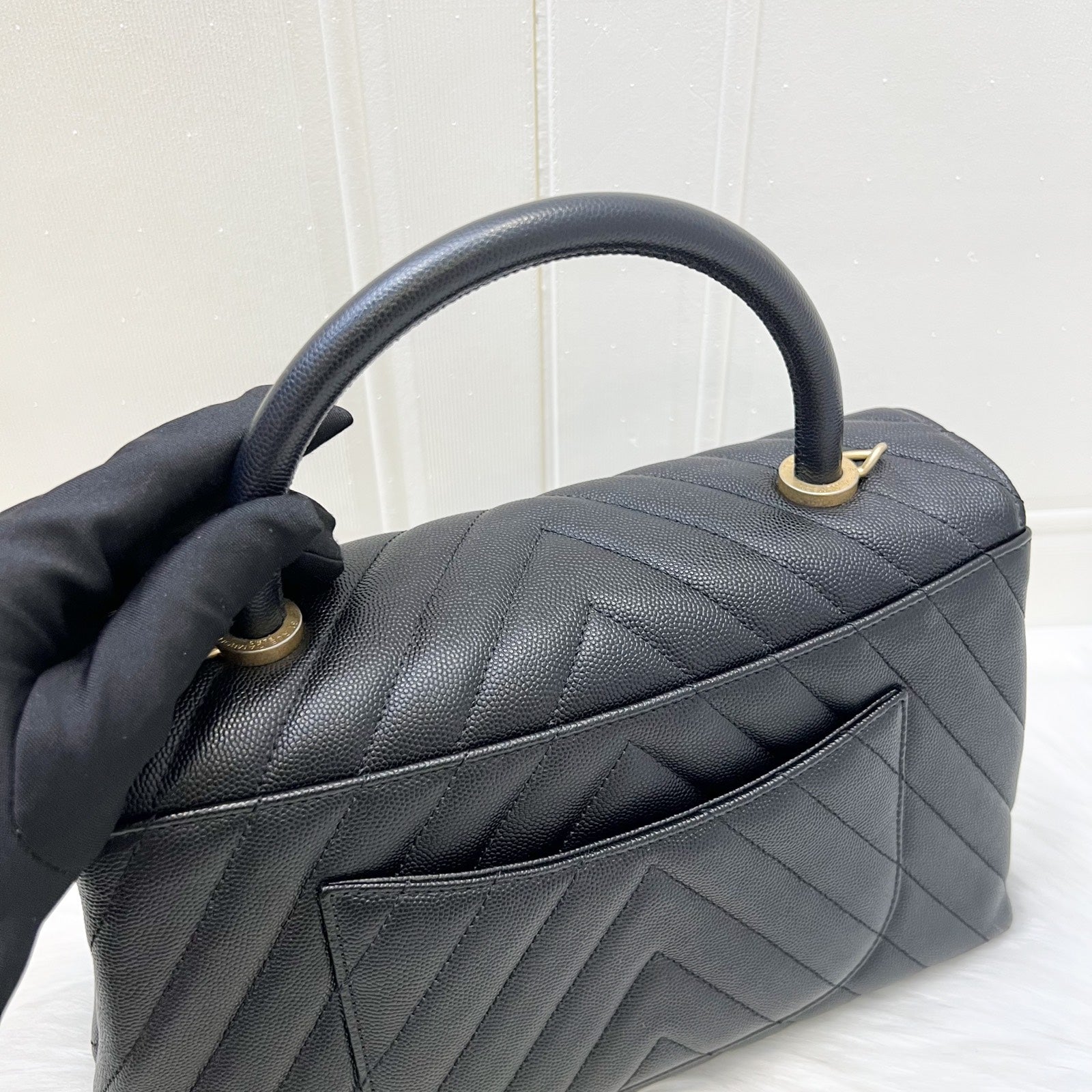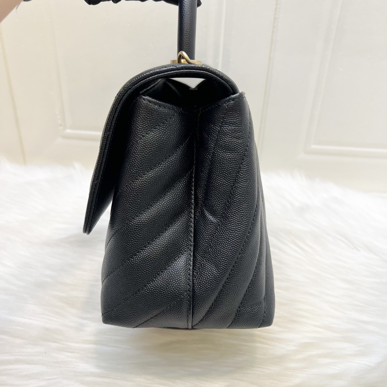 Chanel Medium 29cm Coco Handle Flap in Chevron Quilted Black Caviar and GHW (Model: A92991)