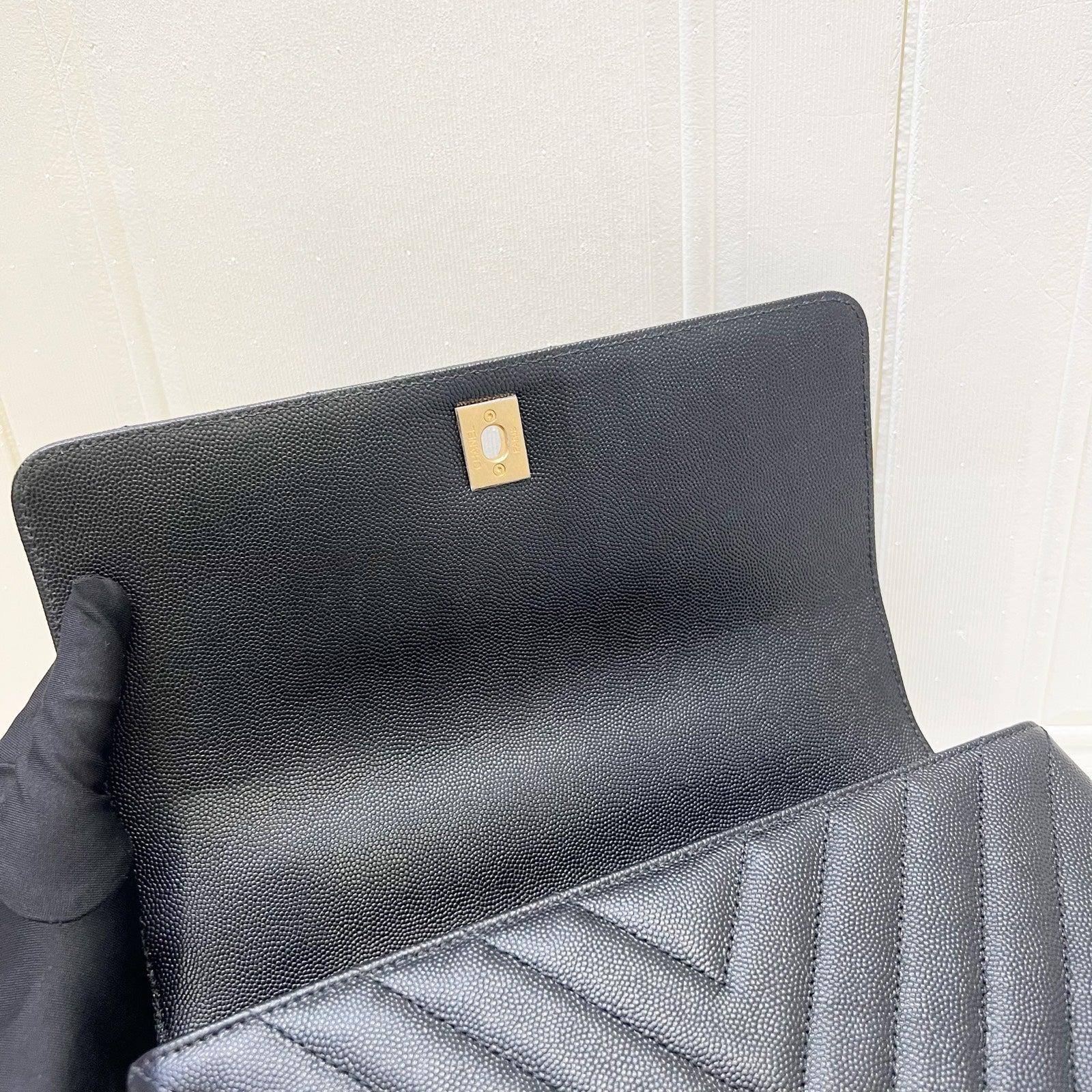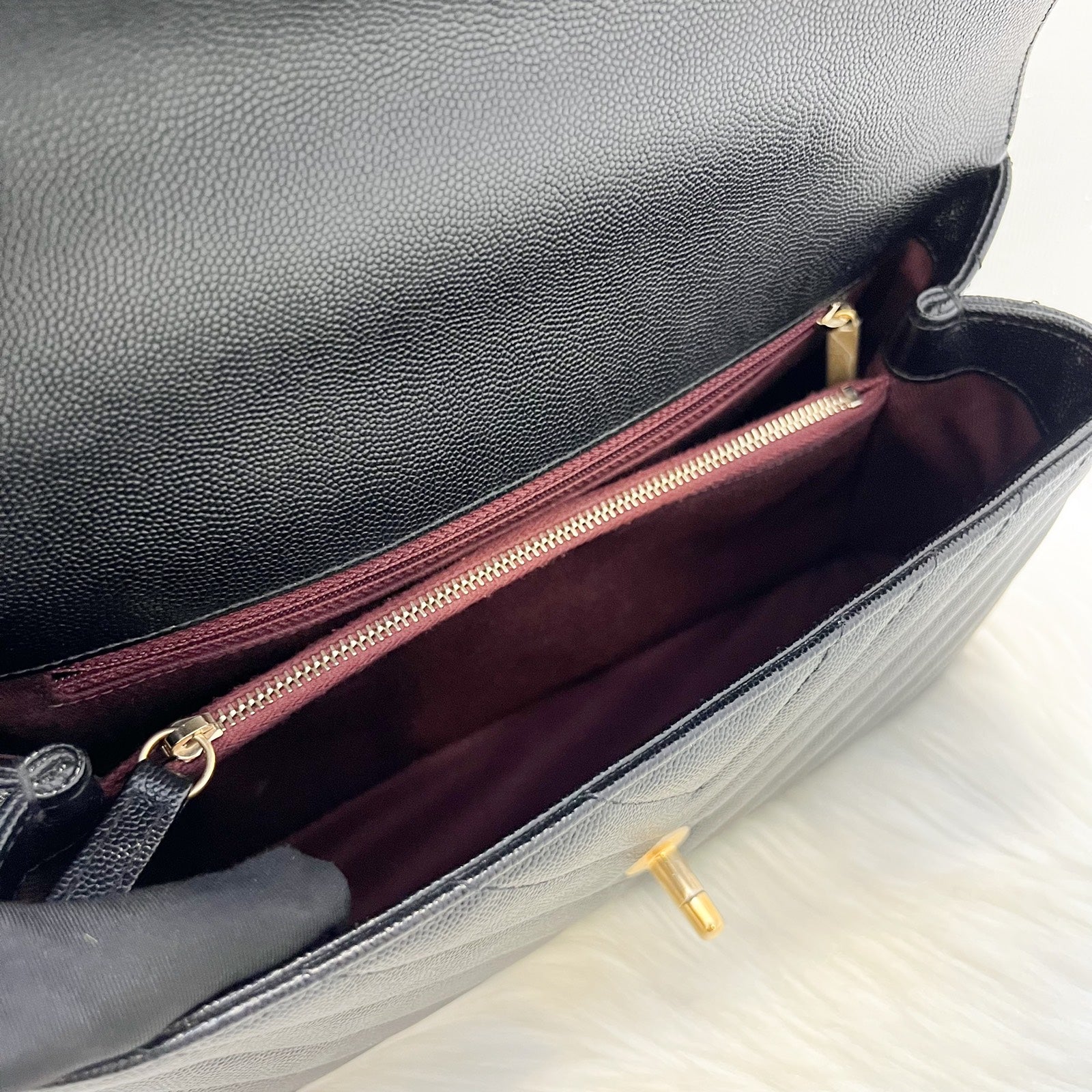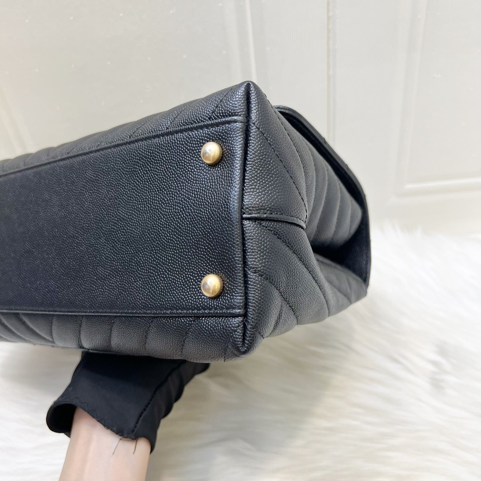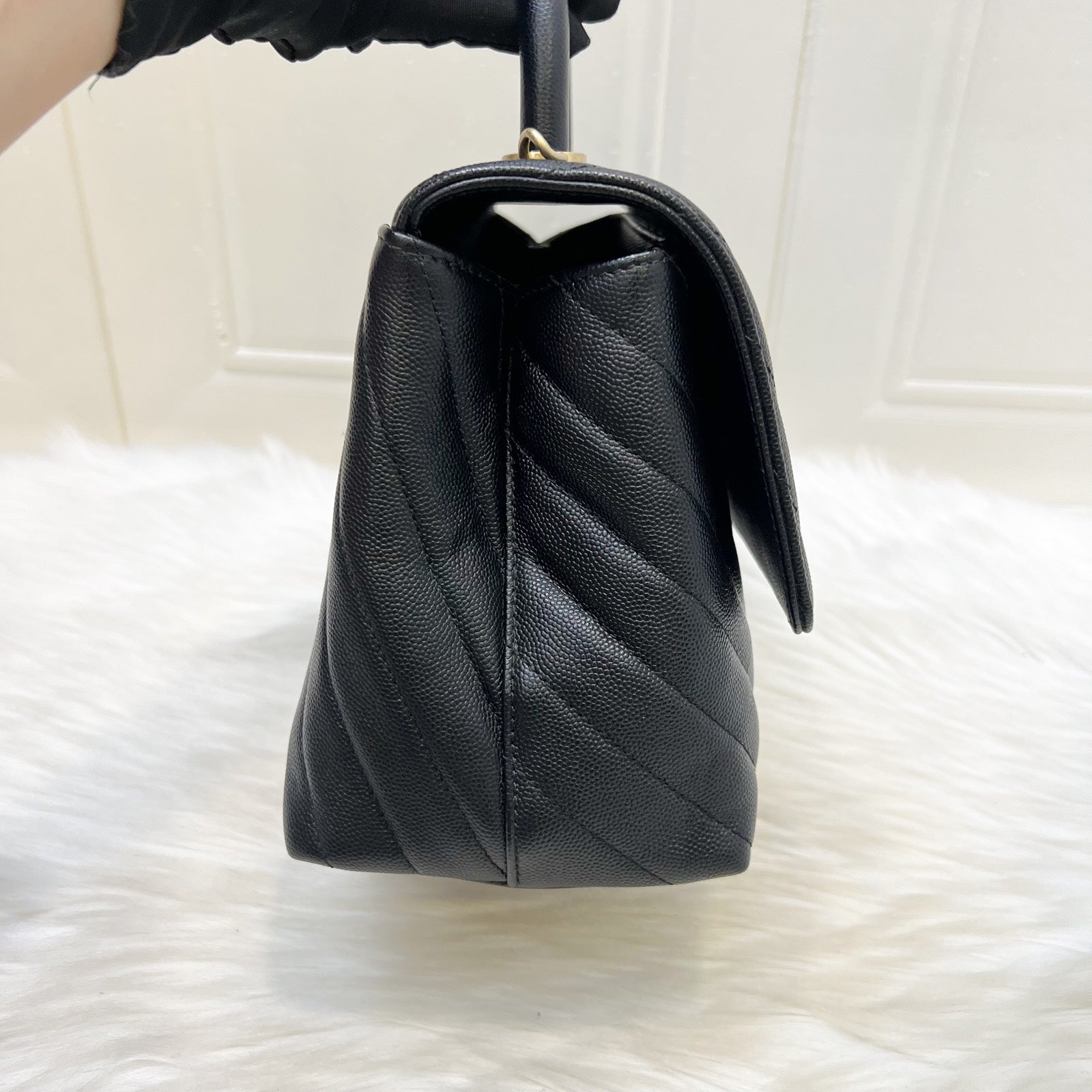 Chanel Medium 29cm Coco Handle Flap in Chevron Quilted Black Caviar and GHW (Model: A92991)