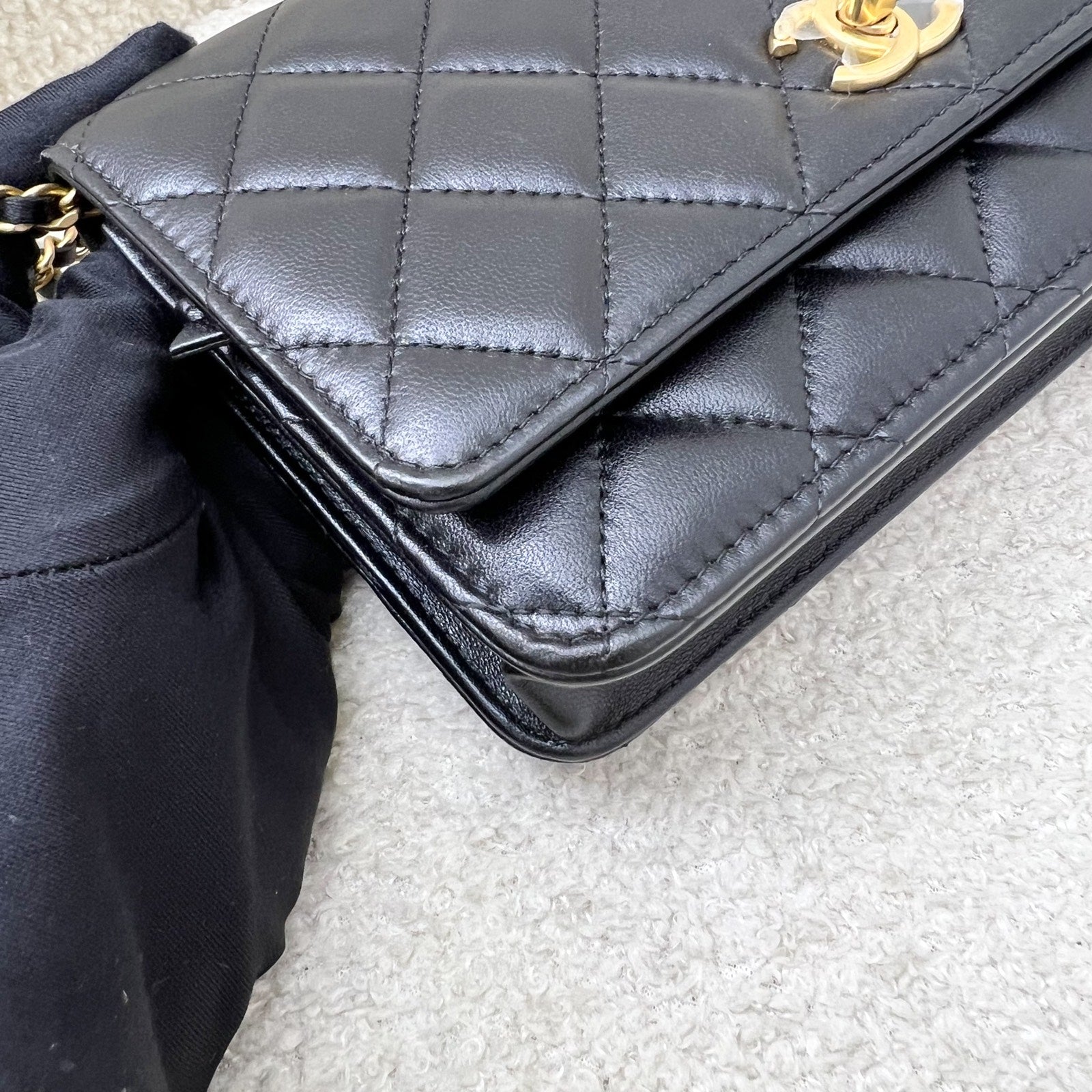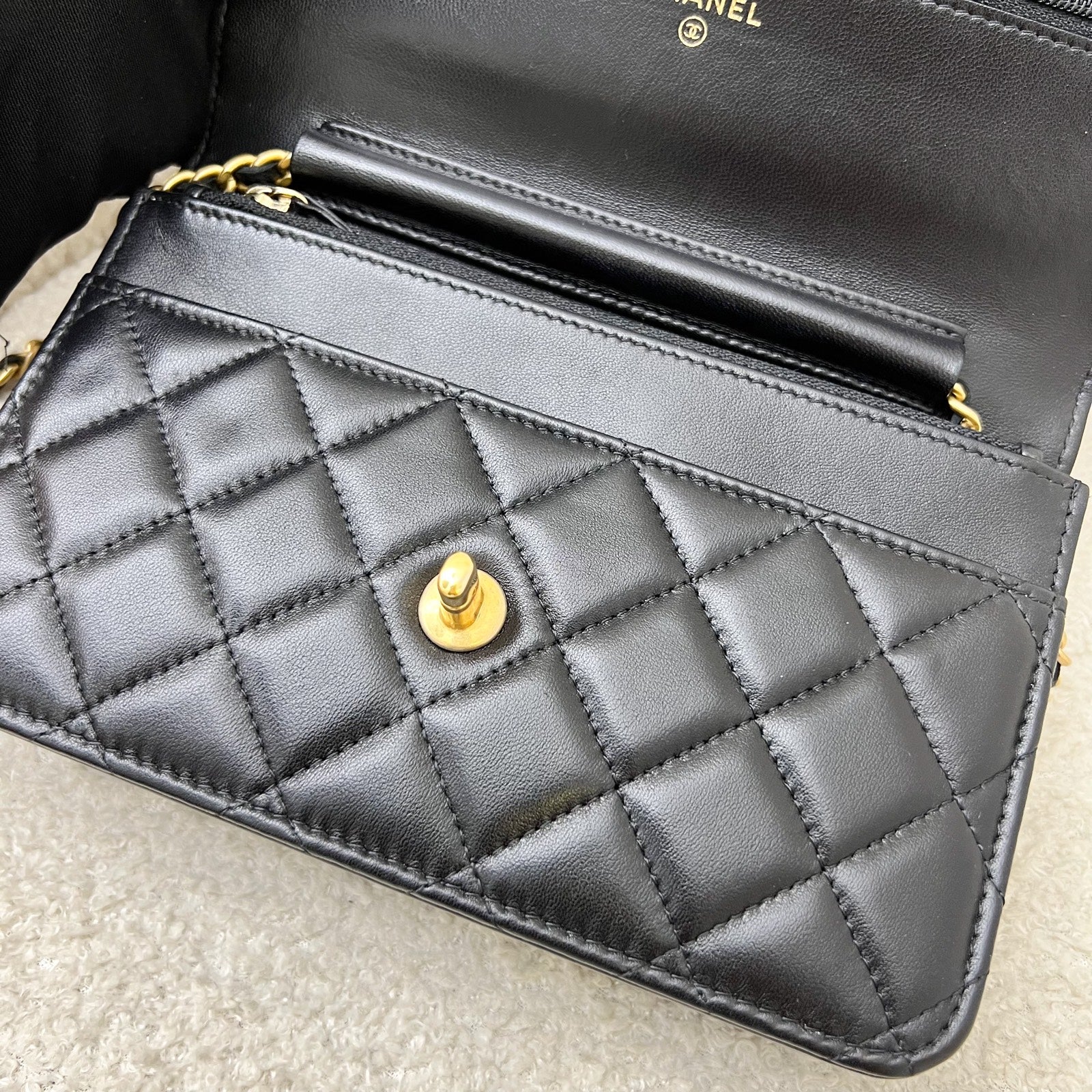 Chanel Pearl Crush Wallet on Chain WOC in Black Lambskin and AGHW (Model: AP1450)