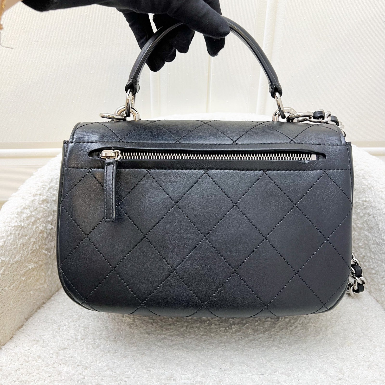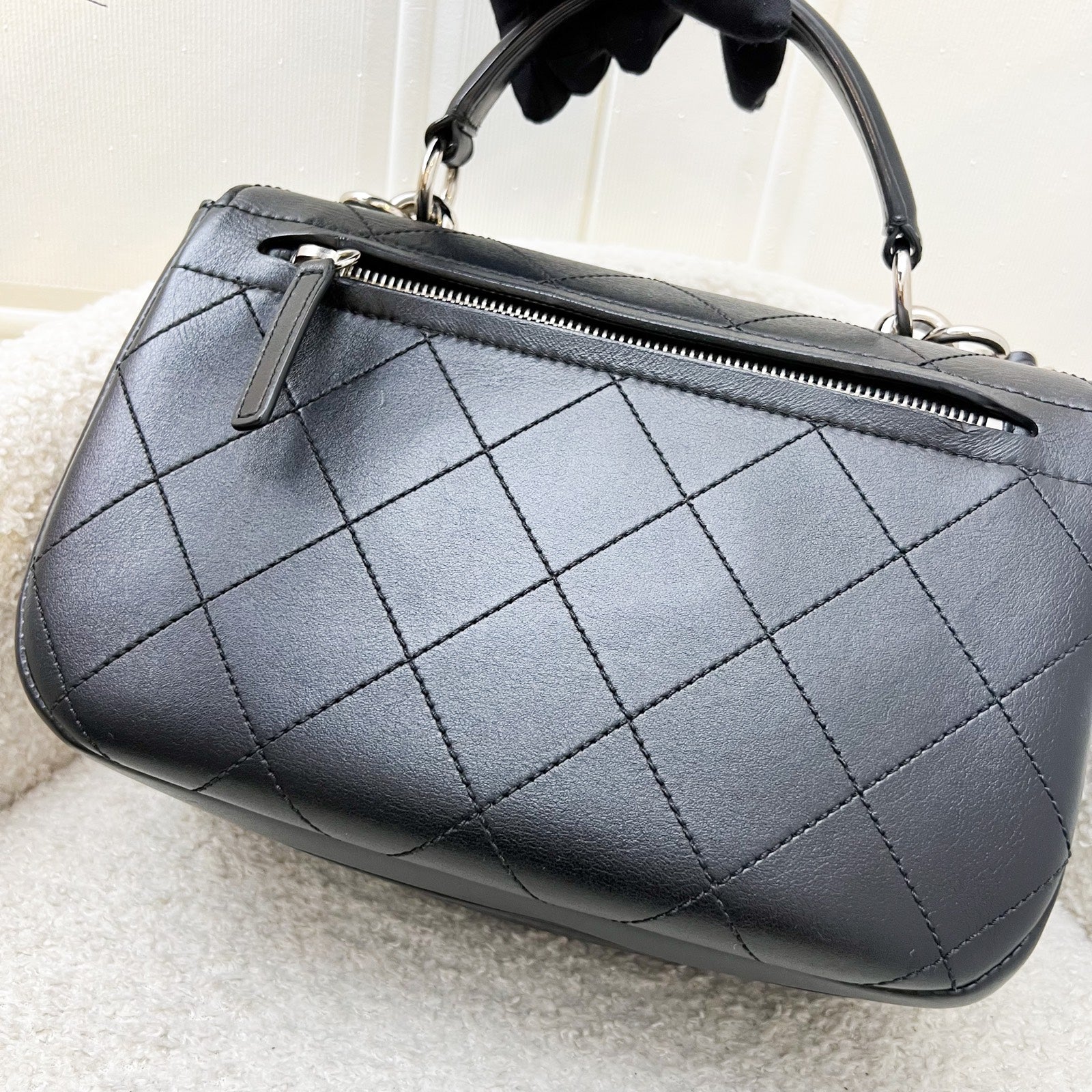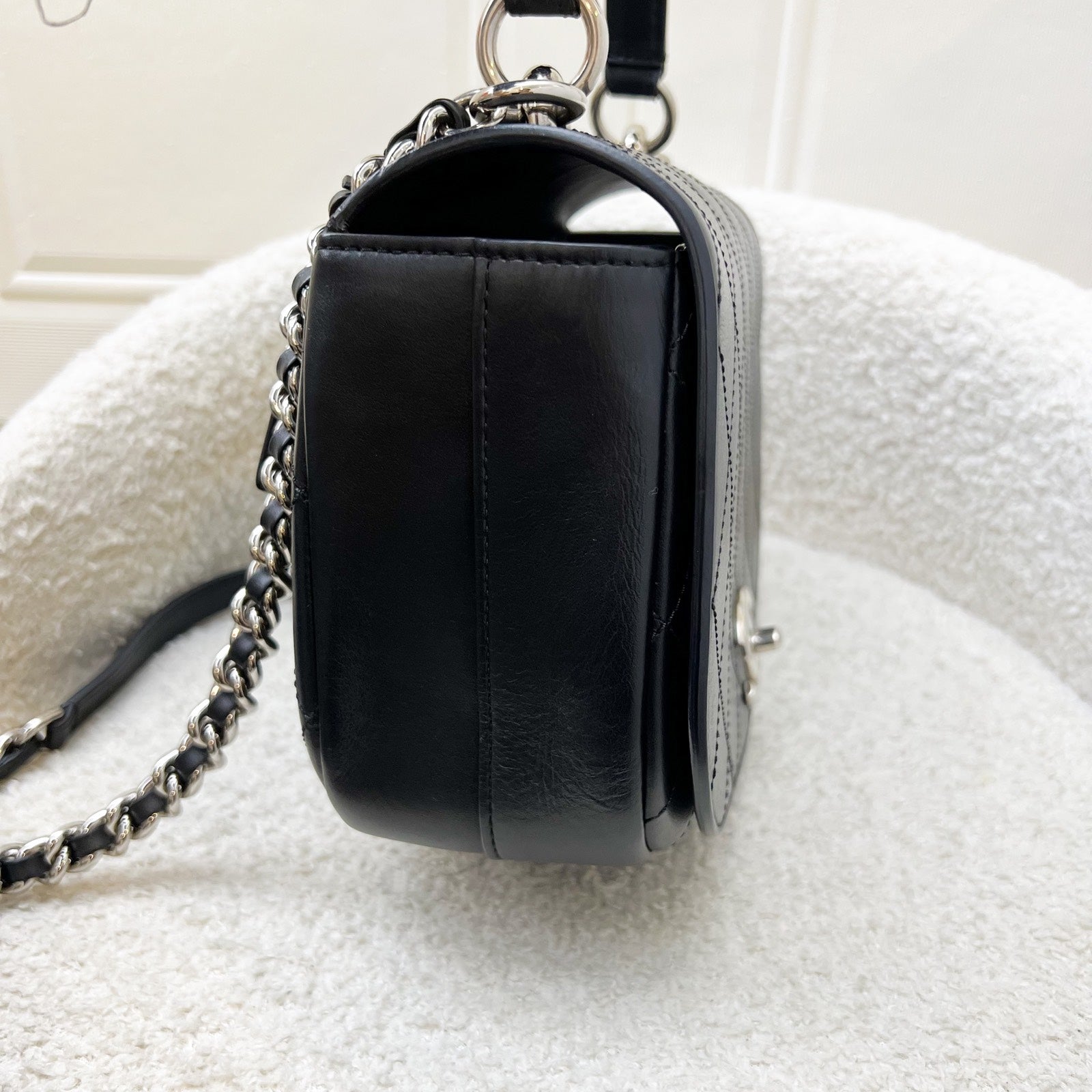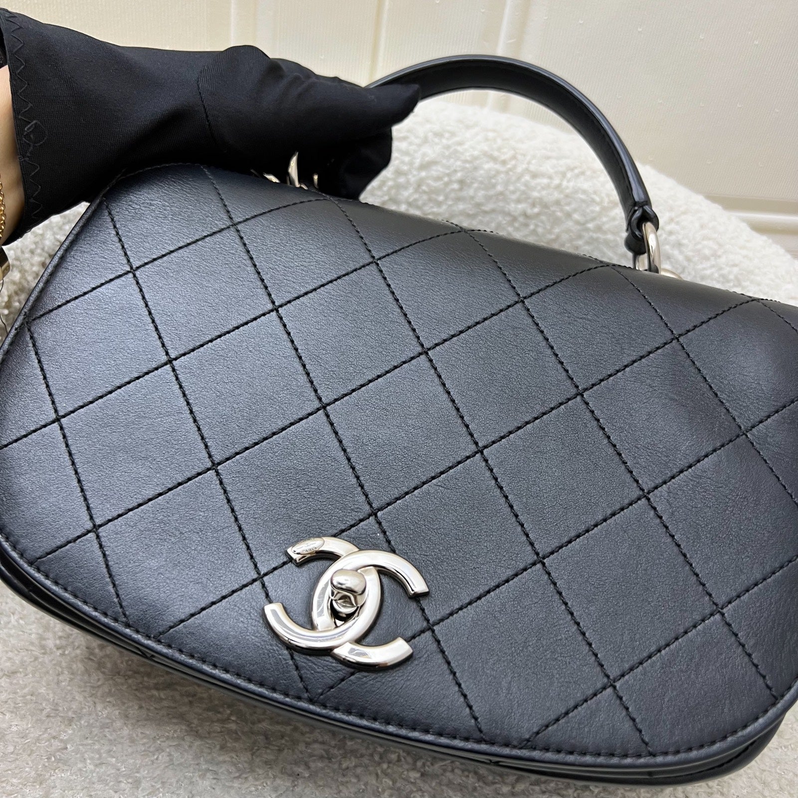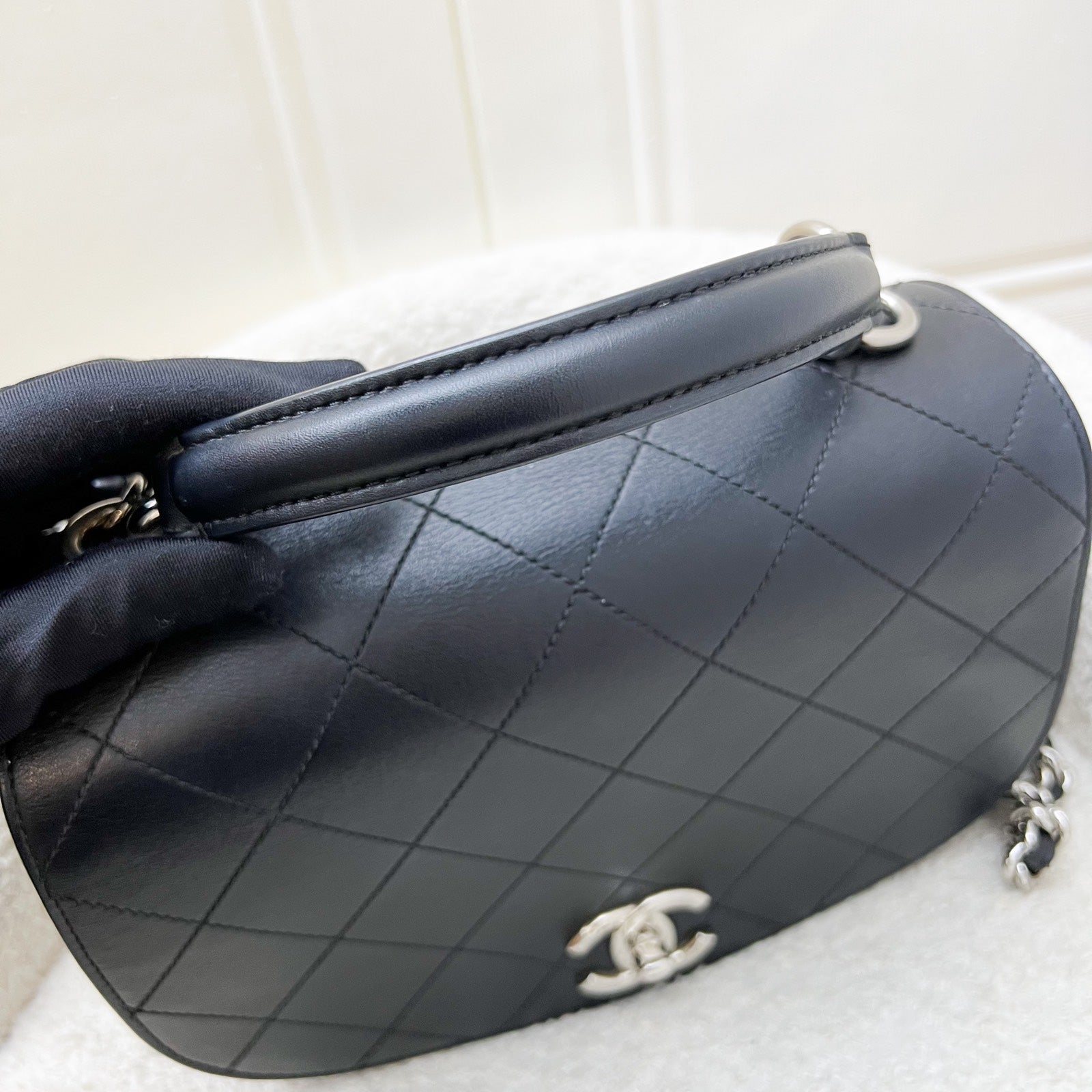 Chanel Seasonal Medium Top Handle Full Flap Bag with Chain Strap in Black Calfskin and SHW