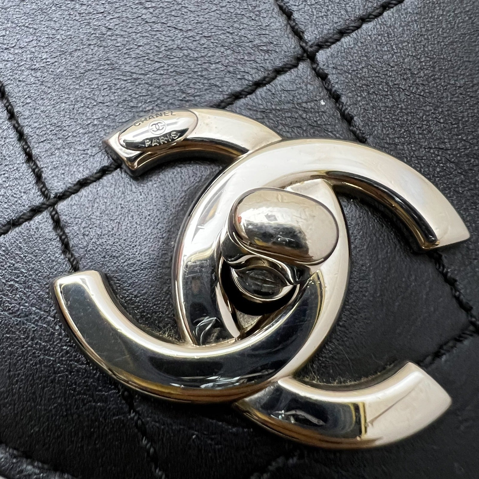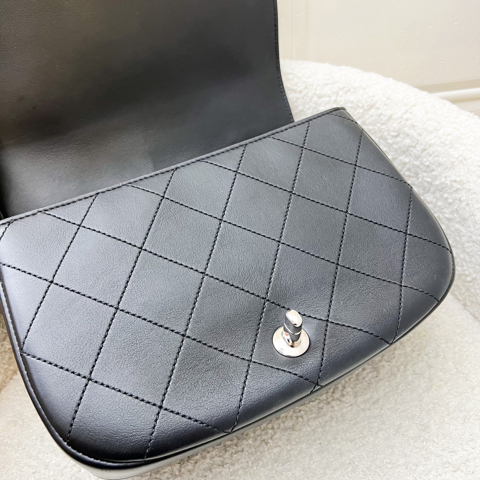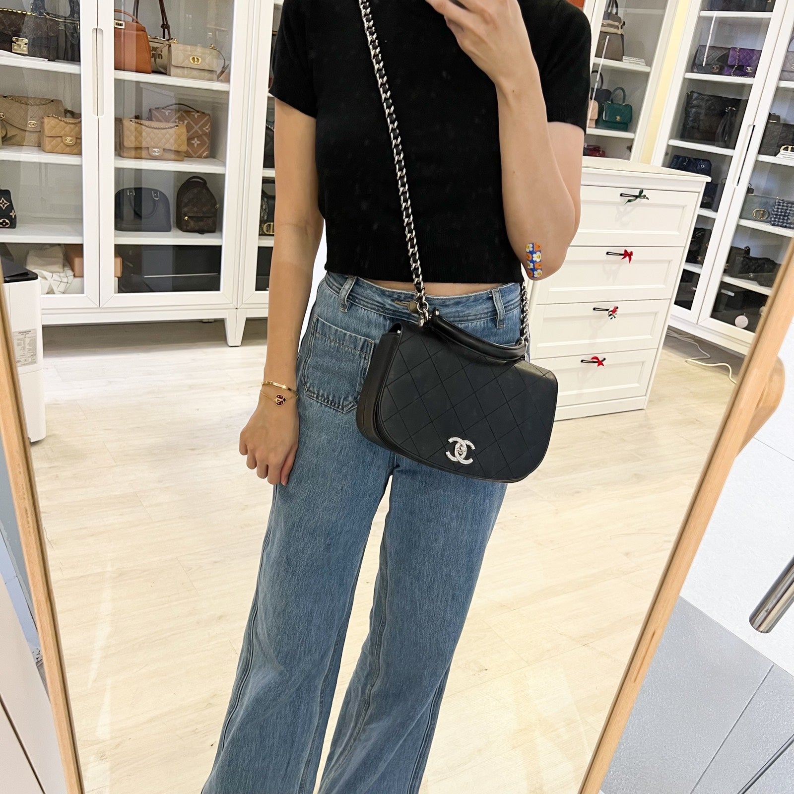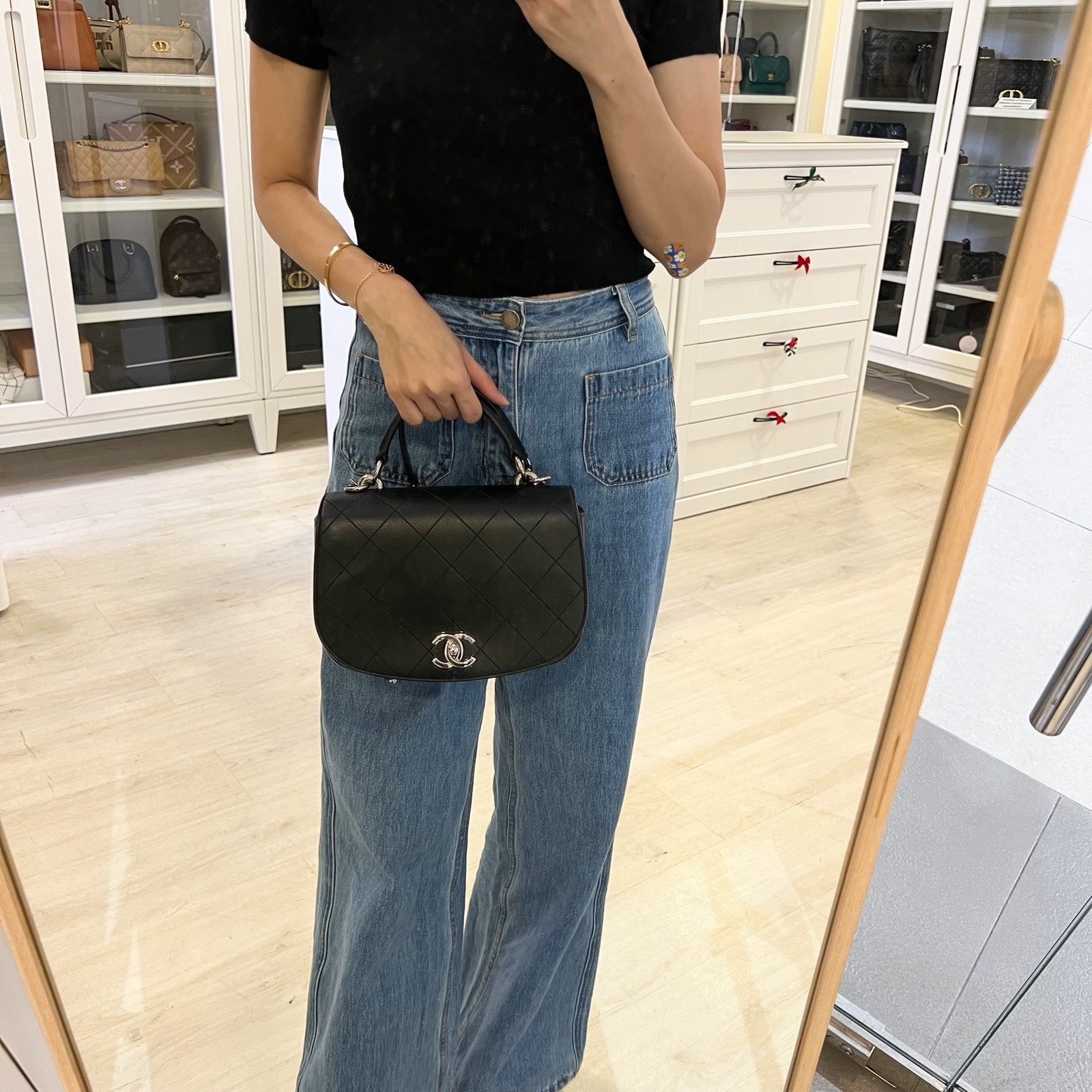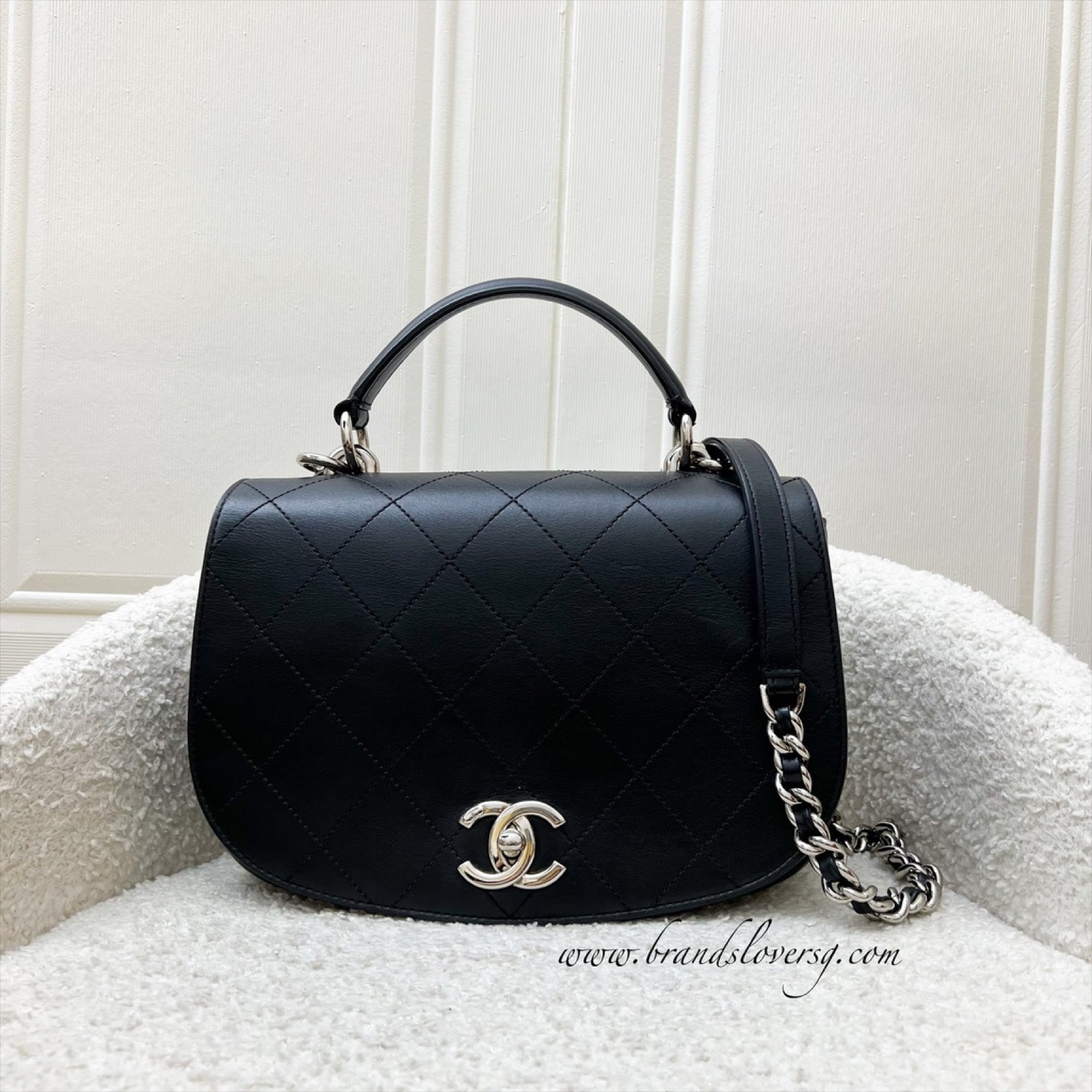 Chanel Seasonal Medium Top Handle Full Flap Bag with Chain Strap in Black Calfskin and SHW