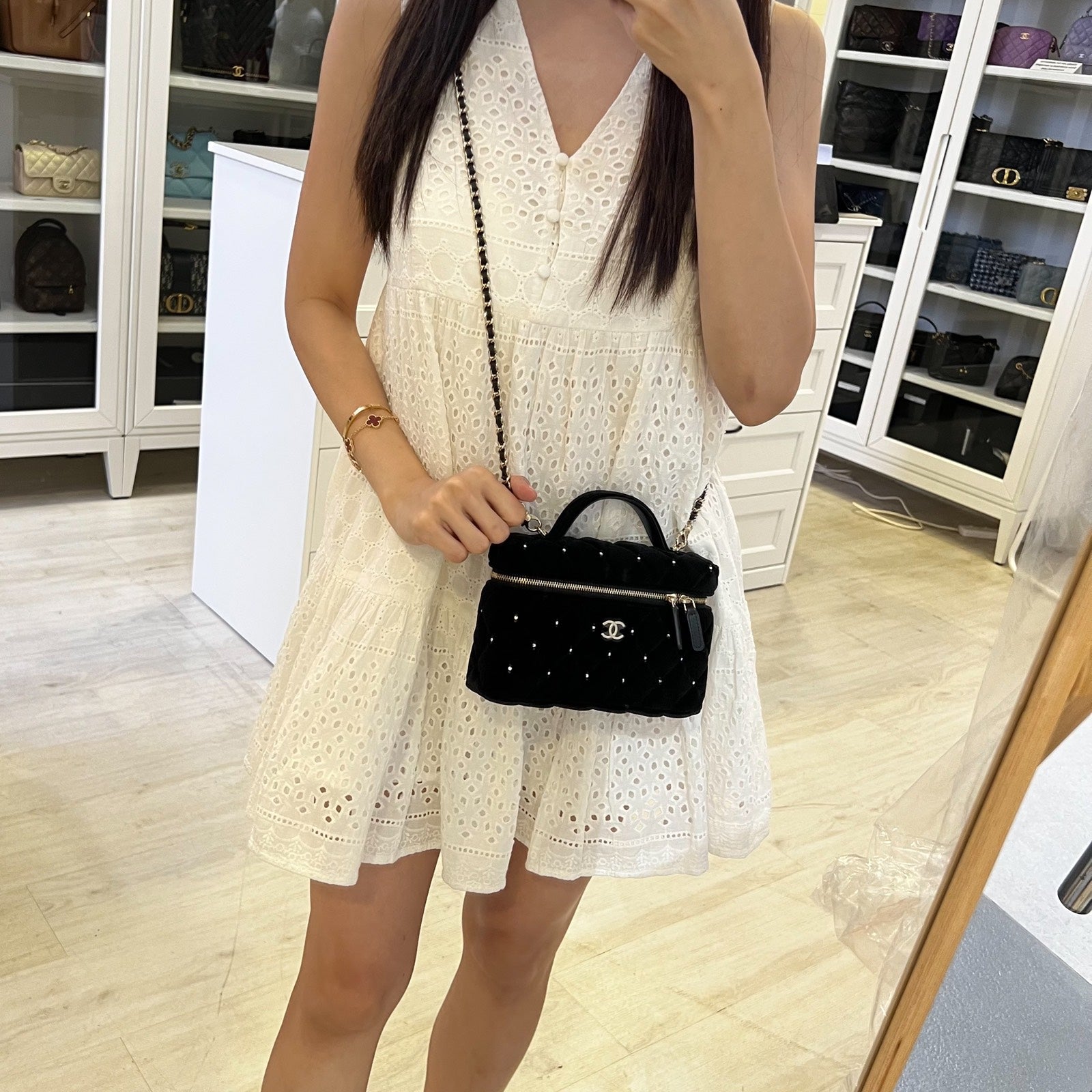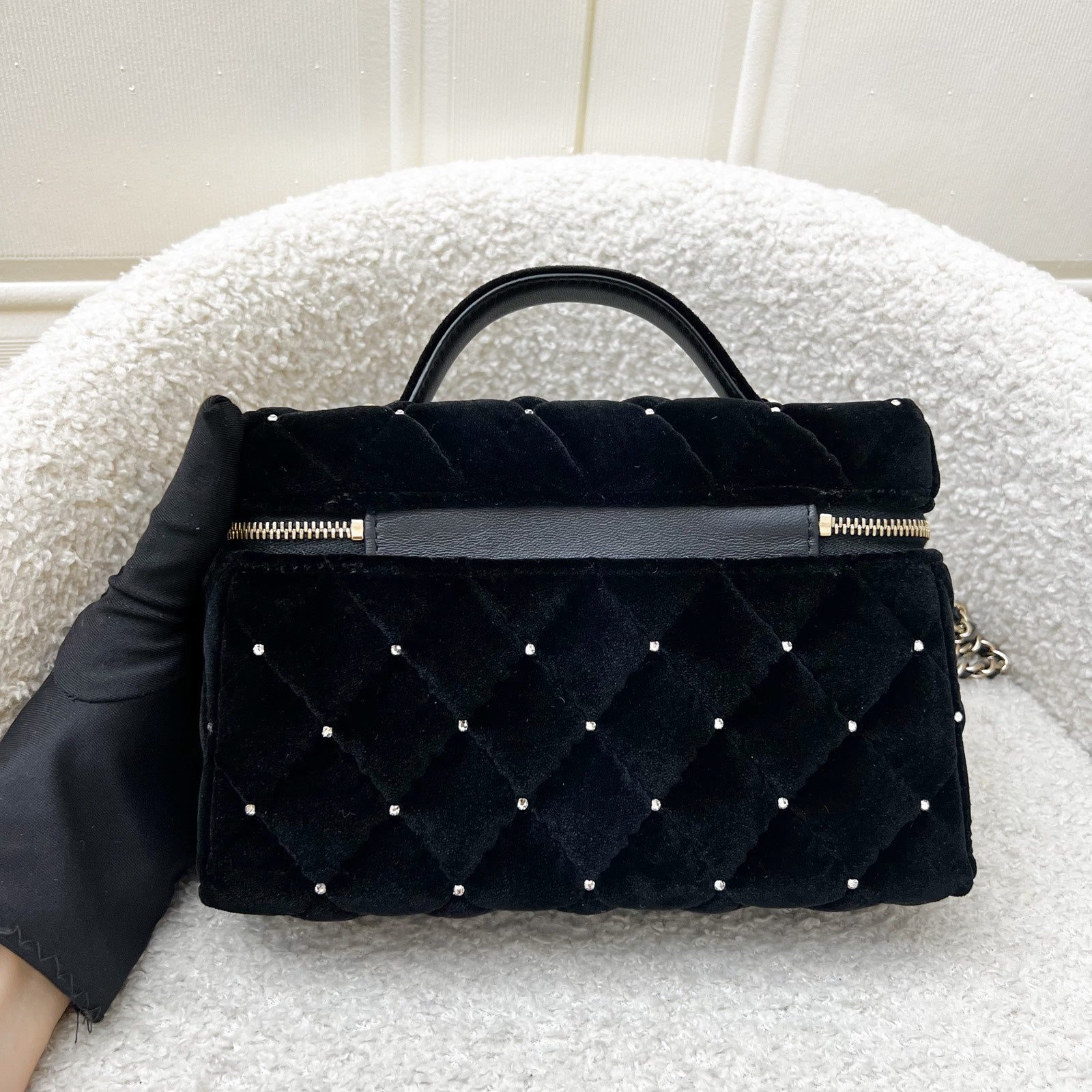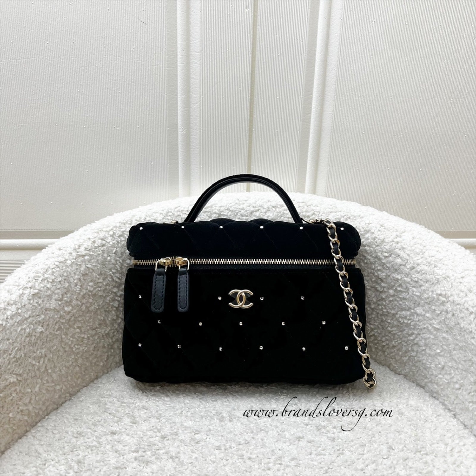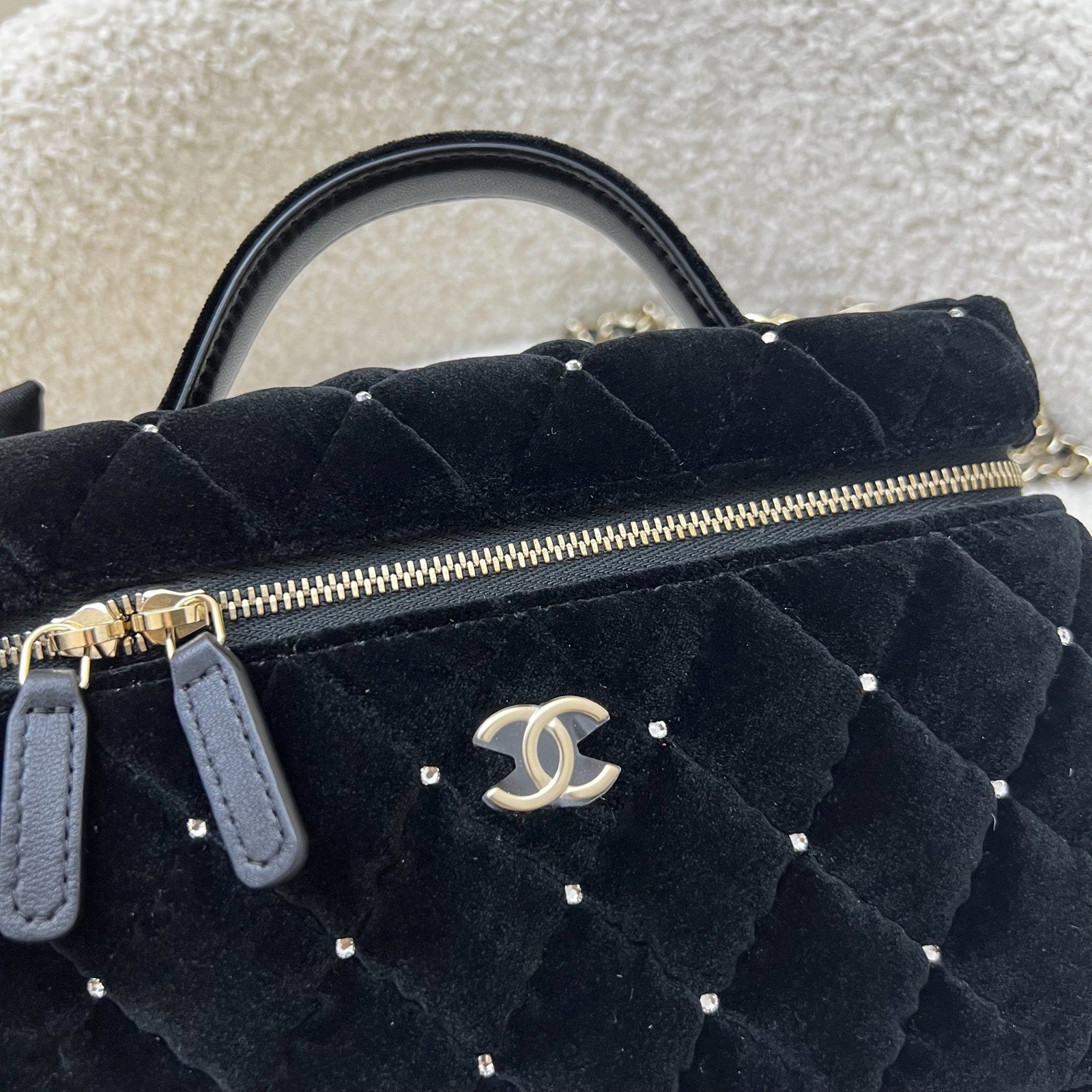 One of the hottest designs of 2025 / 2026 and this newest piece is gorgeous velvet and diamantes! Super glam and hard to get in boutiques worldwide. Gorgeous bag in popular Loro Piana style. Fits all phones (even Iphone Pro Max). This model comes with detachable chain. Grab this before it flies off!