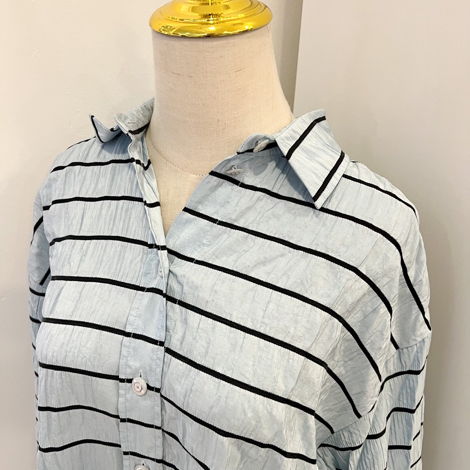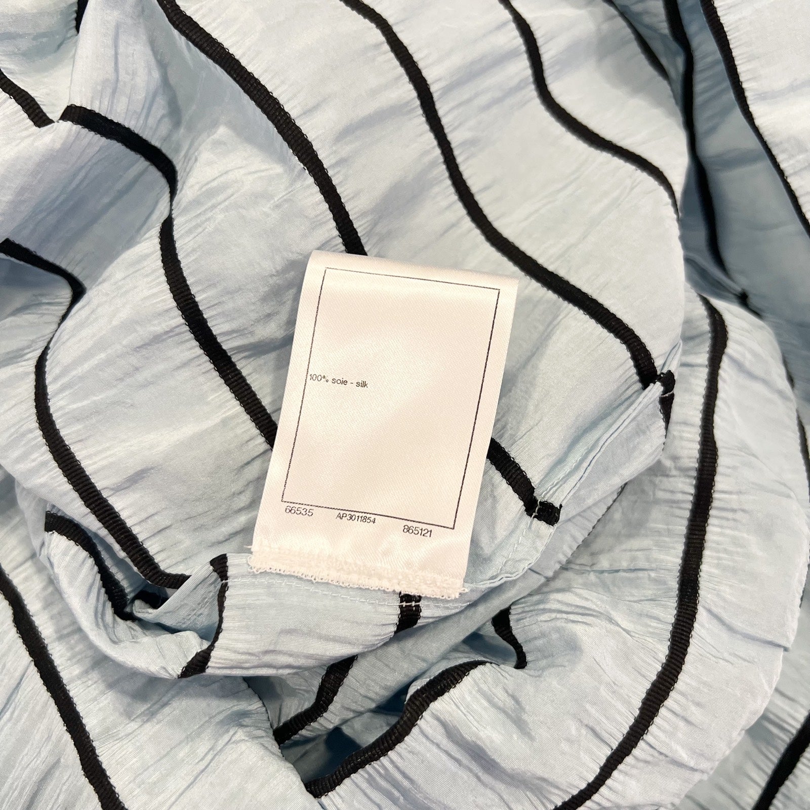 Chanel 25S Long Sleeved Shirt in Blue with Black Stripes 100% Silk (Model: P79458)