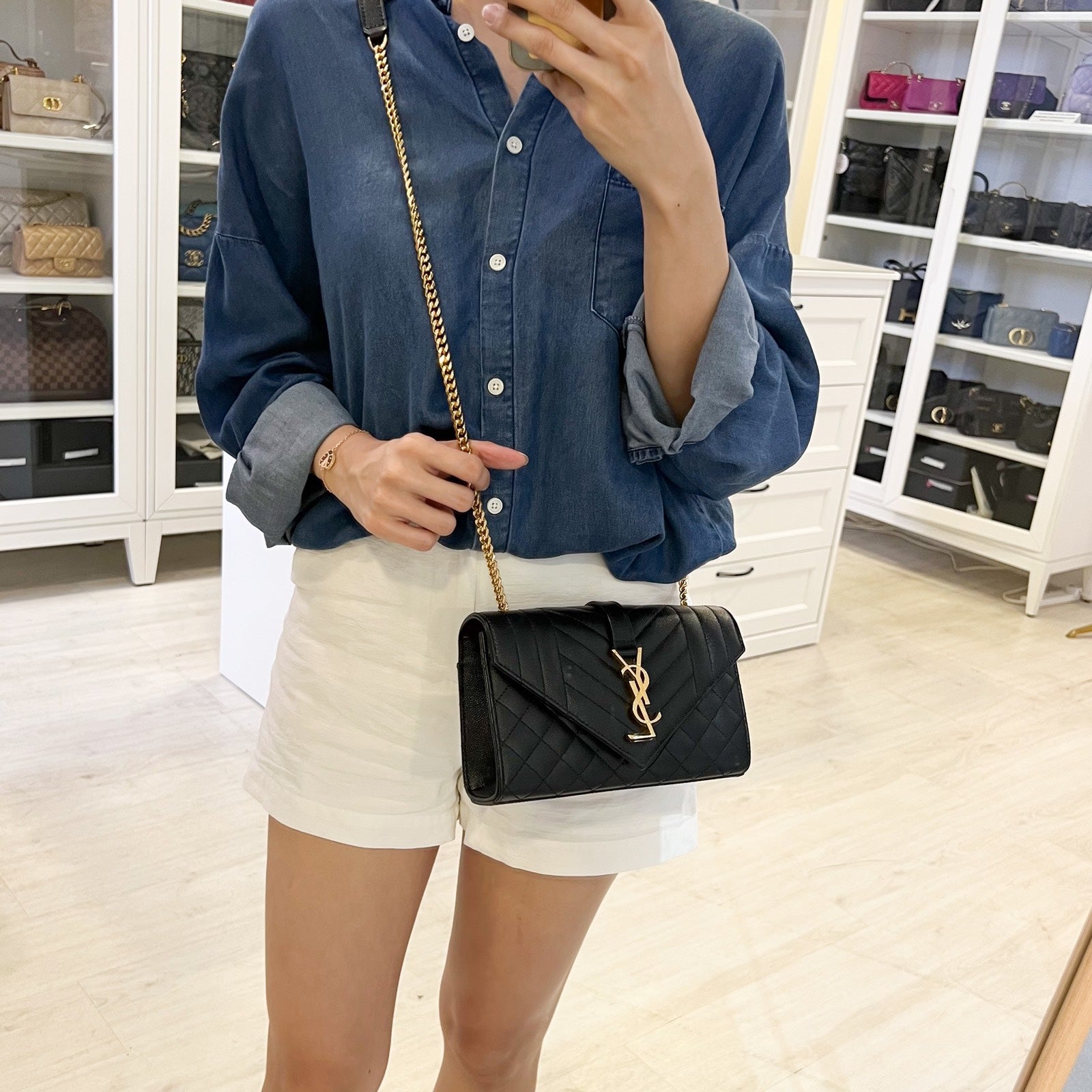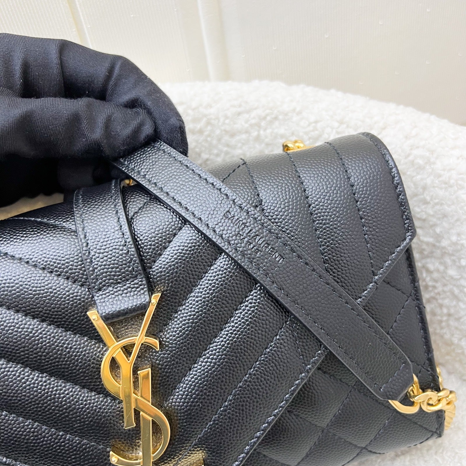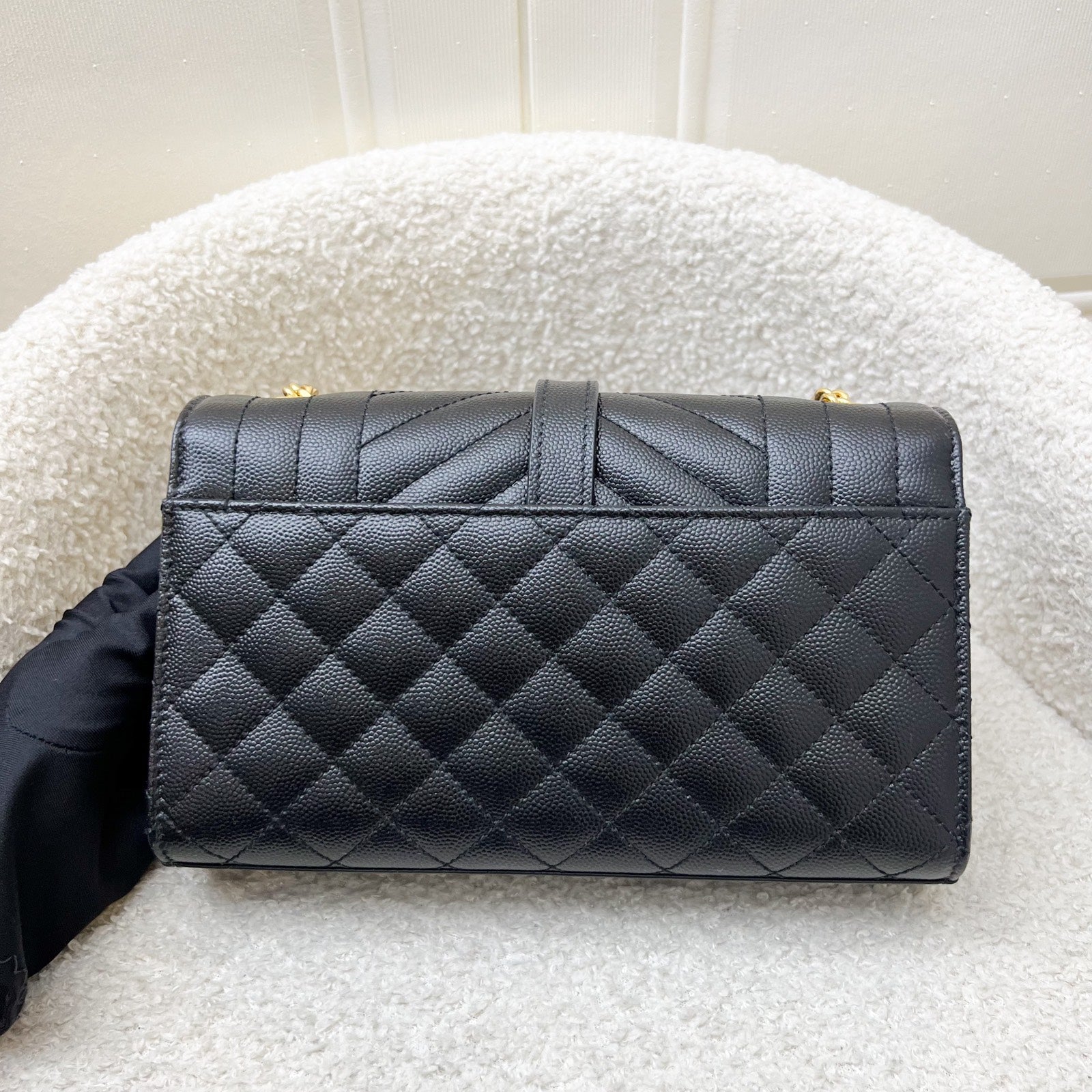 Saint Laurent YSL Small Envelope Flap in Quilted Grain De Poudre Embossed Black Leather and GHW