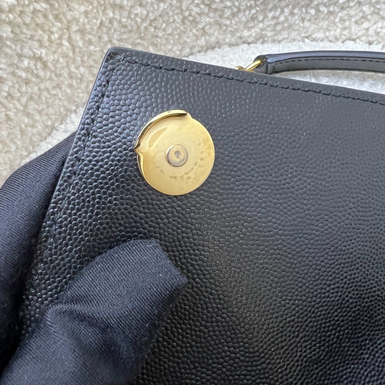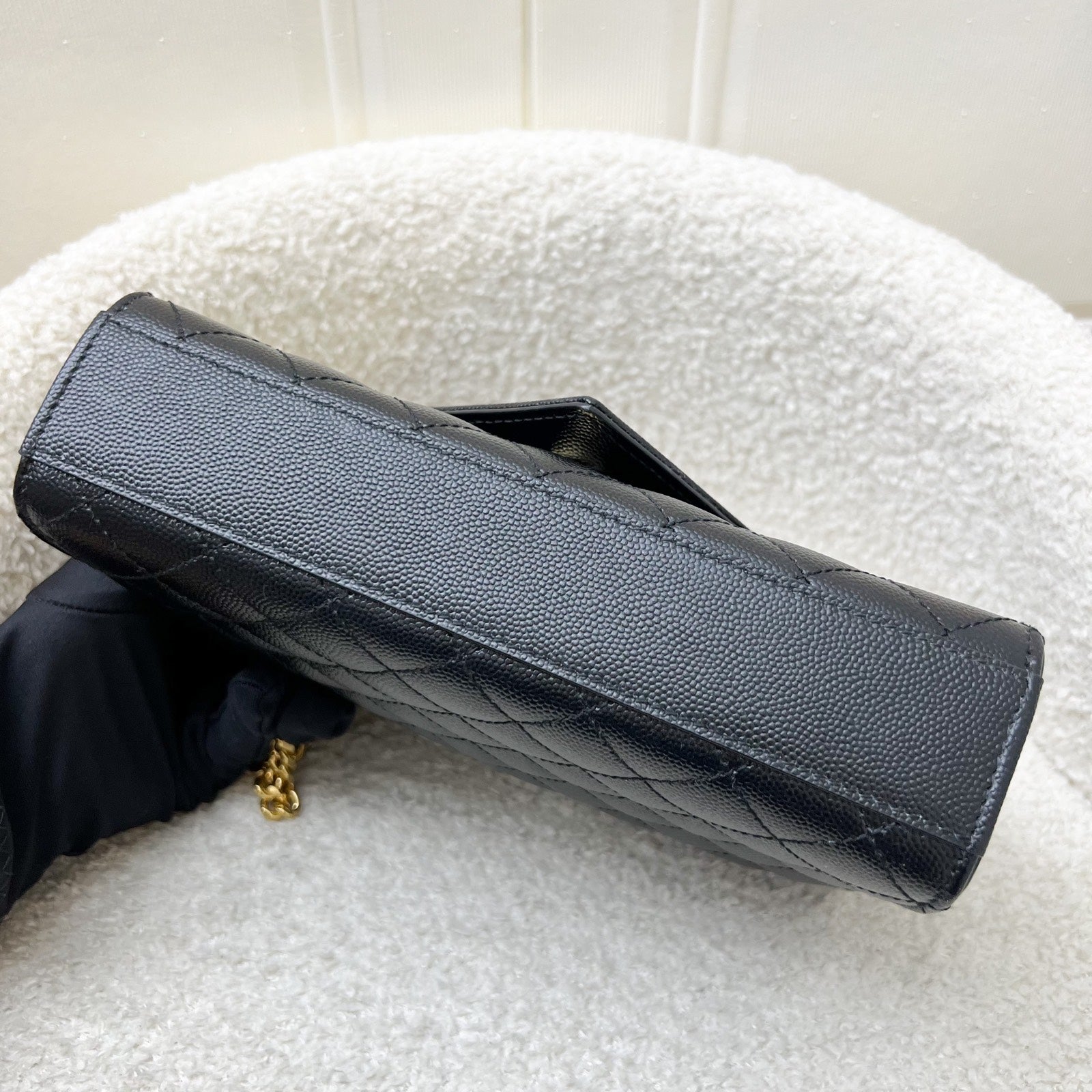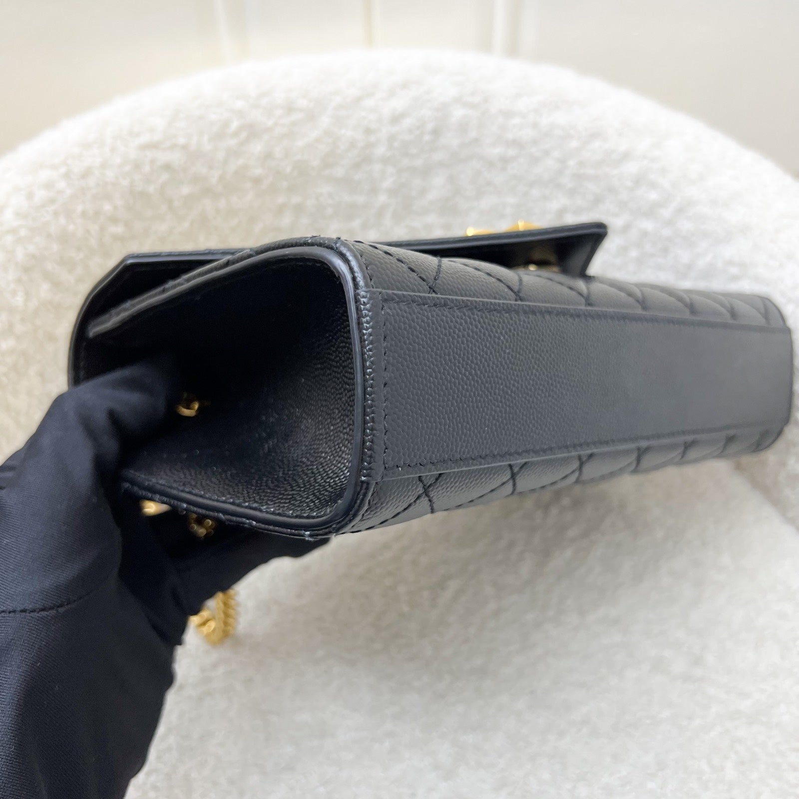 Saint Laurent YSL Small Envelope Flap in Quilted Grain De Poudre Embossed Black Leather and GHW
