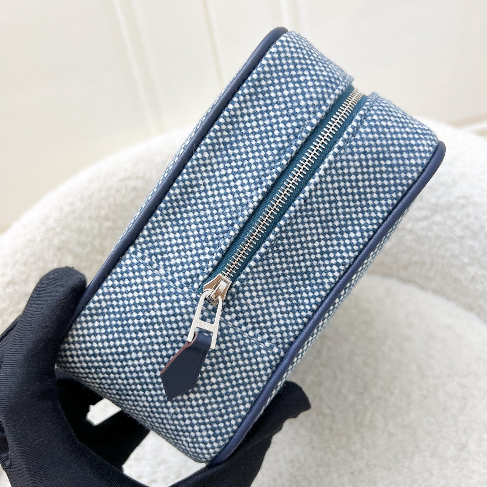 Hermes Chapitre H Cavalier Case, Small Model in Marine Blue 100% Merino Wool