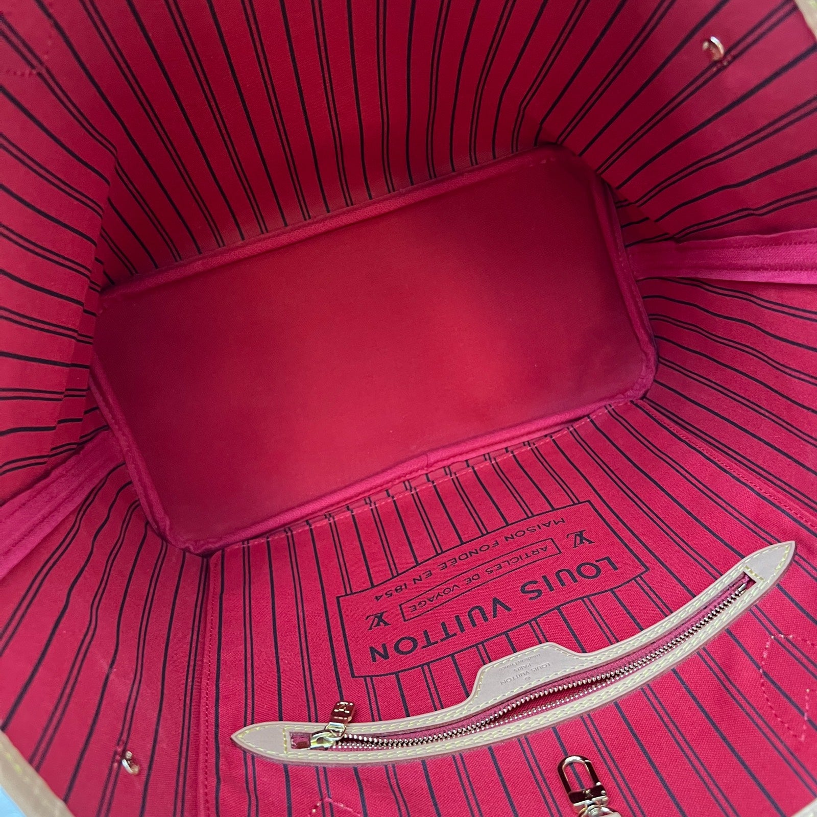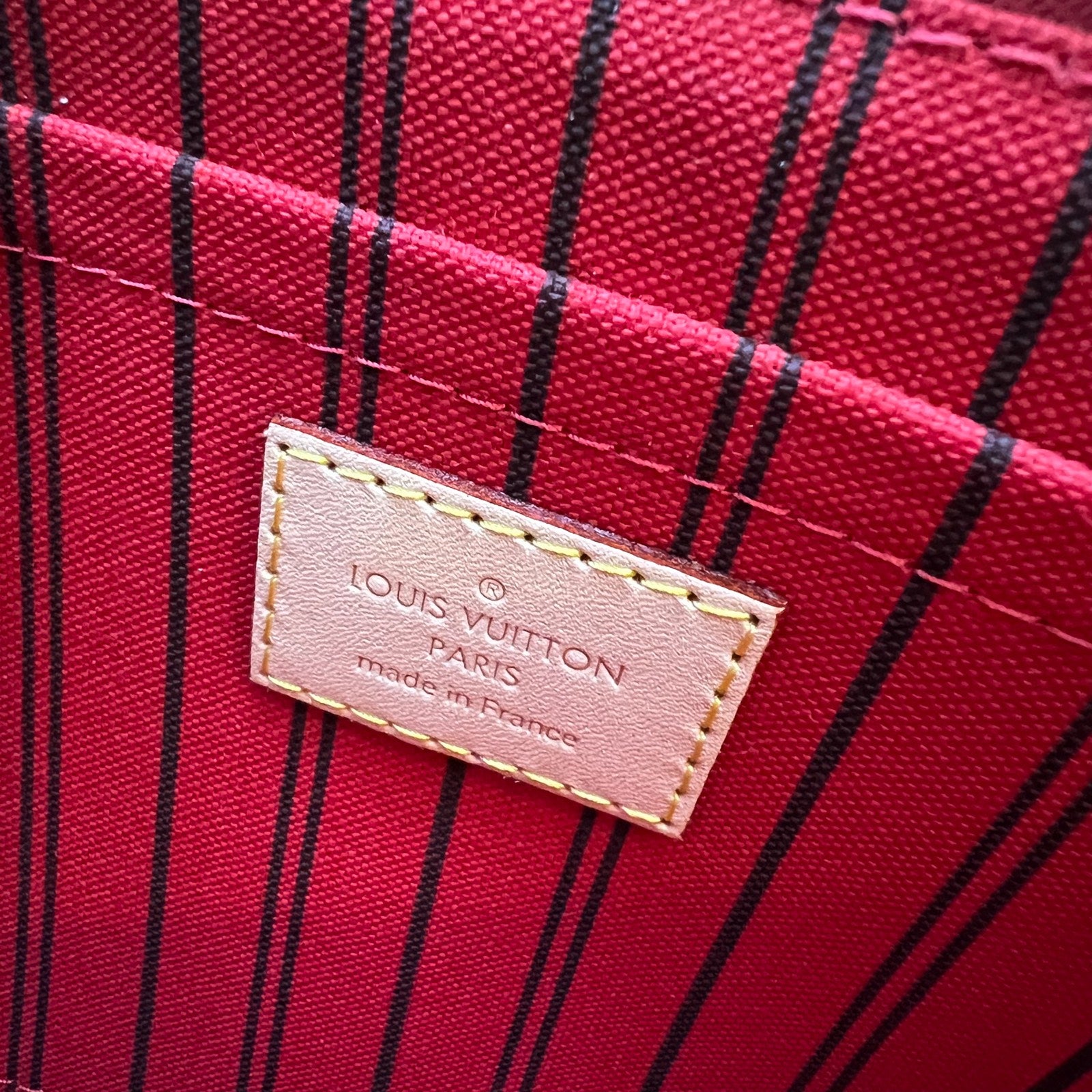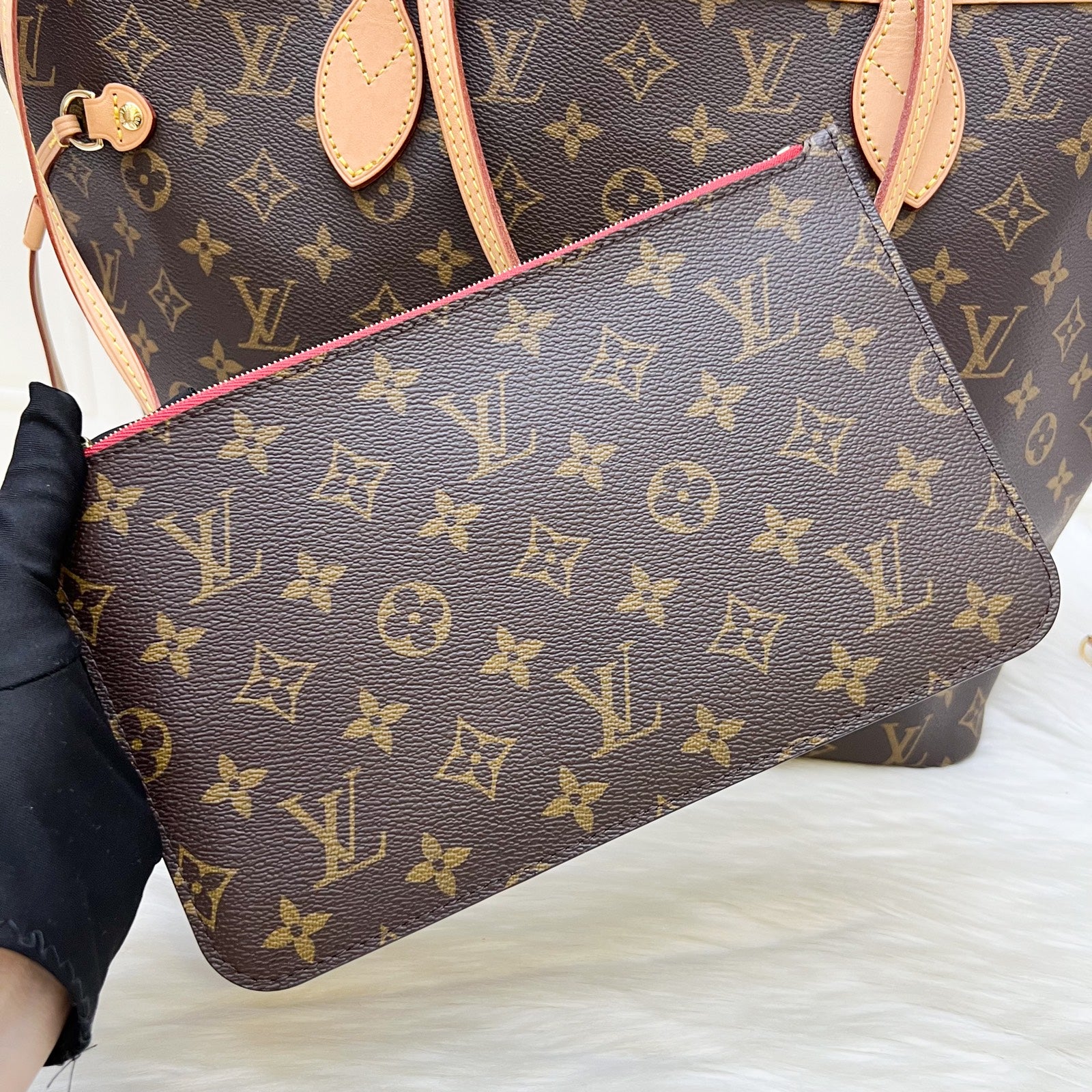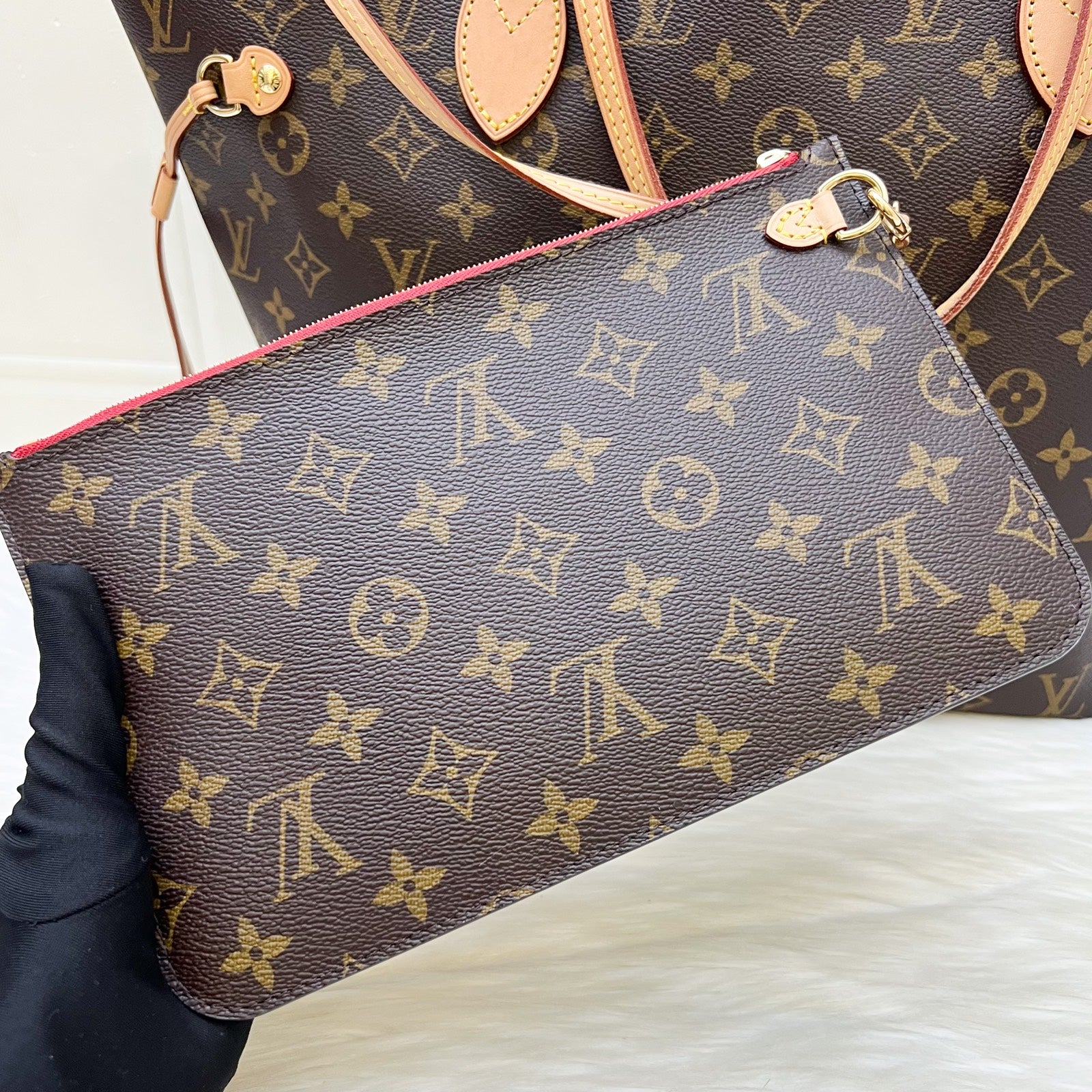 LV Neverfull MM Tote in Monogram Canvas, Cerise Interior and GHW with Detachable Clutch (Model: M41177)