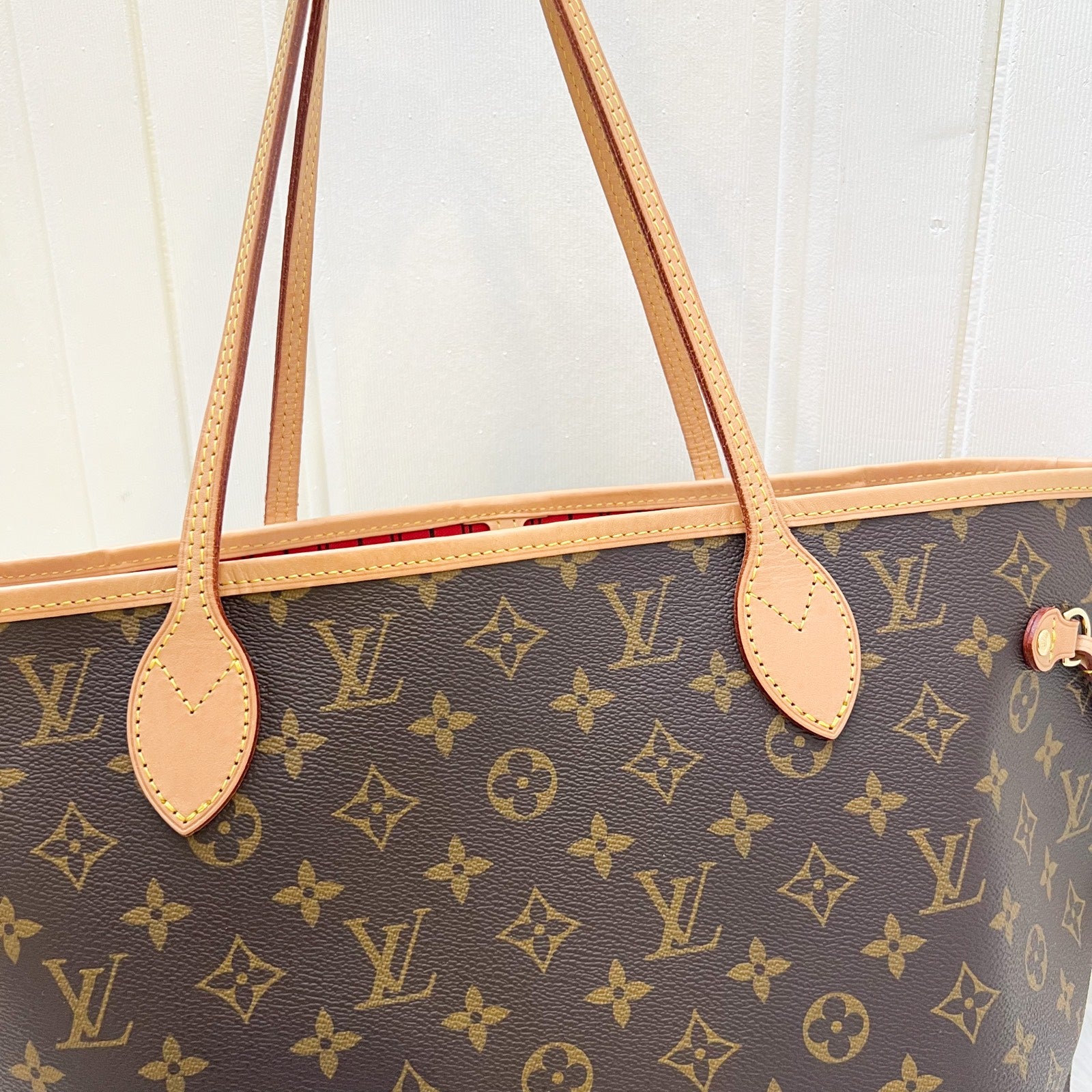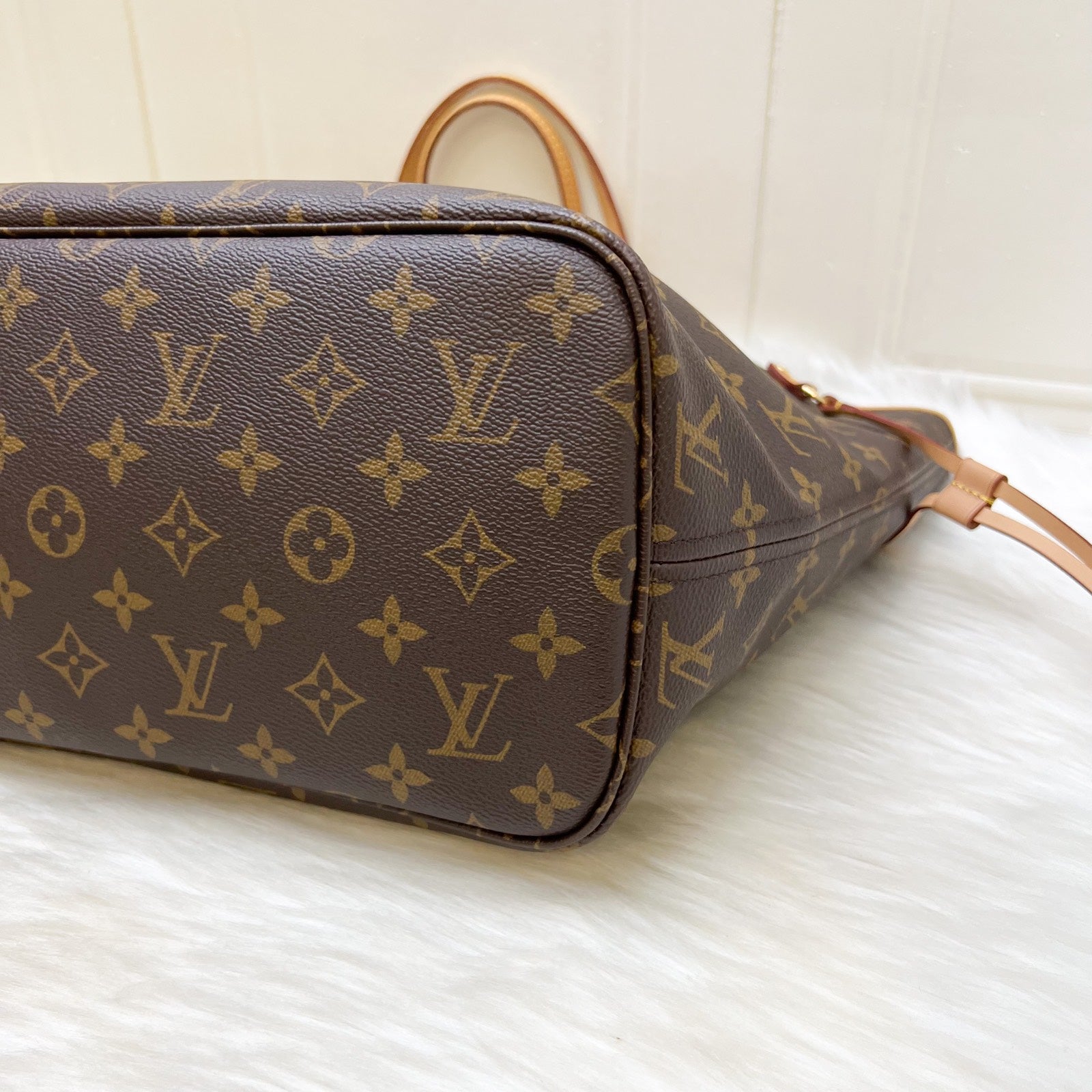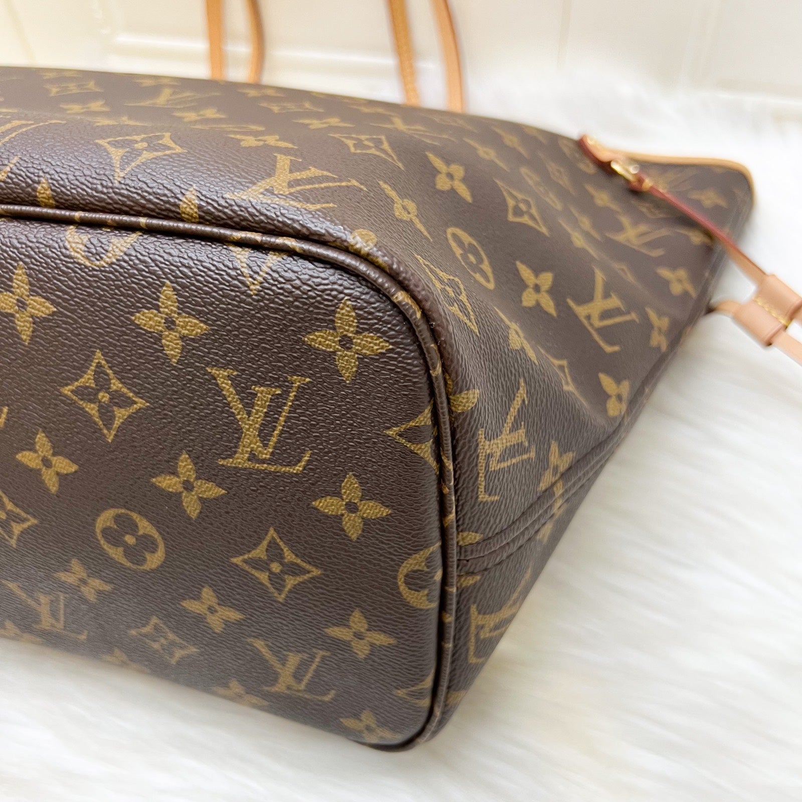 LV Neverfull MM Tote in Monogram Canvas, Cerise Interior and GHW with Detachable Clutch (Model: M41177)