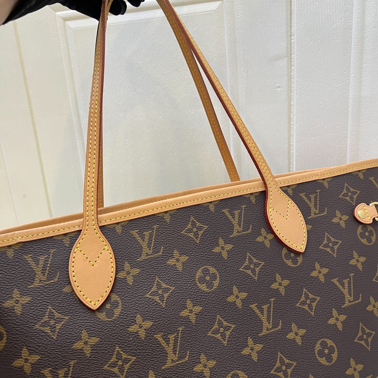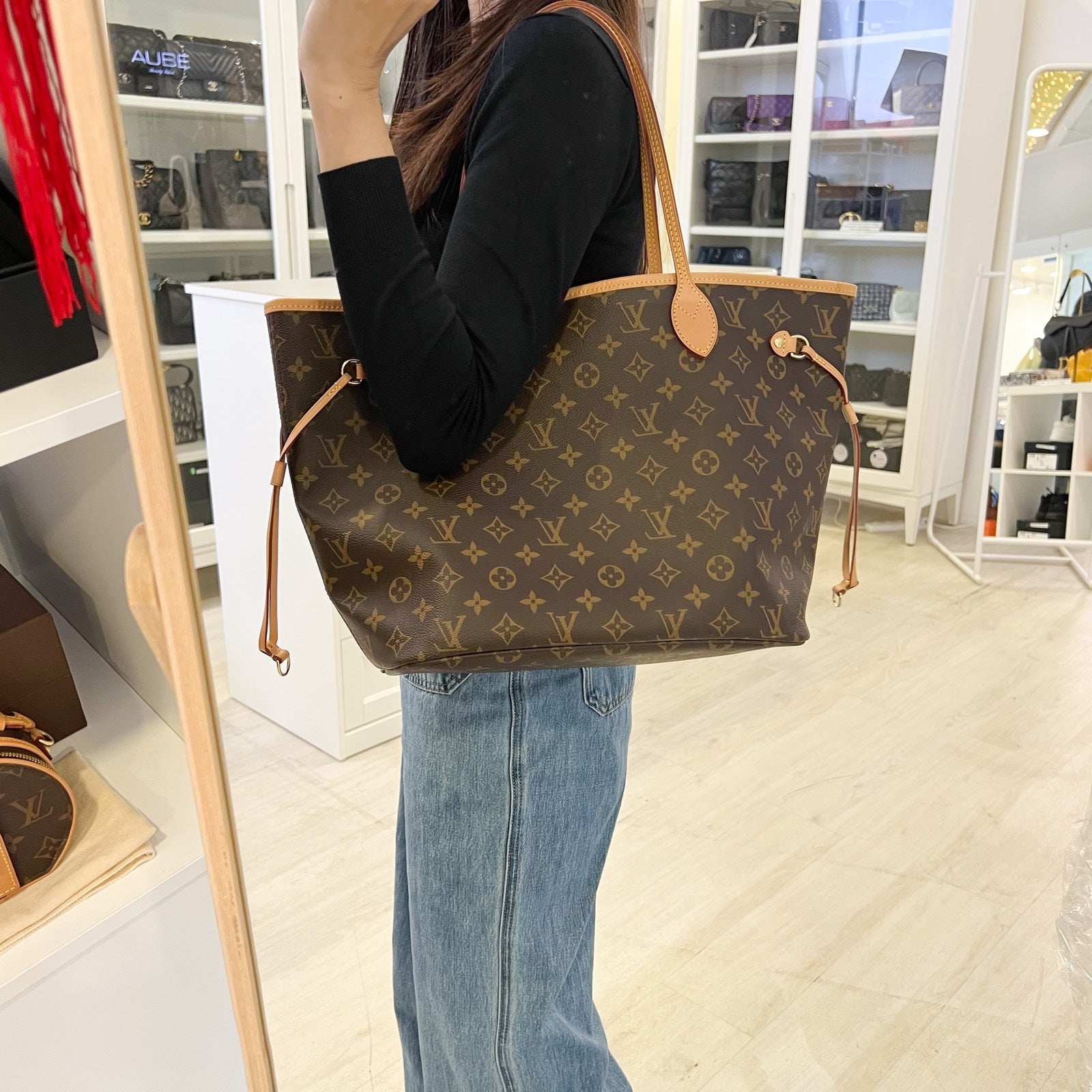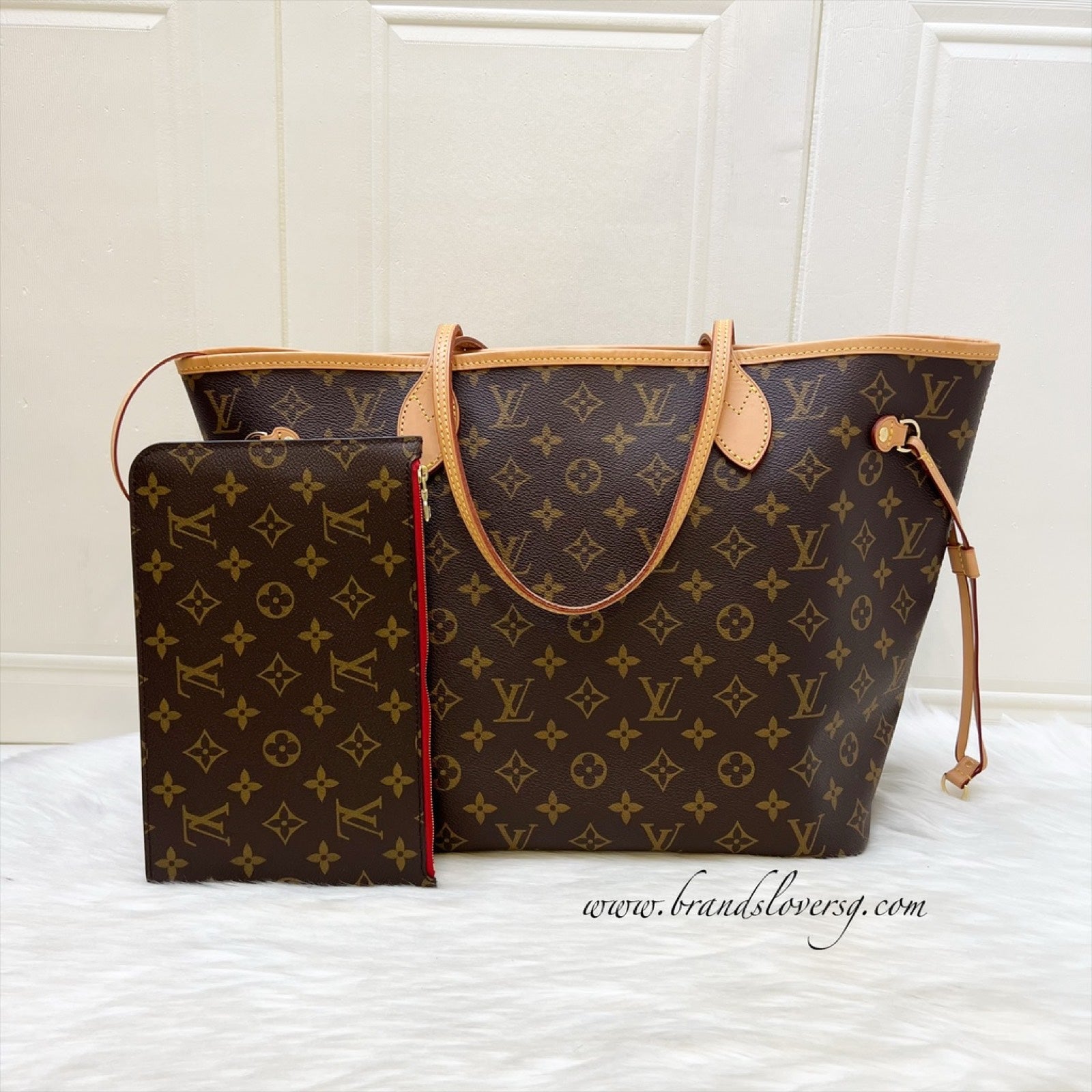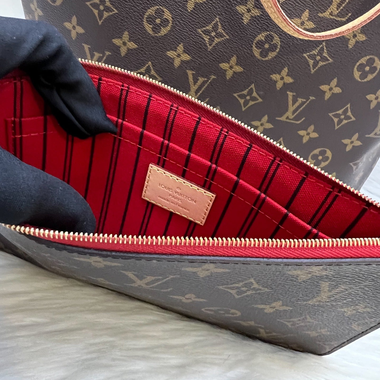 LV Neverfull MM Tote in Monogram Canvas, Cerise Interior and GHW with Detachable Clutch (Model: M41177)