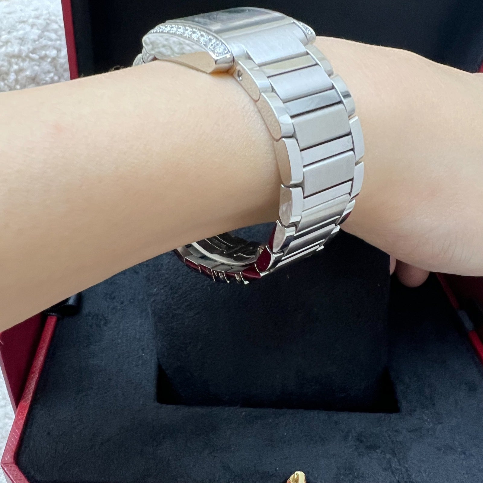 Condition: 9.2/10 like new condition with very minor signs of use/storage. Very minor scratches on the watch. Owner wore it with a customised plastic protective cover. (Photos form part of the description.)